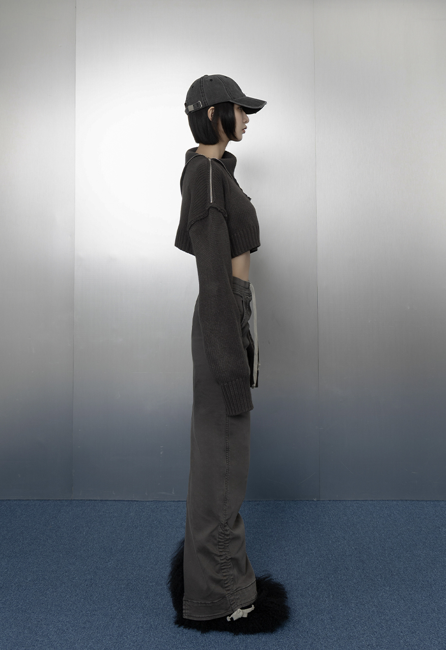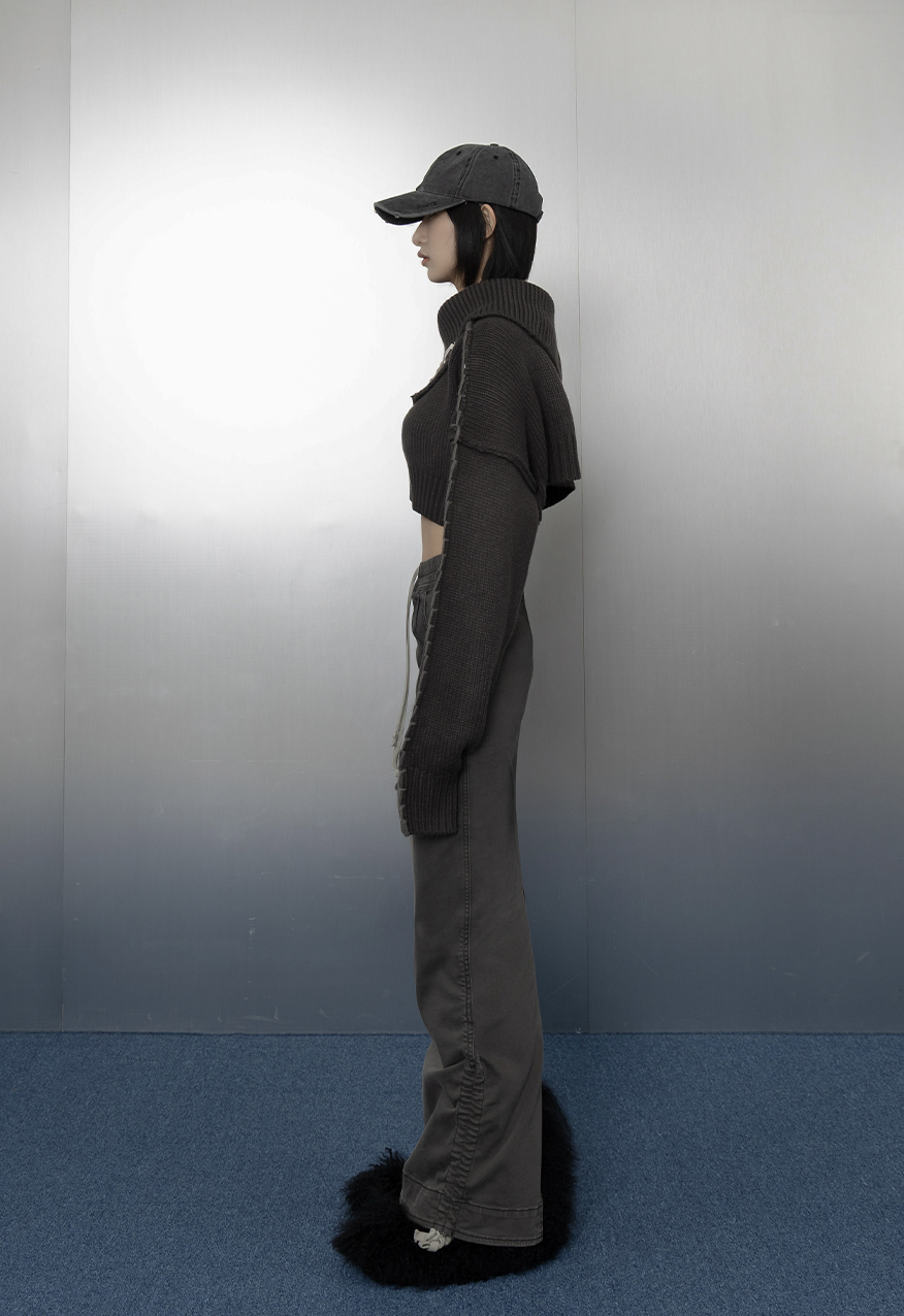 AW1030 - 煙灰斜肩翻領毛衣