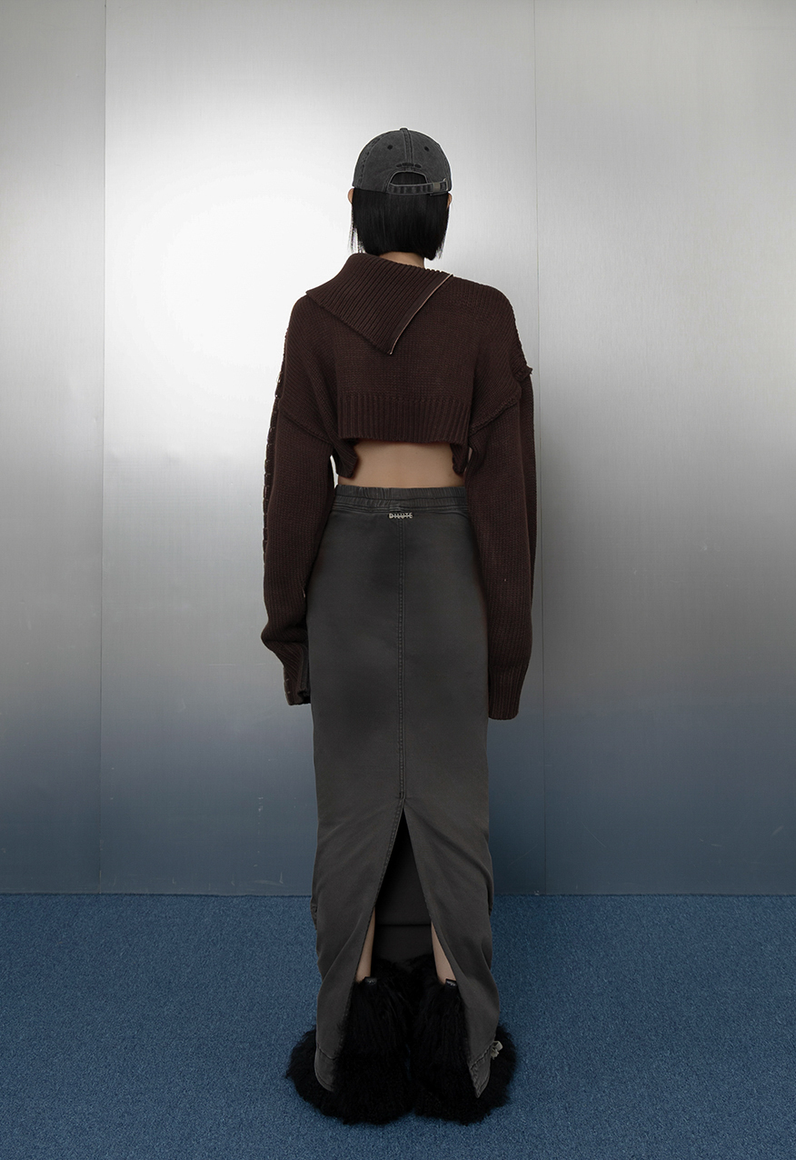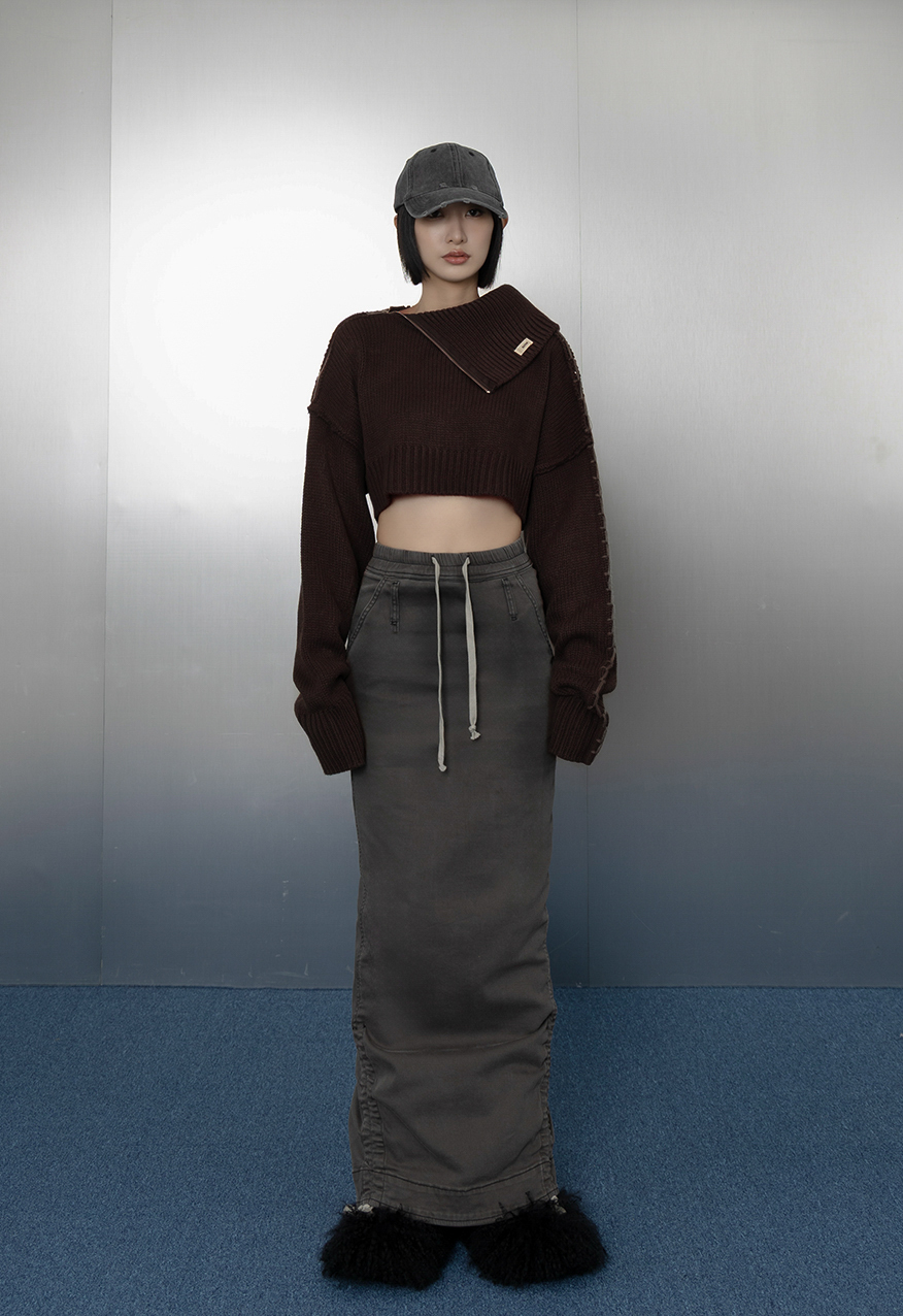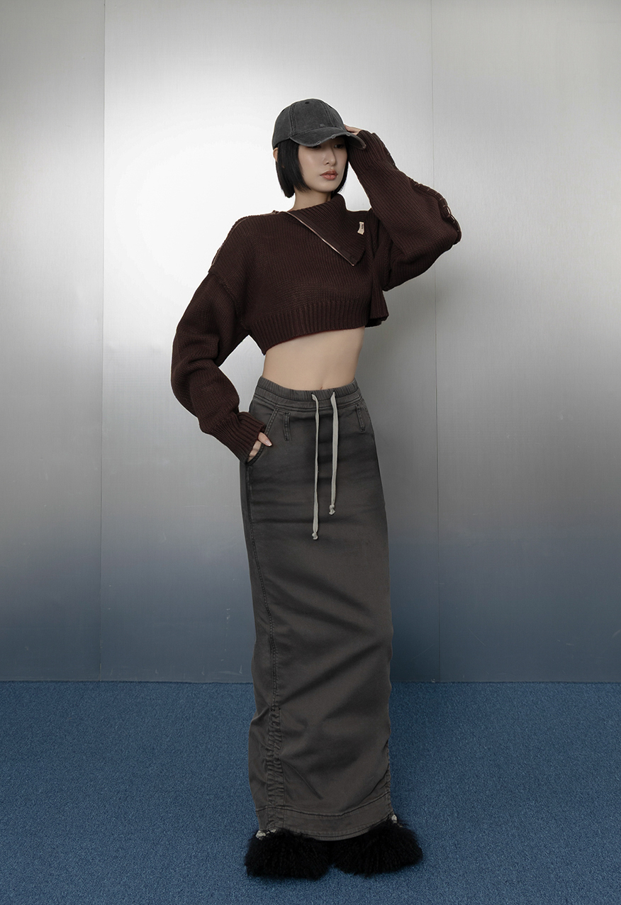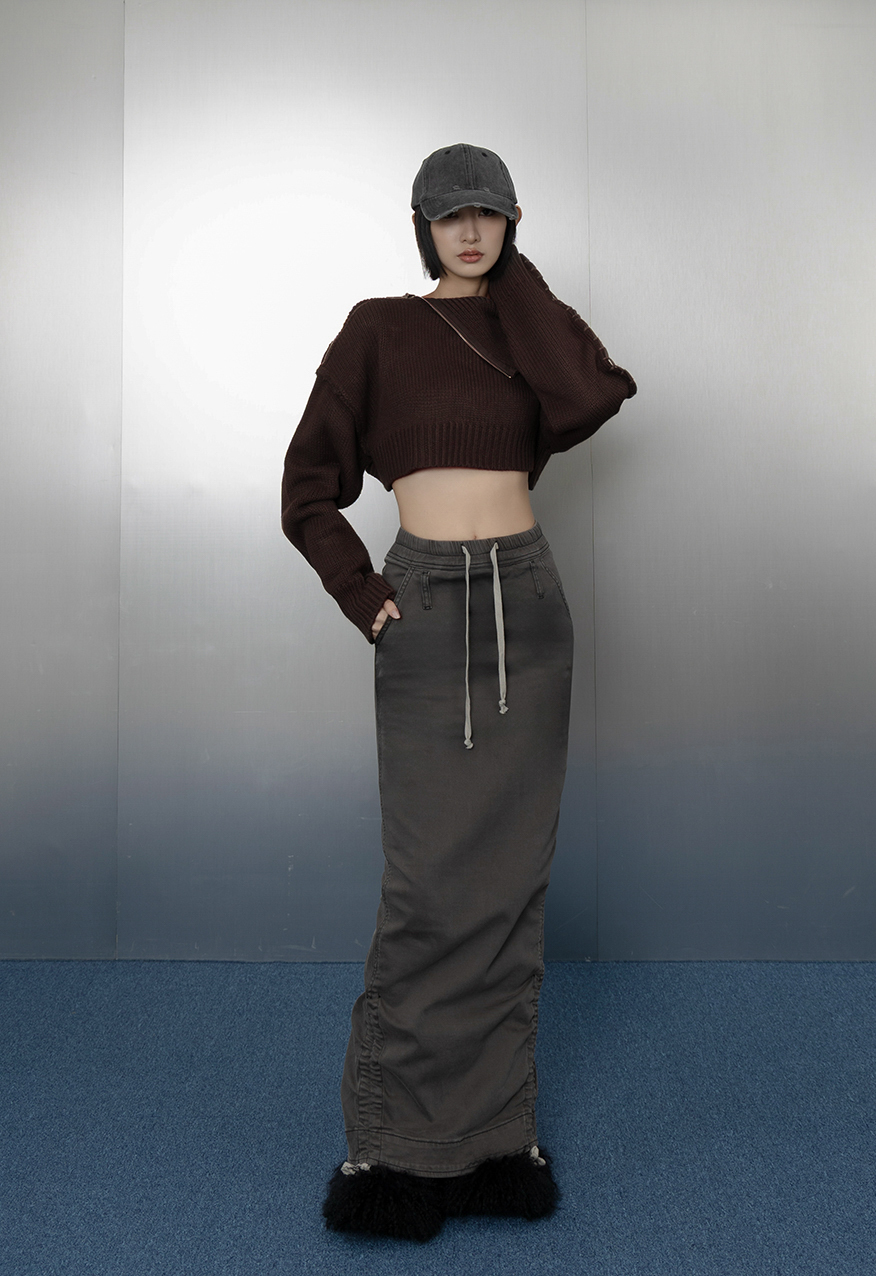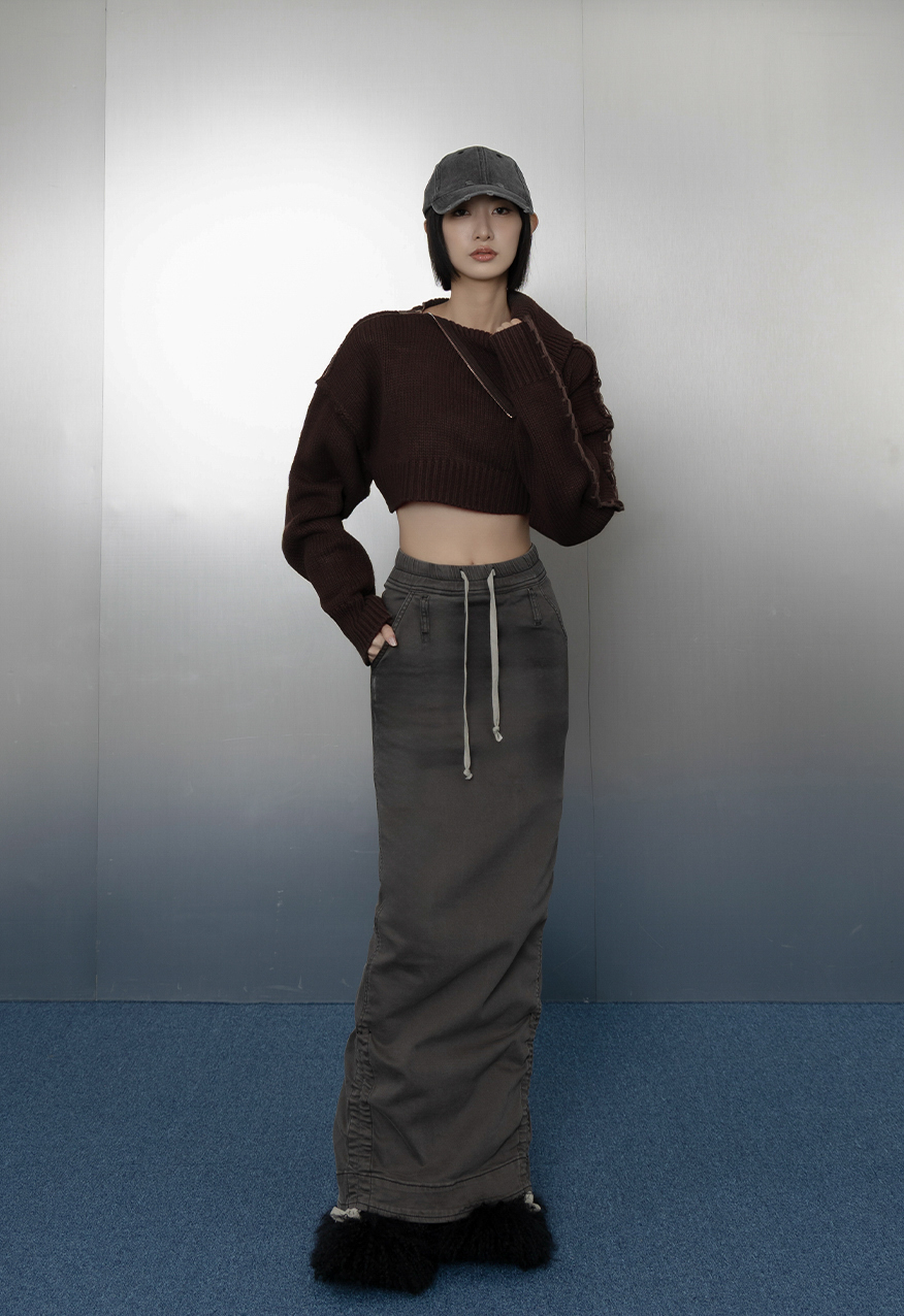 AW1037 - 灰色下擺抽繩牛仔長裙