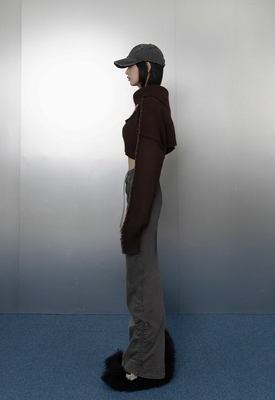 AW1031 - 暖棕斜肩翻領毛衣