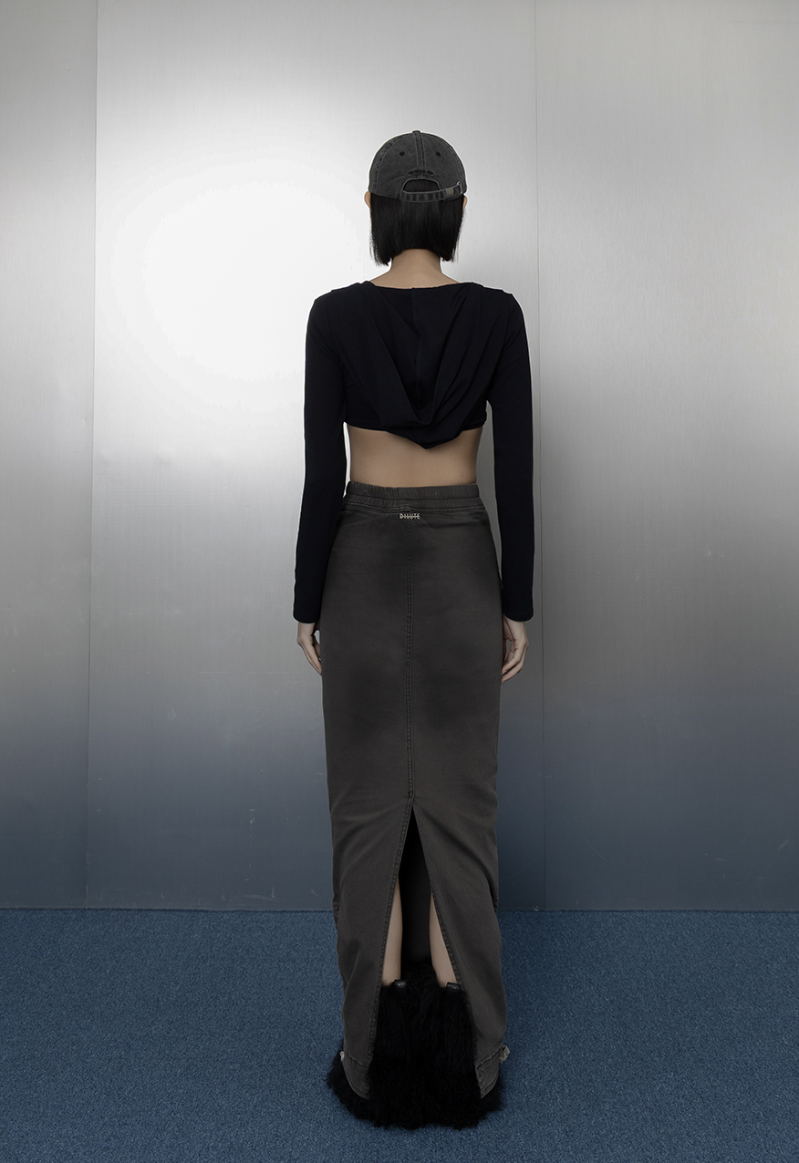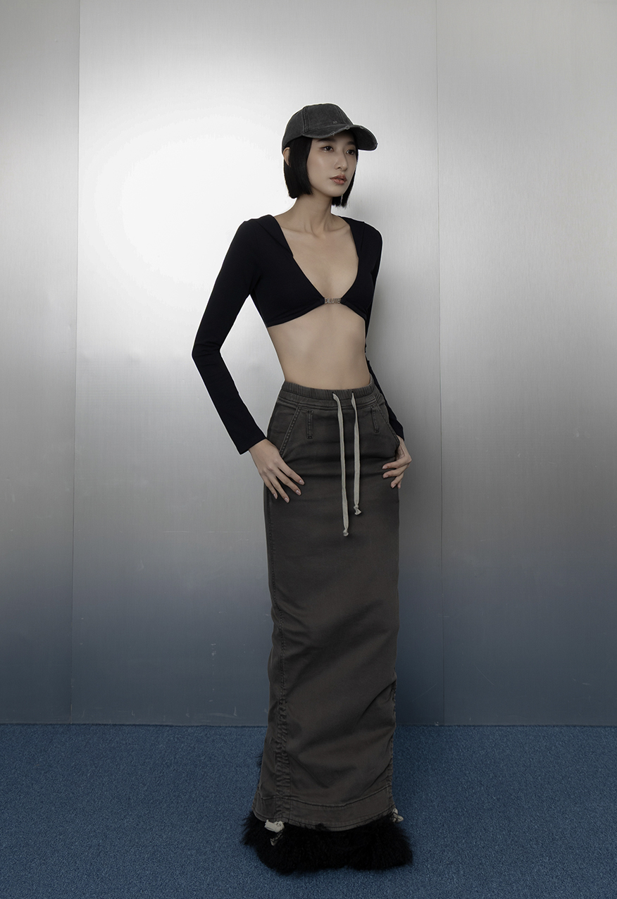 AW1037 - 灰色下擺抽繩牛仔長裙