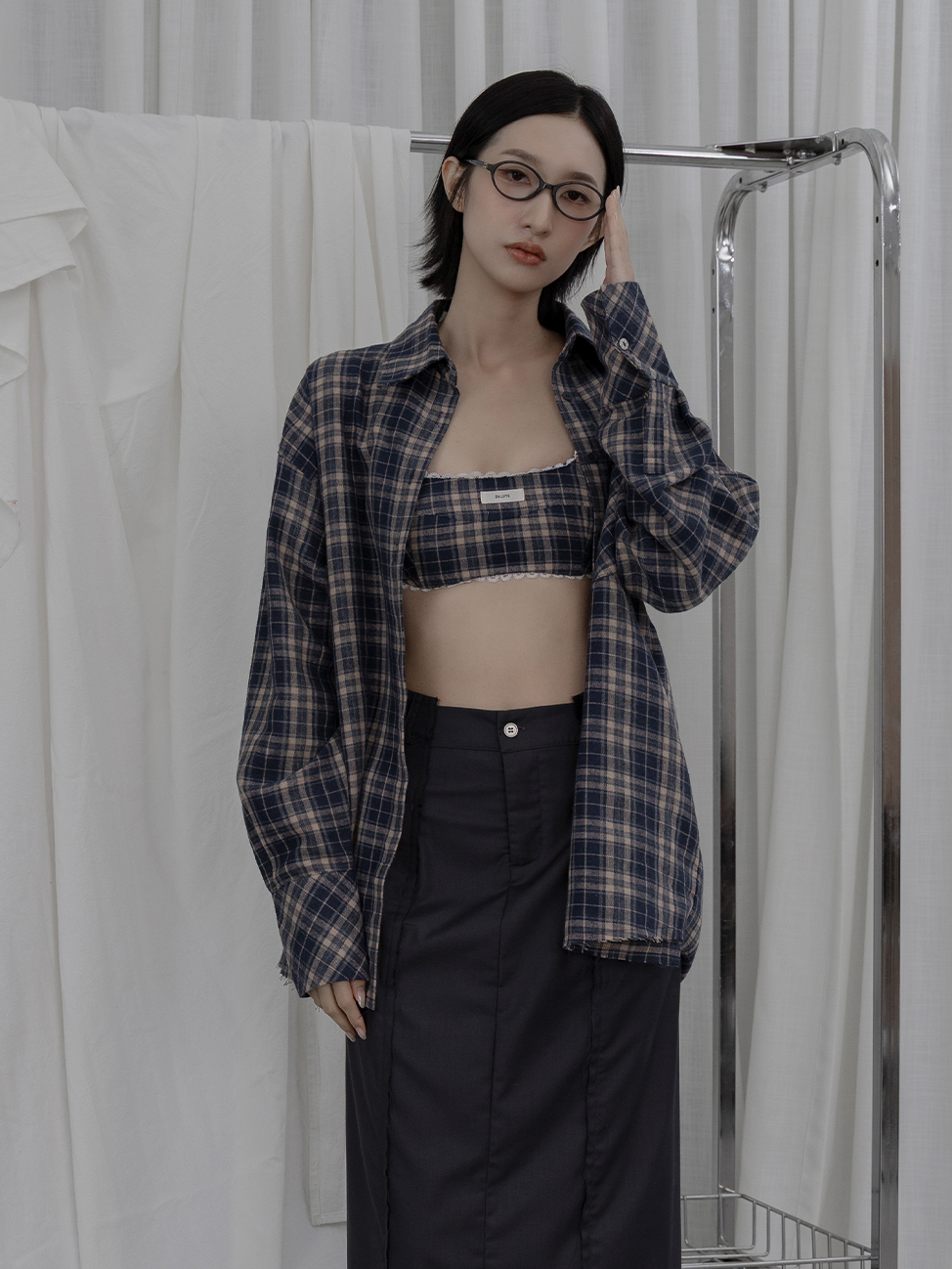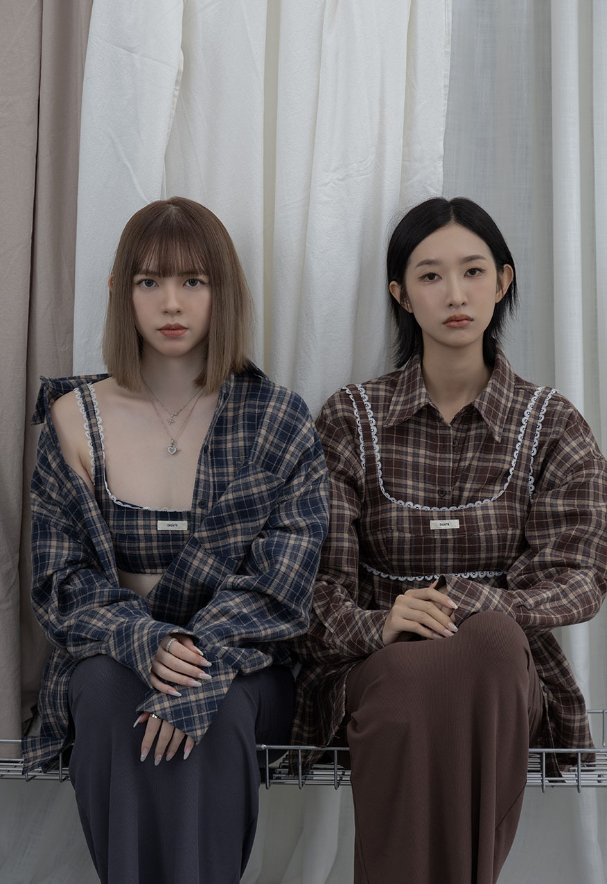 AW1038 - Dusty Blue Vintage Plaid Shirt Set