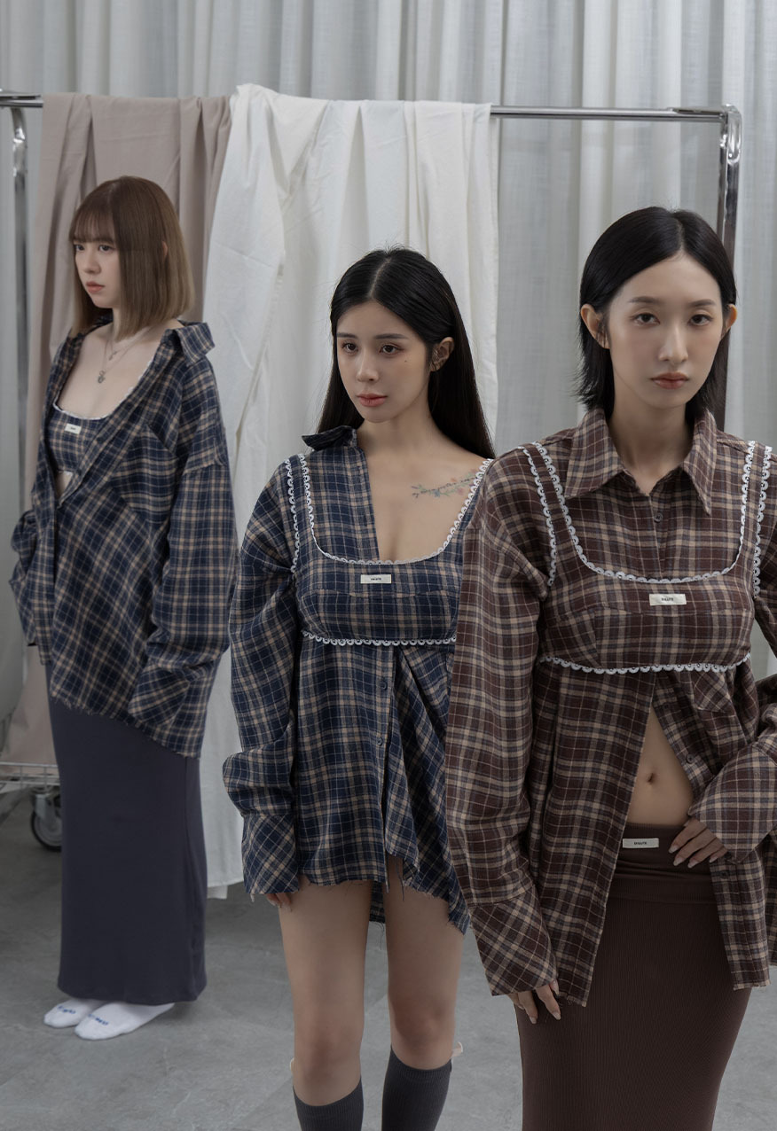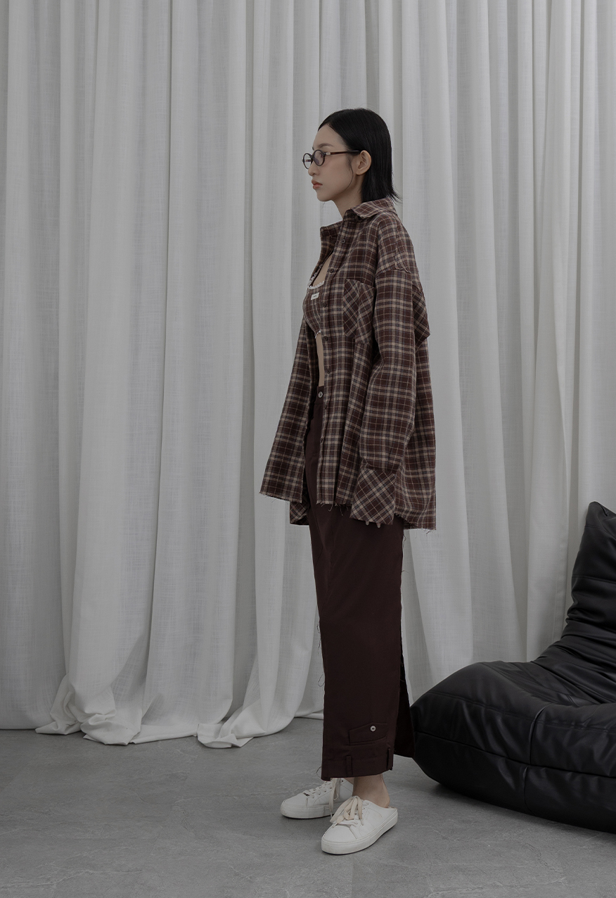 AW1039 - Vintage Burnt Caramel Plaid Shirt Set