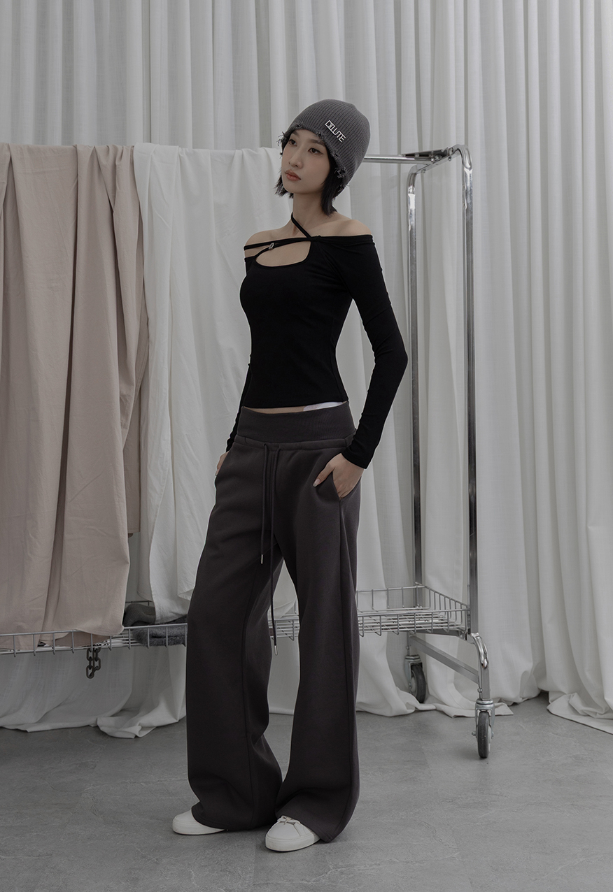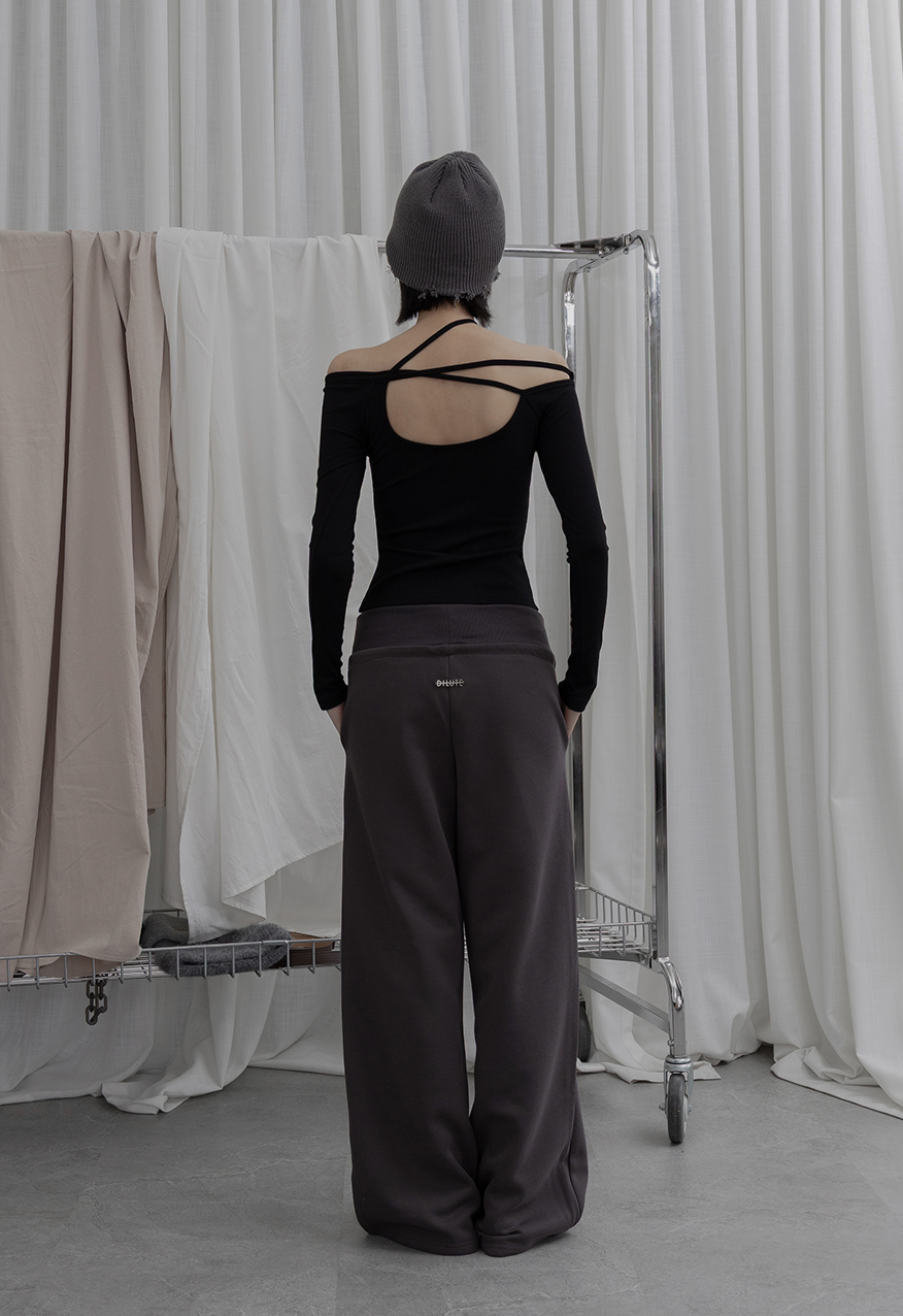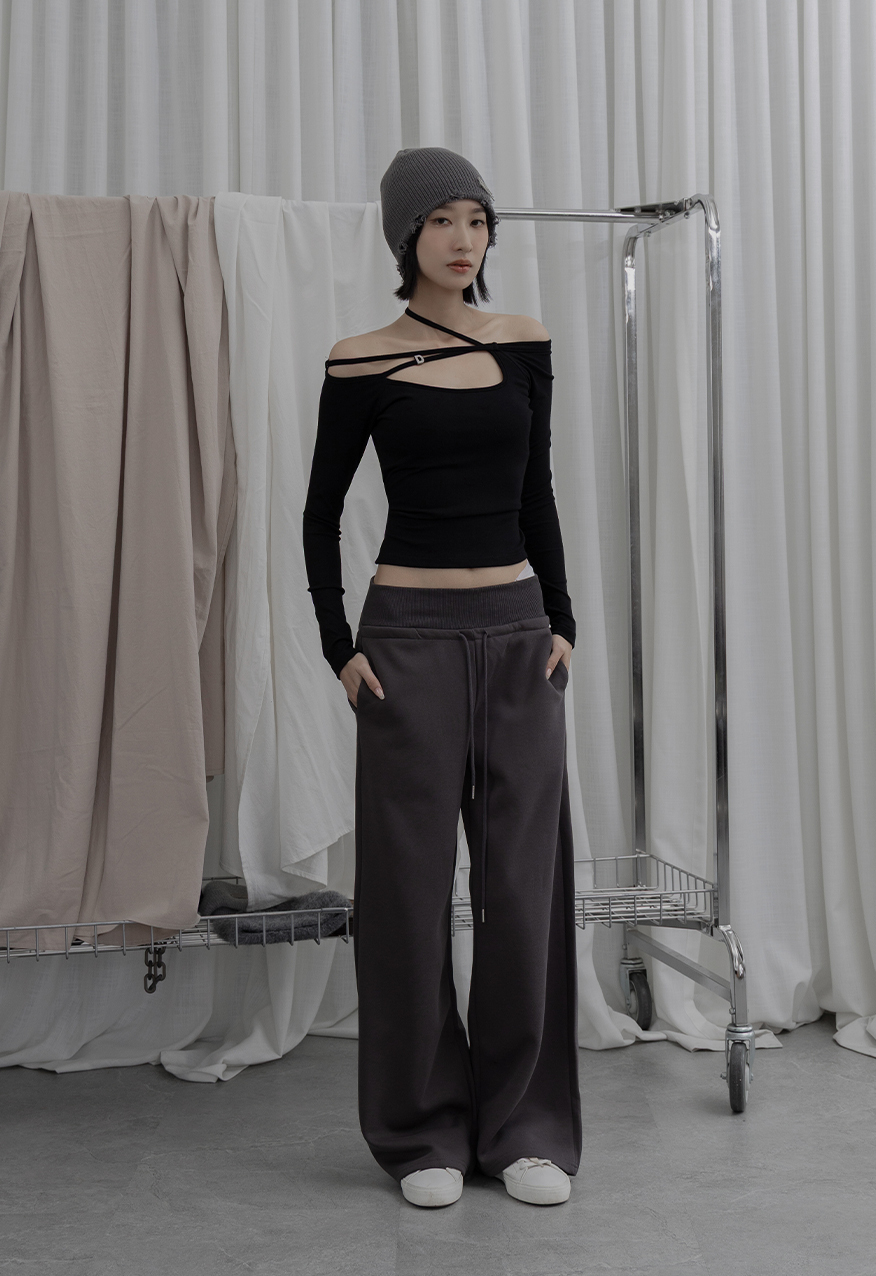"AW1057 - Black Asymmetrical Off-Shoulder Top