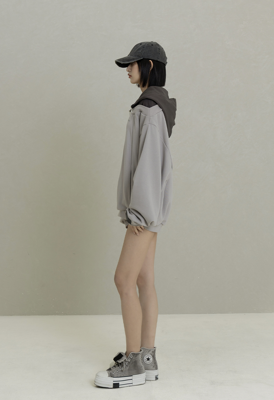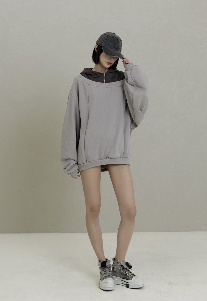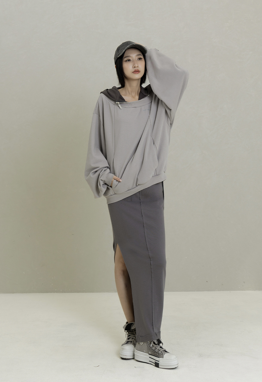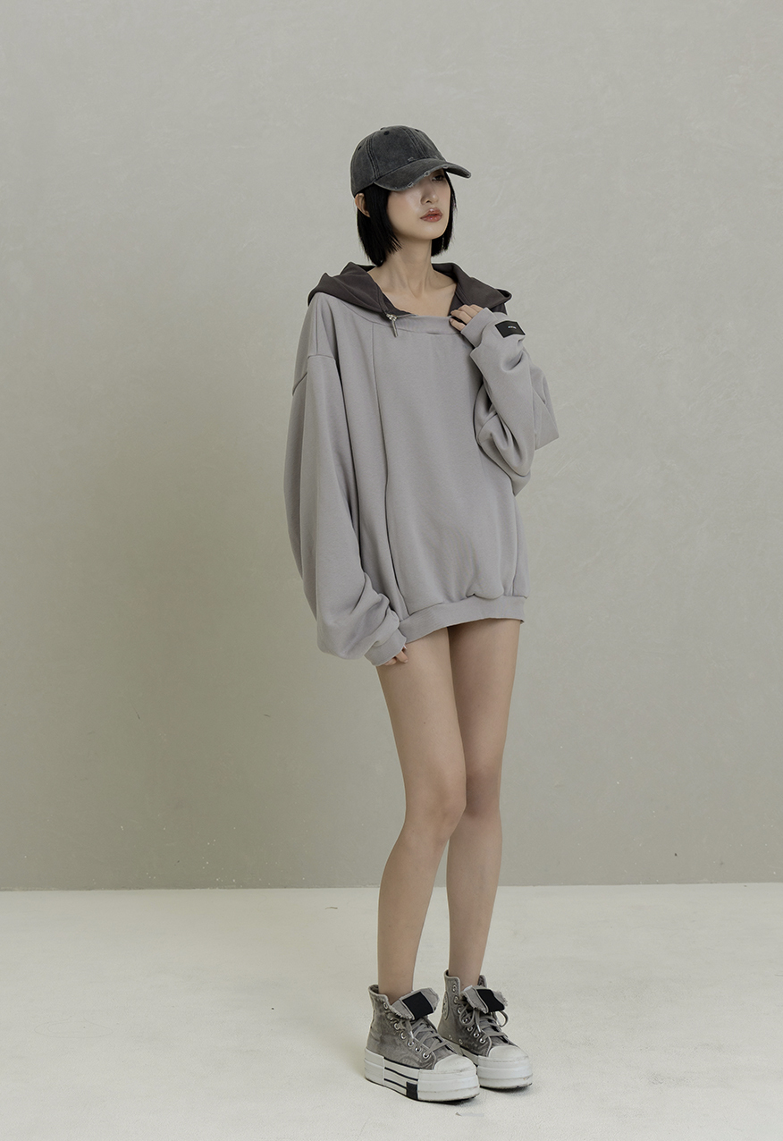 AW1084-Gray Drop-Shoulder Hoodie