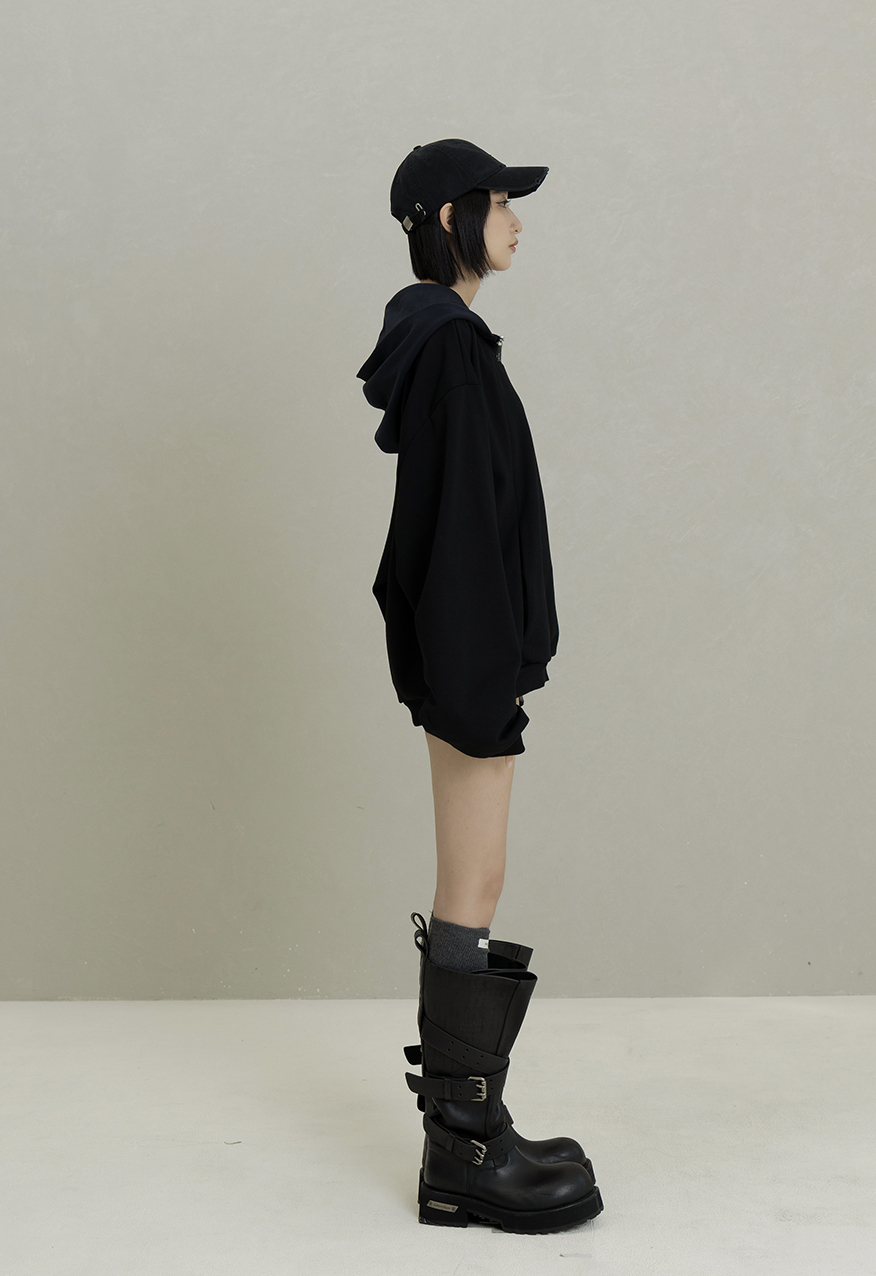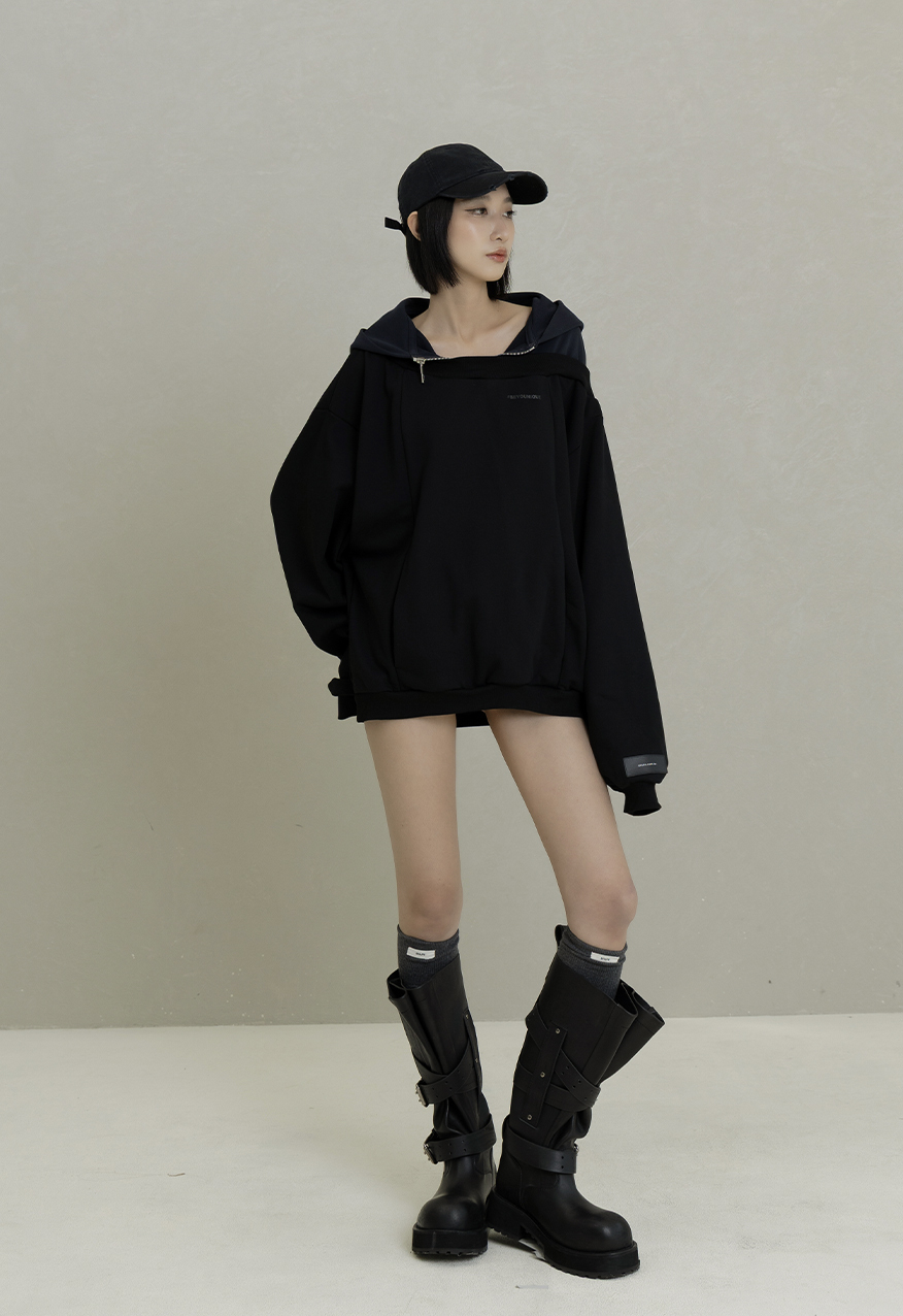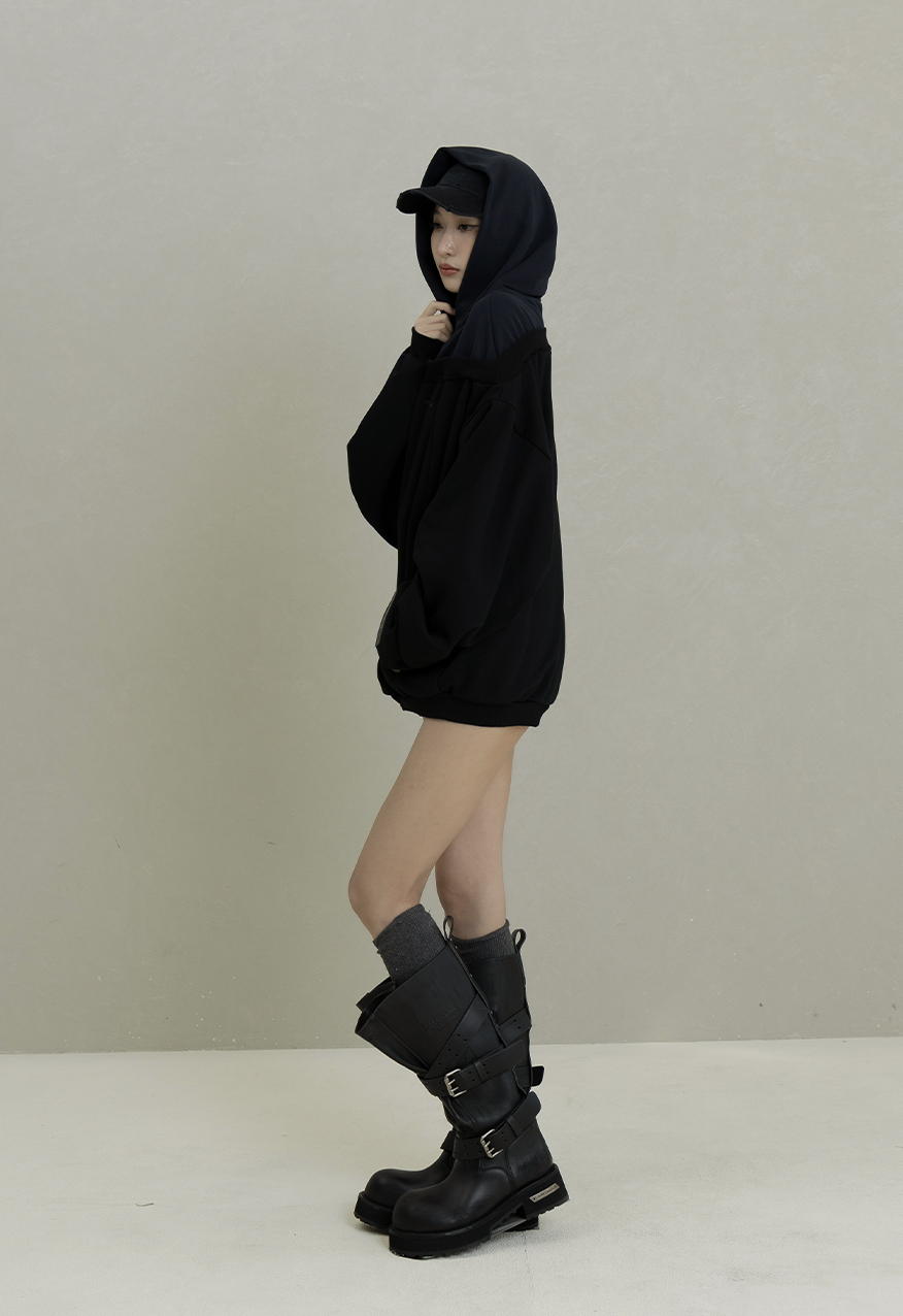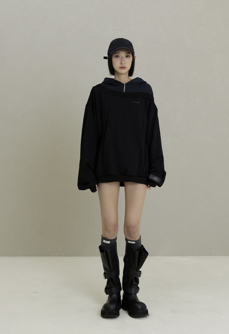 AW1085-Night Black Drop-Shoulder Hoodie