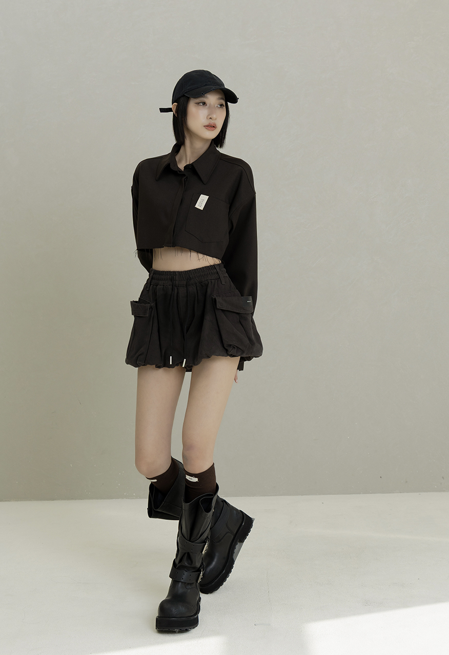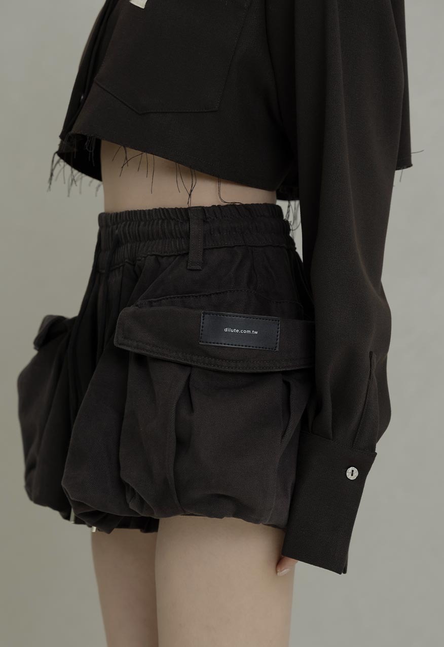 Cloud-like structure, edgy skort, stylish design.