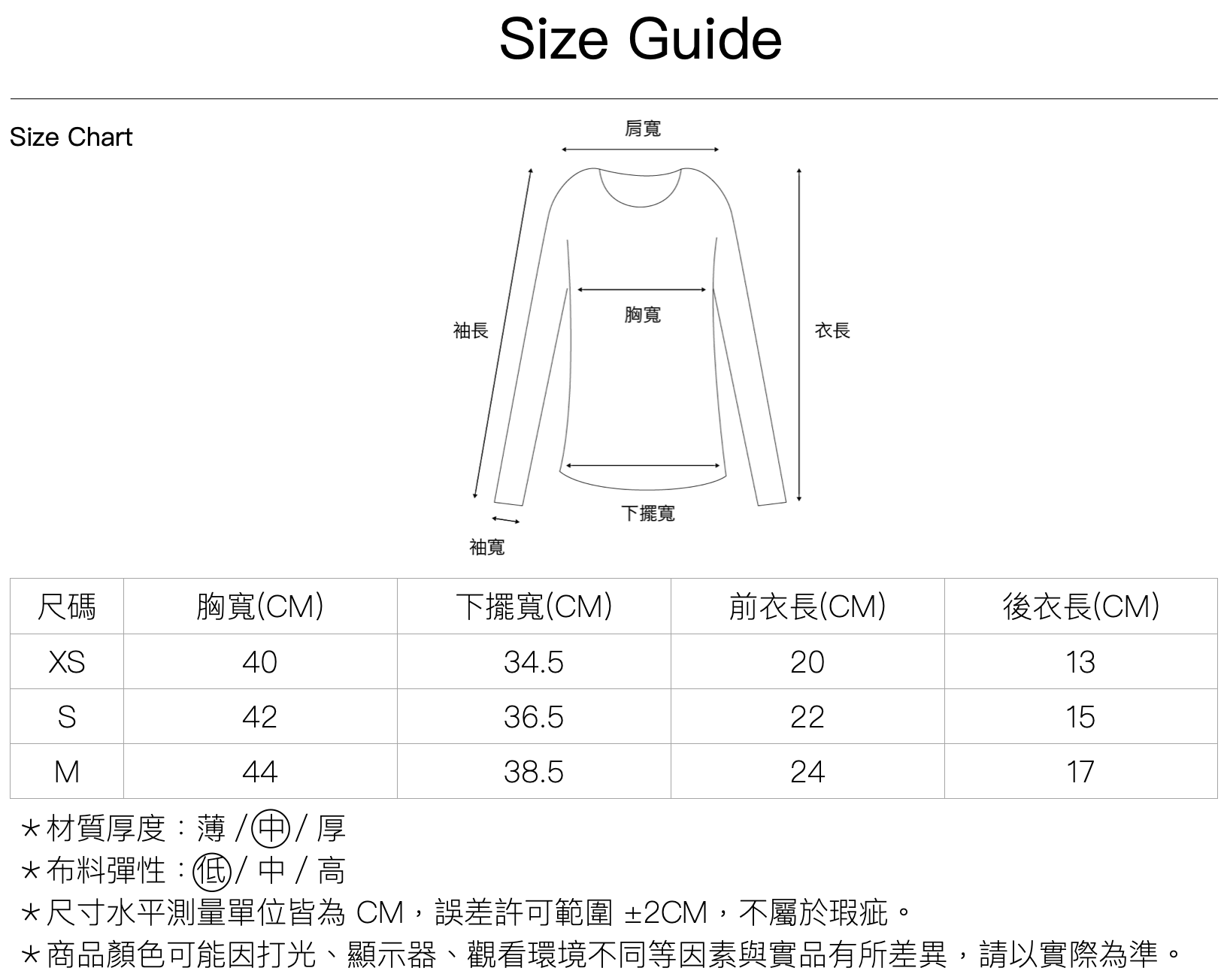 Size| xs/s/m