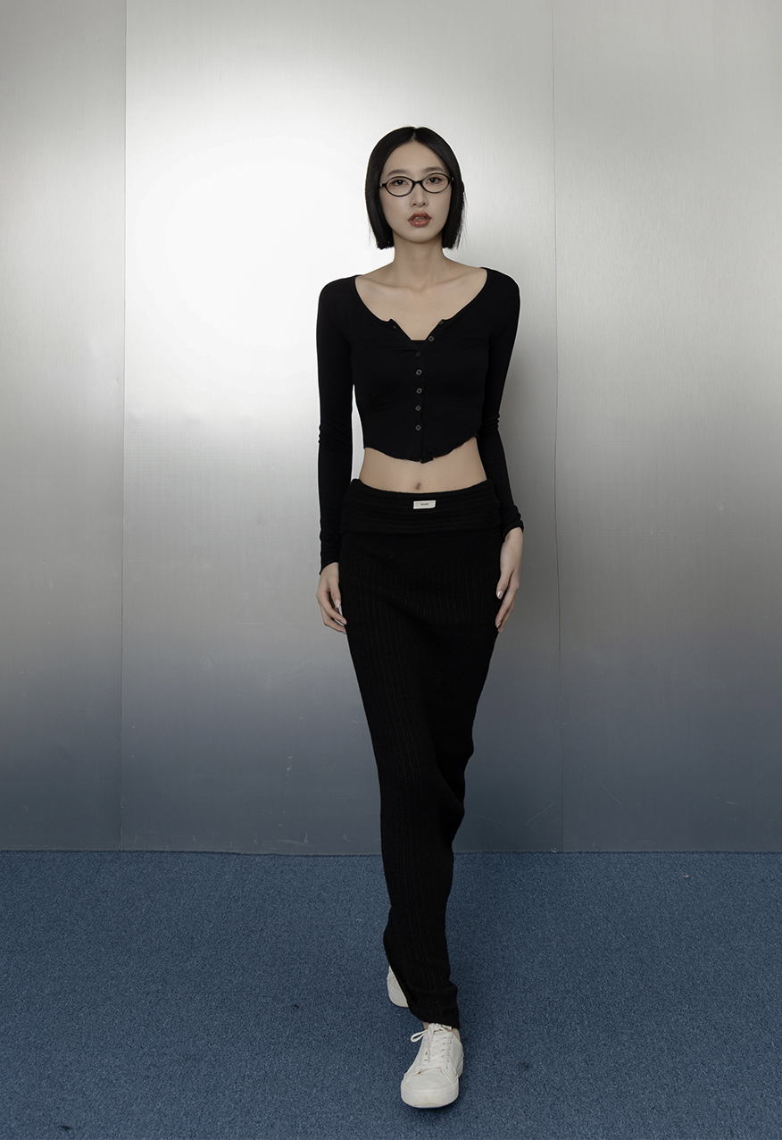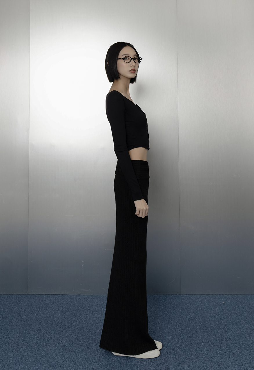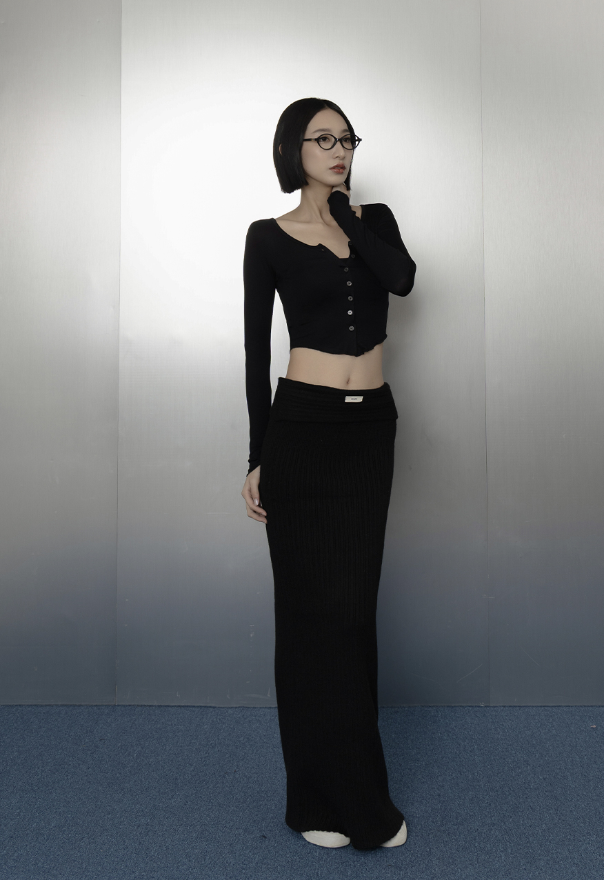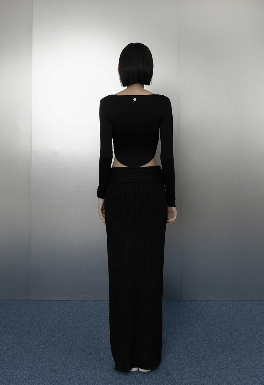AW1205 – Midnight Black Soft Thick Knit Maxi Skirt
