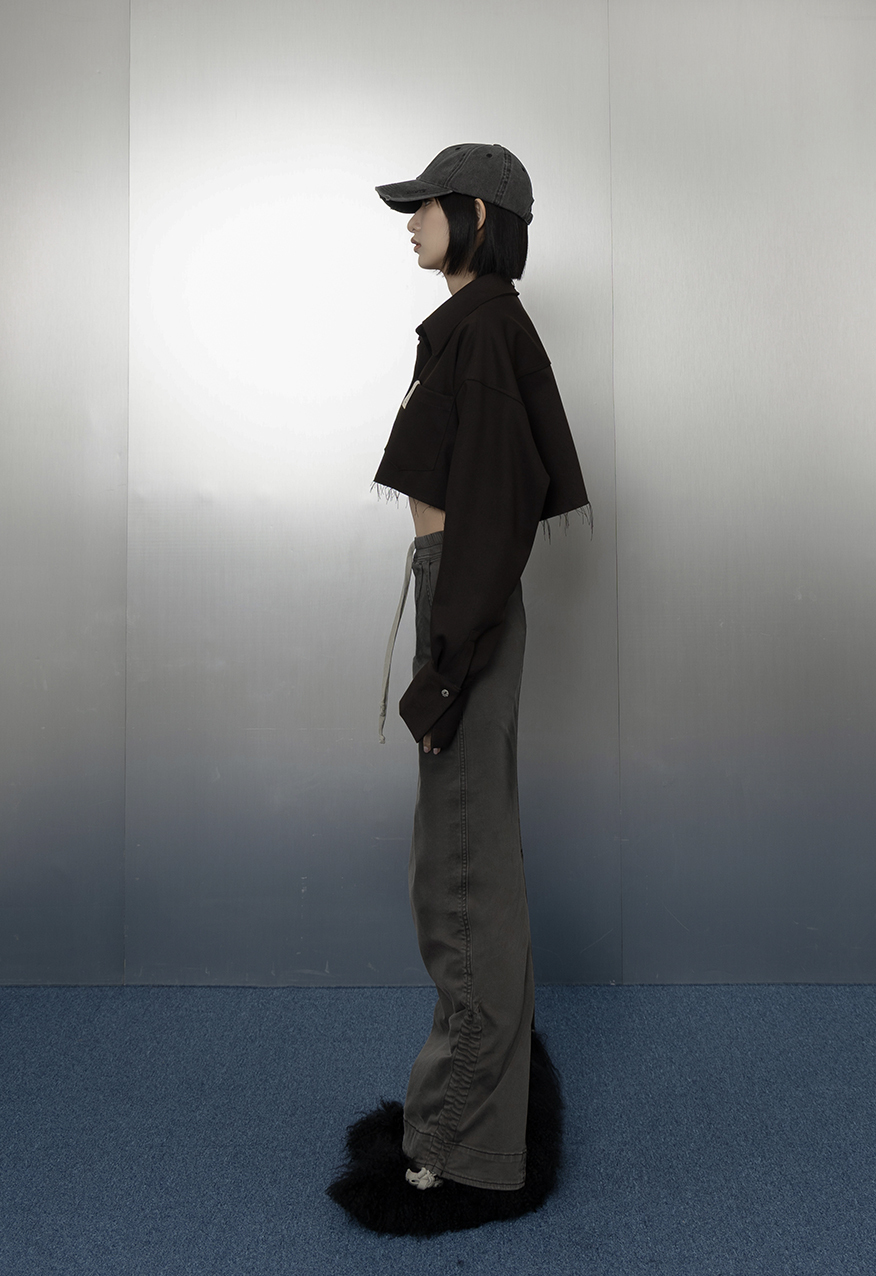 AW1037 - 灰色下擺抽繩牛仔長裙