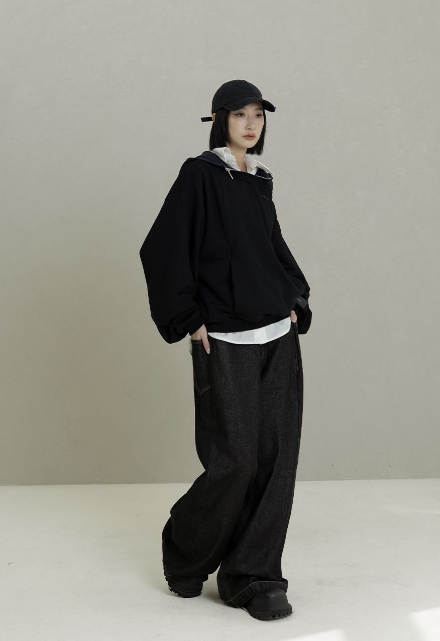 AW1085-Night Black Drop-Shoulder Hoodie