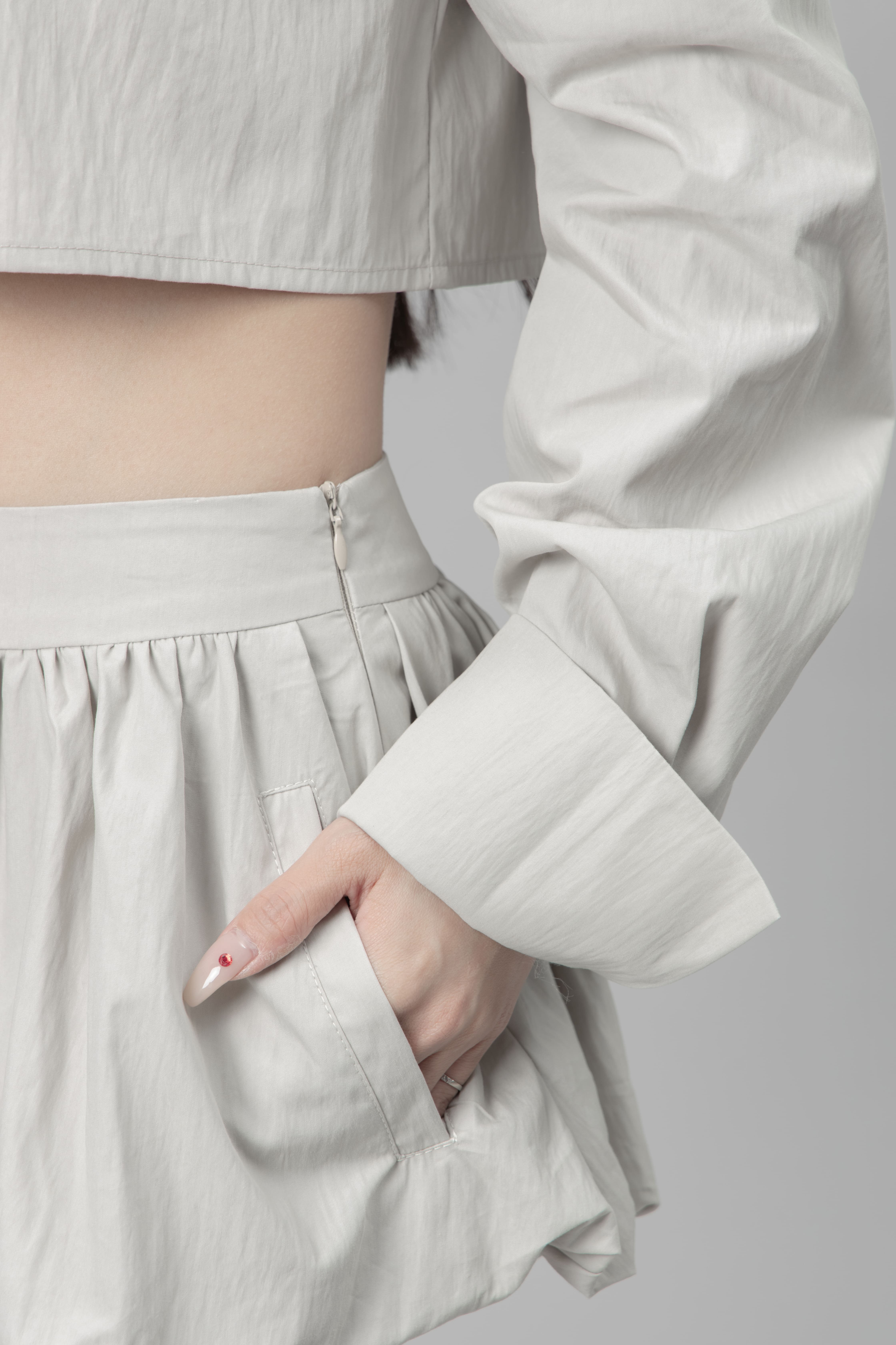 SS0834 - Seagull Gray Fluffy Mini Skirt