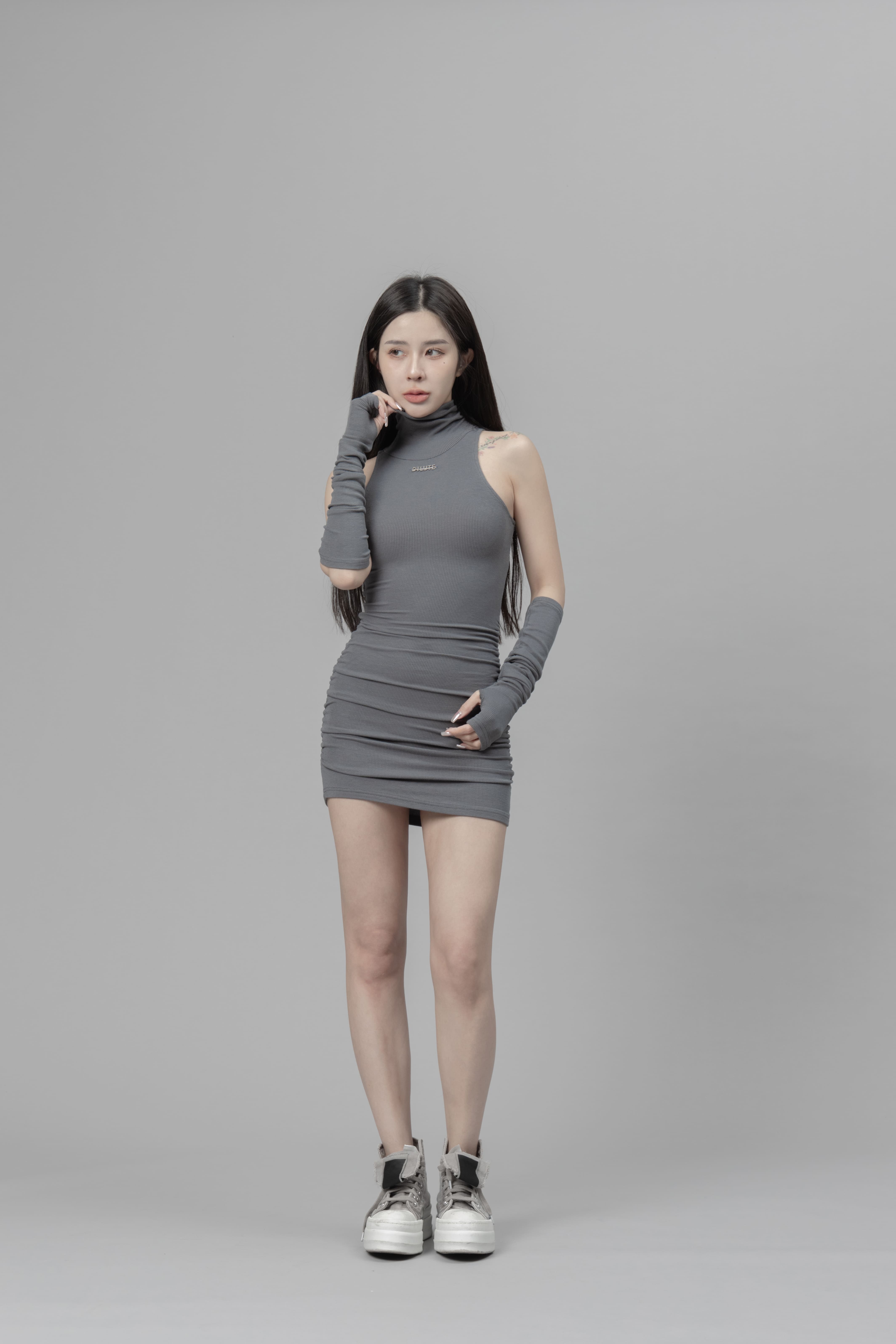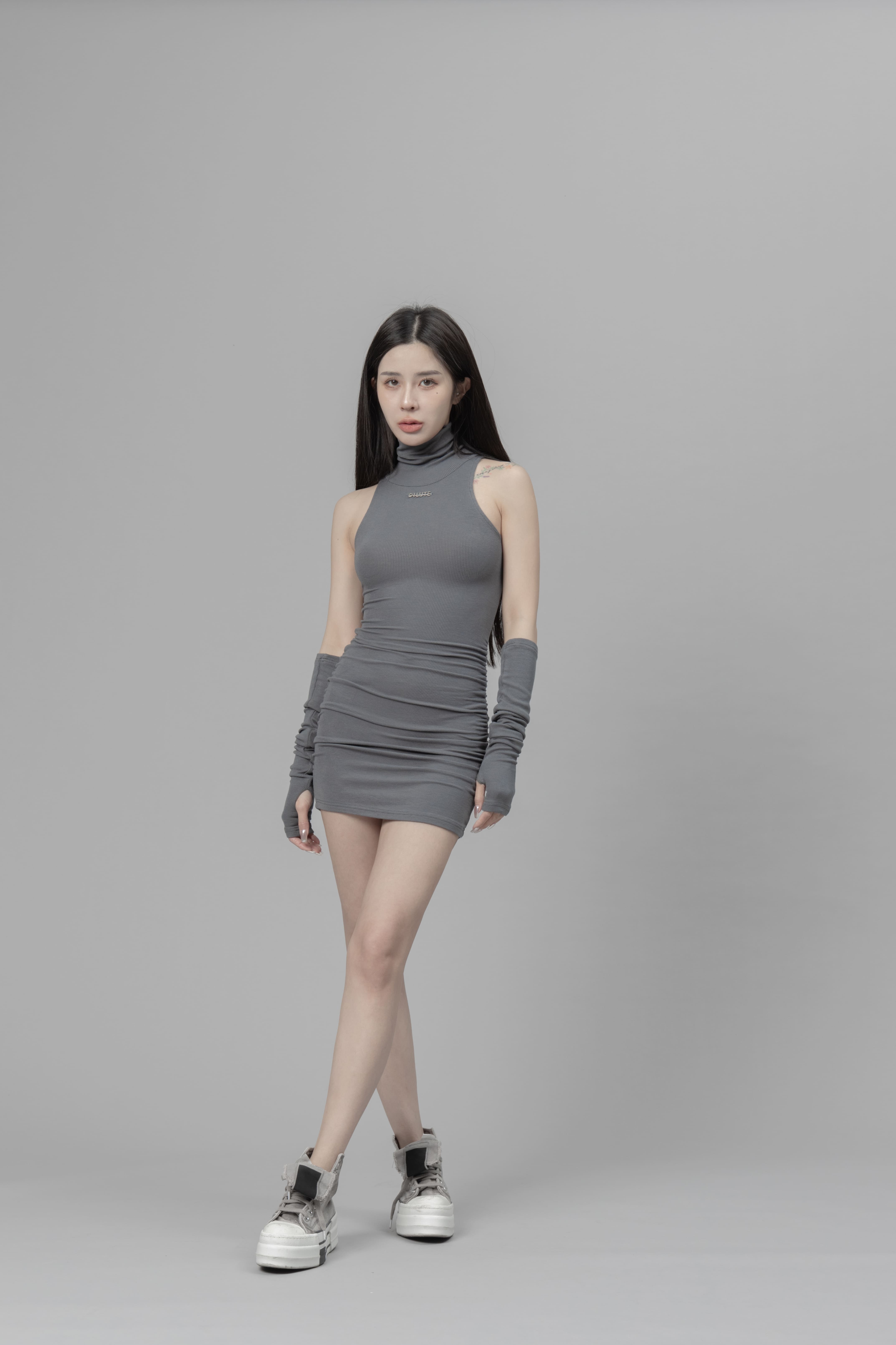 SS0840 - Iron Gray Turtleneck Mini Dress
