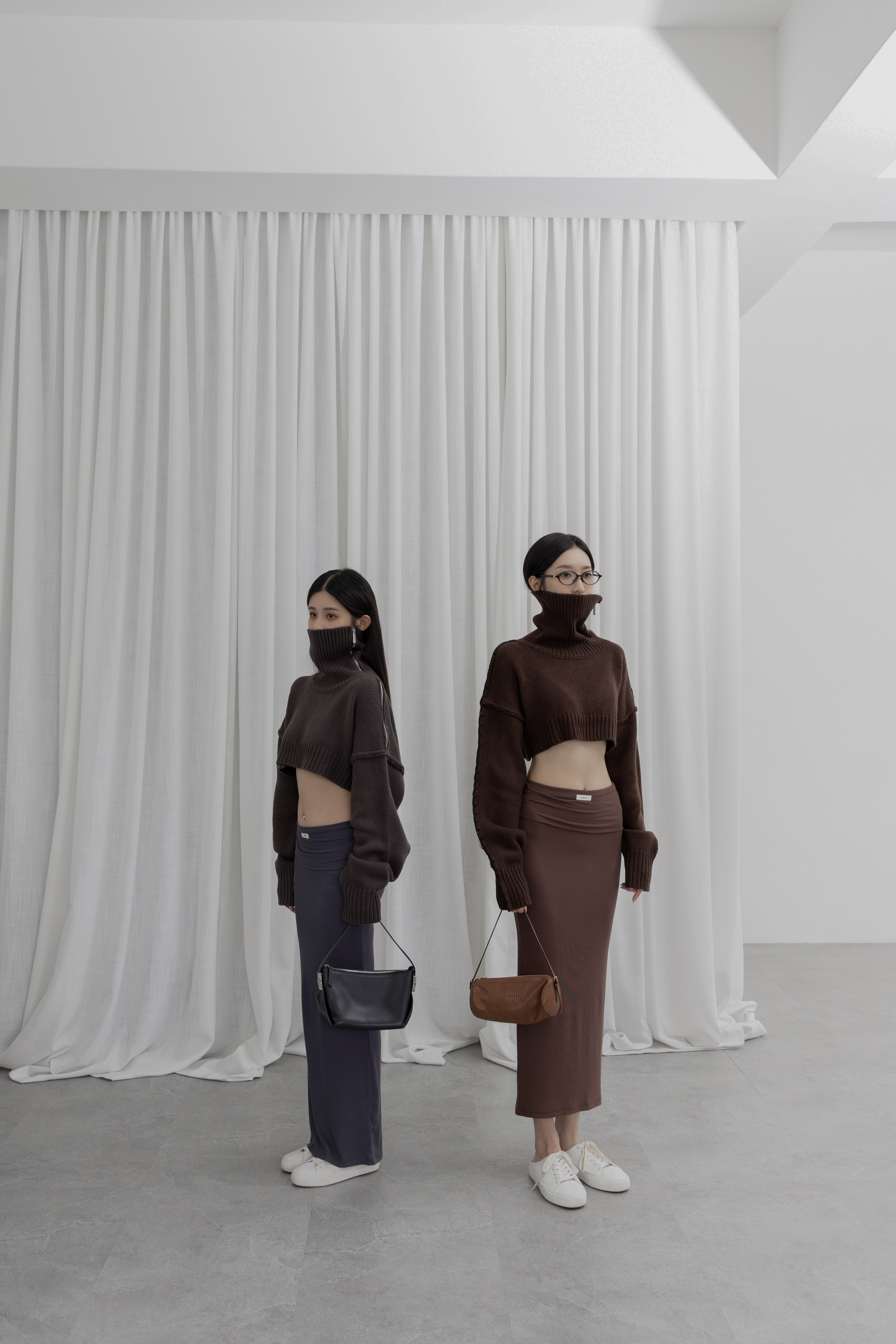 A cool, misty grey hue in a high-stretch fabric, featuring a collar detail that exudes a chic and sophisticated vibe.