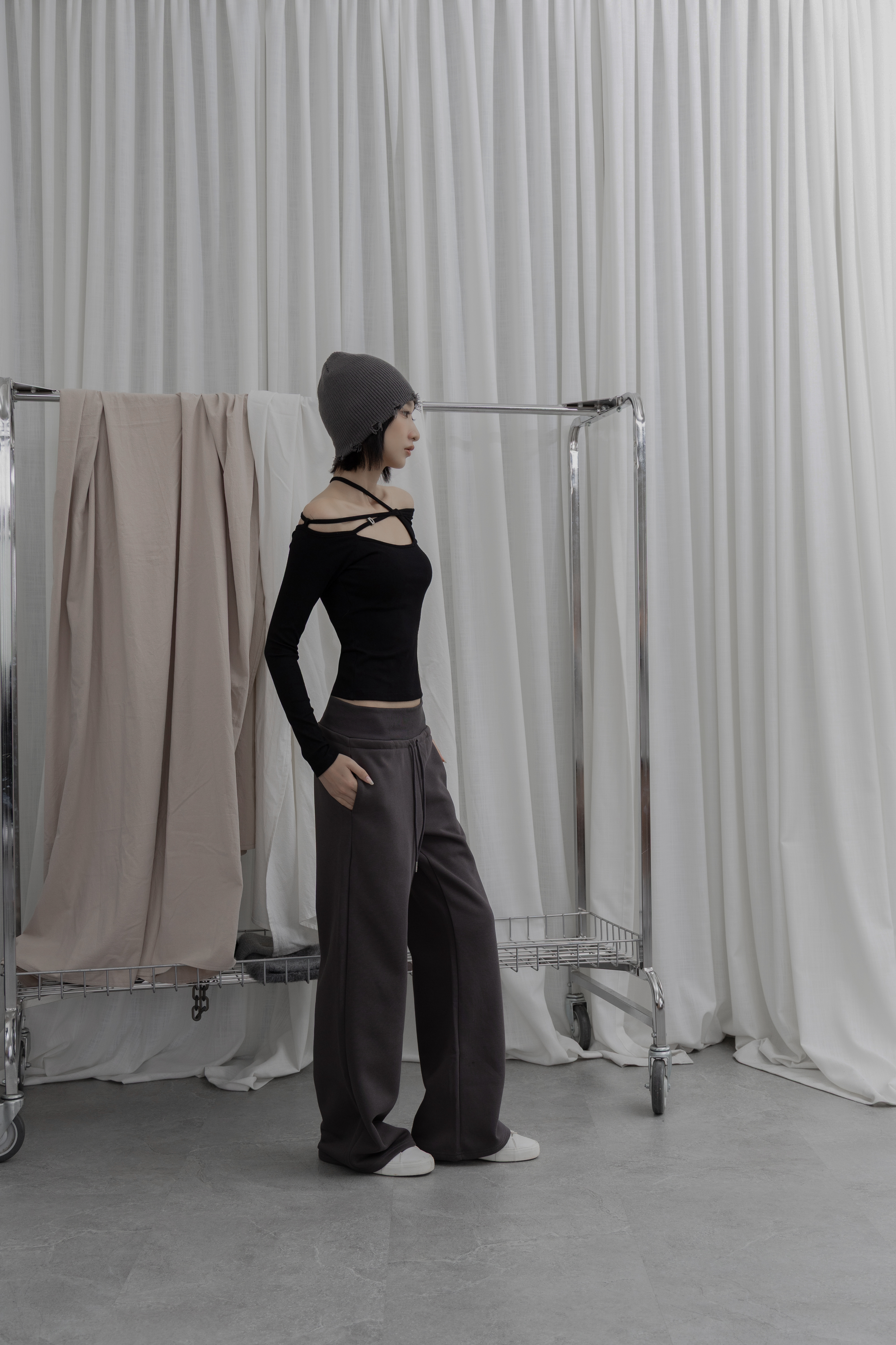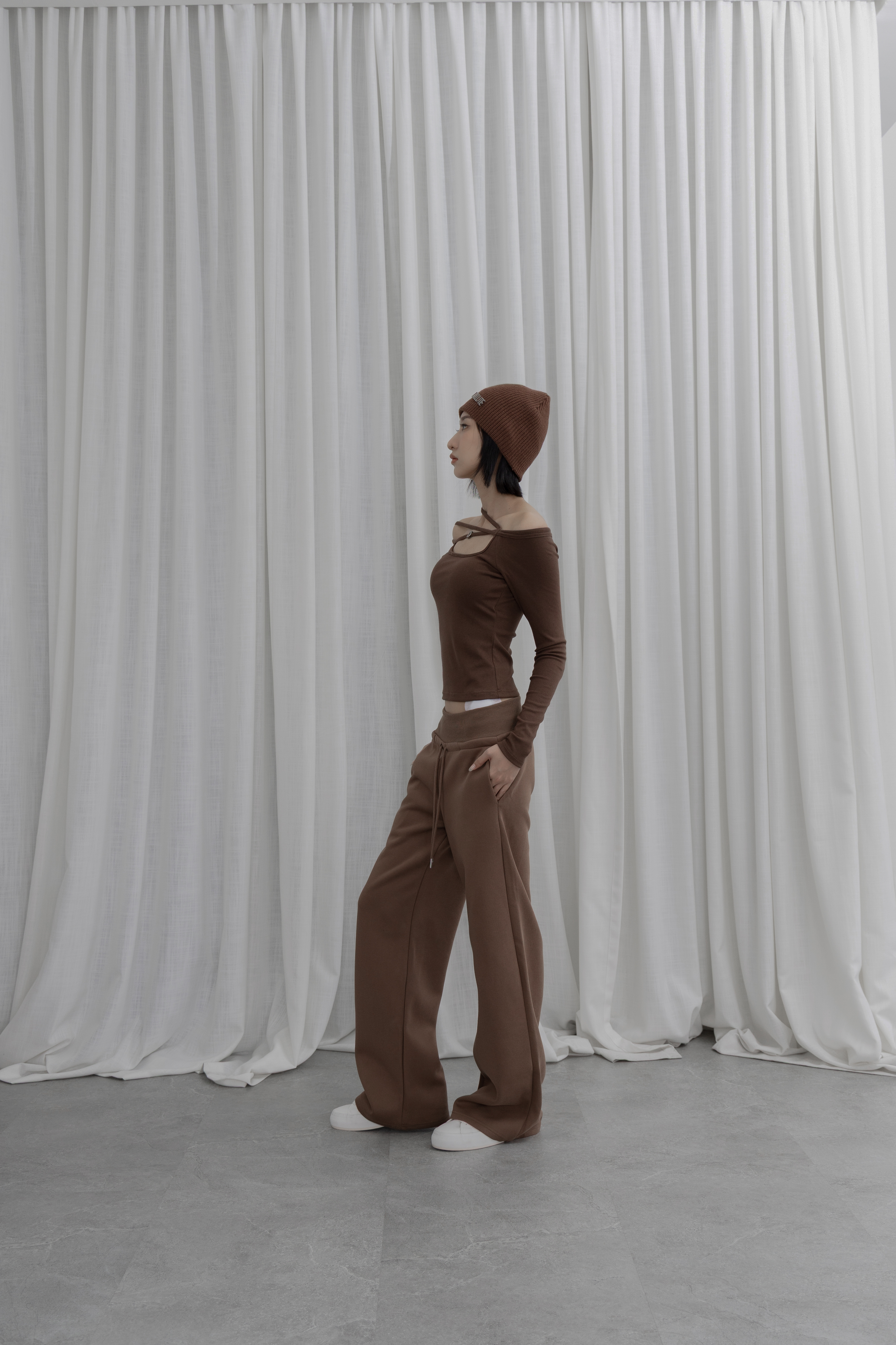 A warm, earthy tone combined with a casual drawstring design, effortlessly creating a vibe of relaxed sophistication.