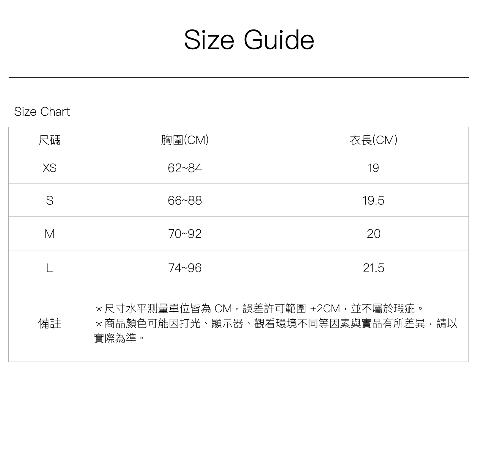 尺寸|XS \ S \ M \ L