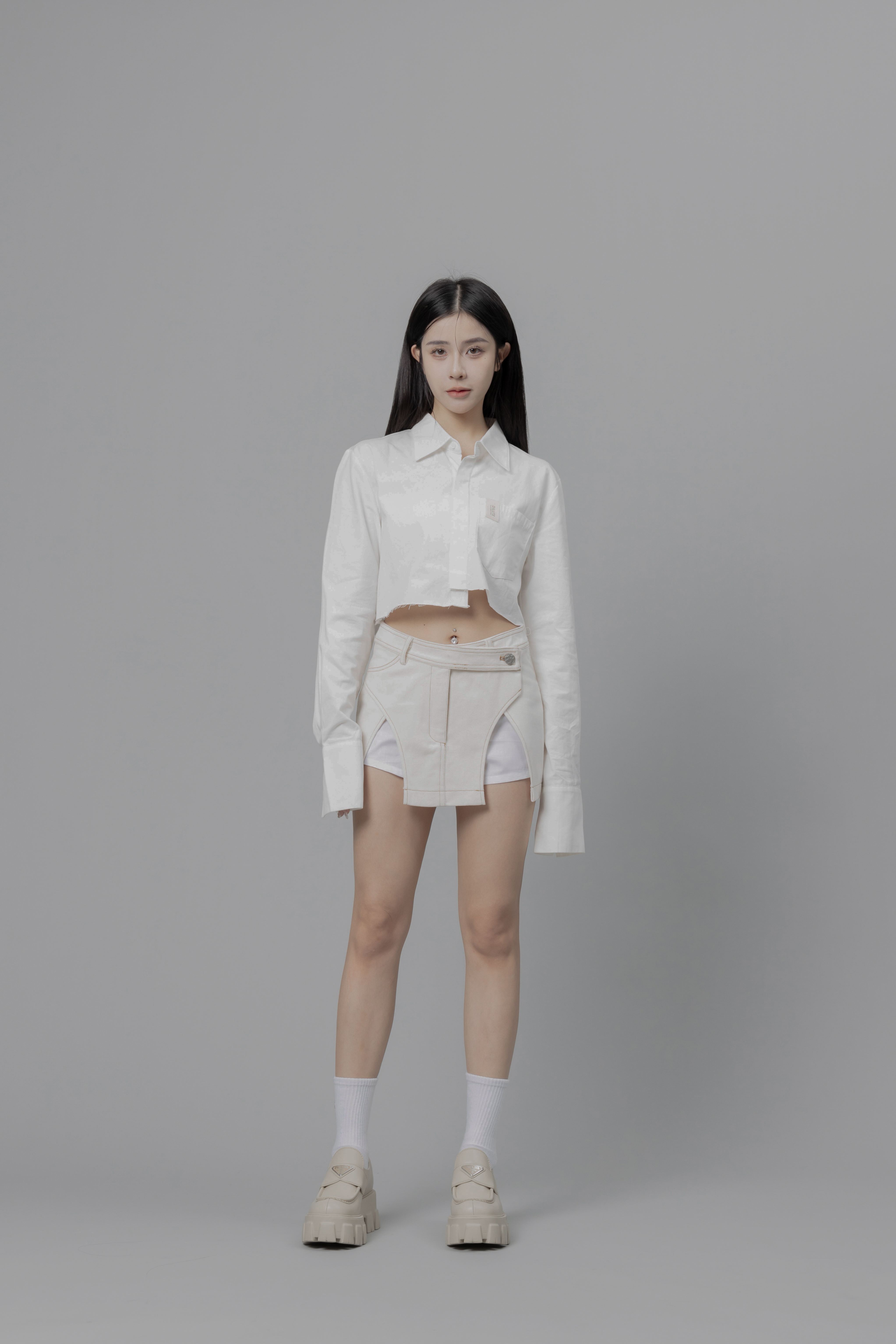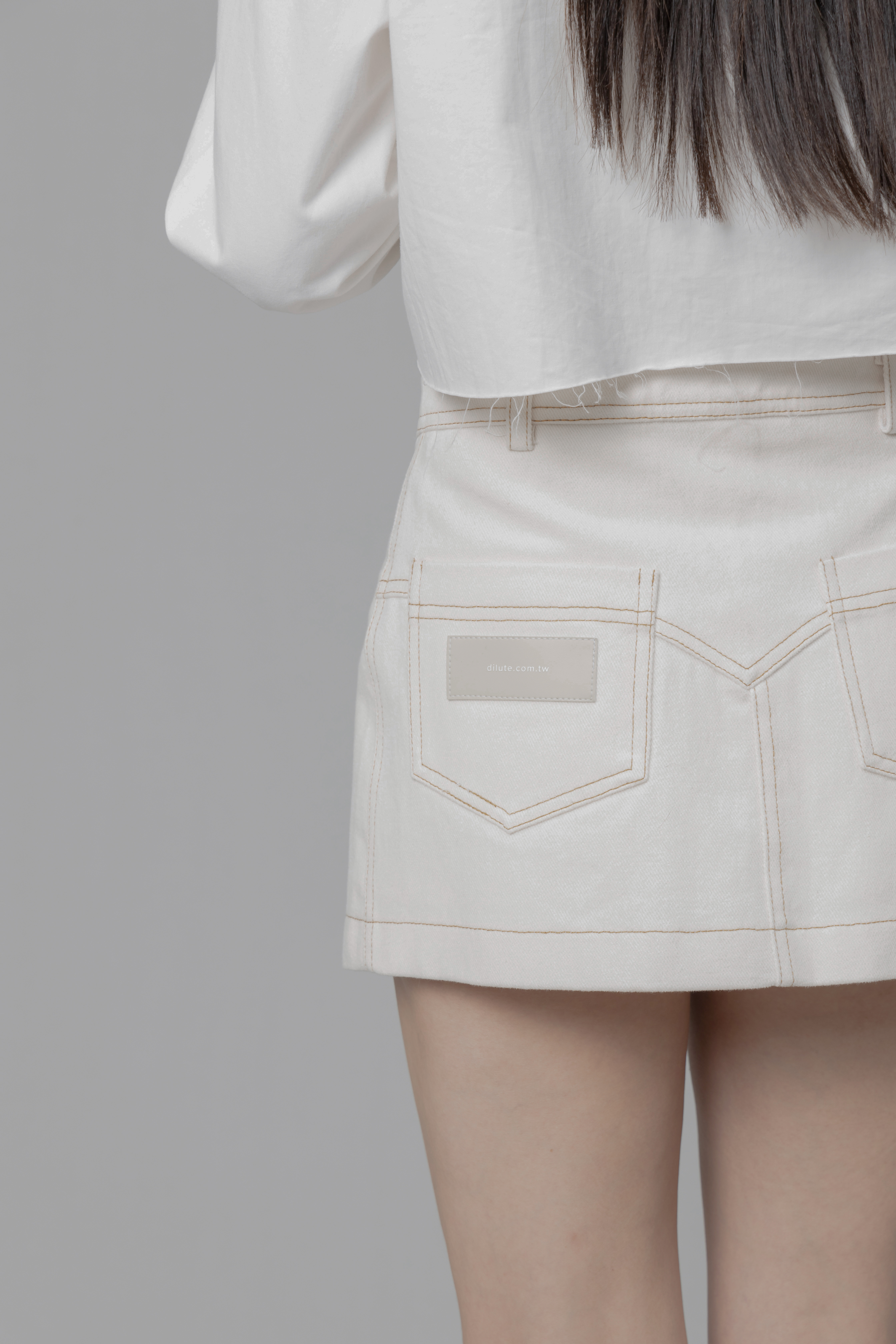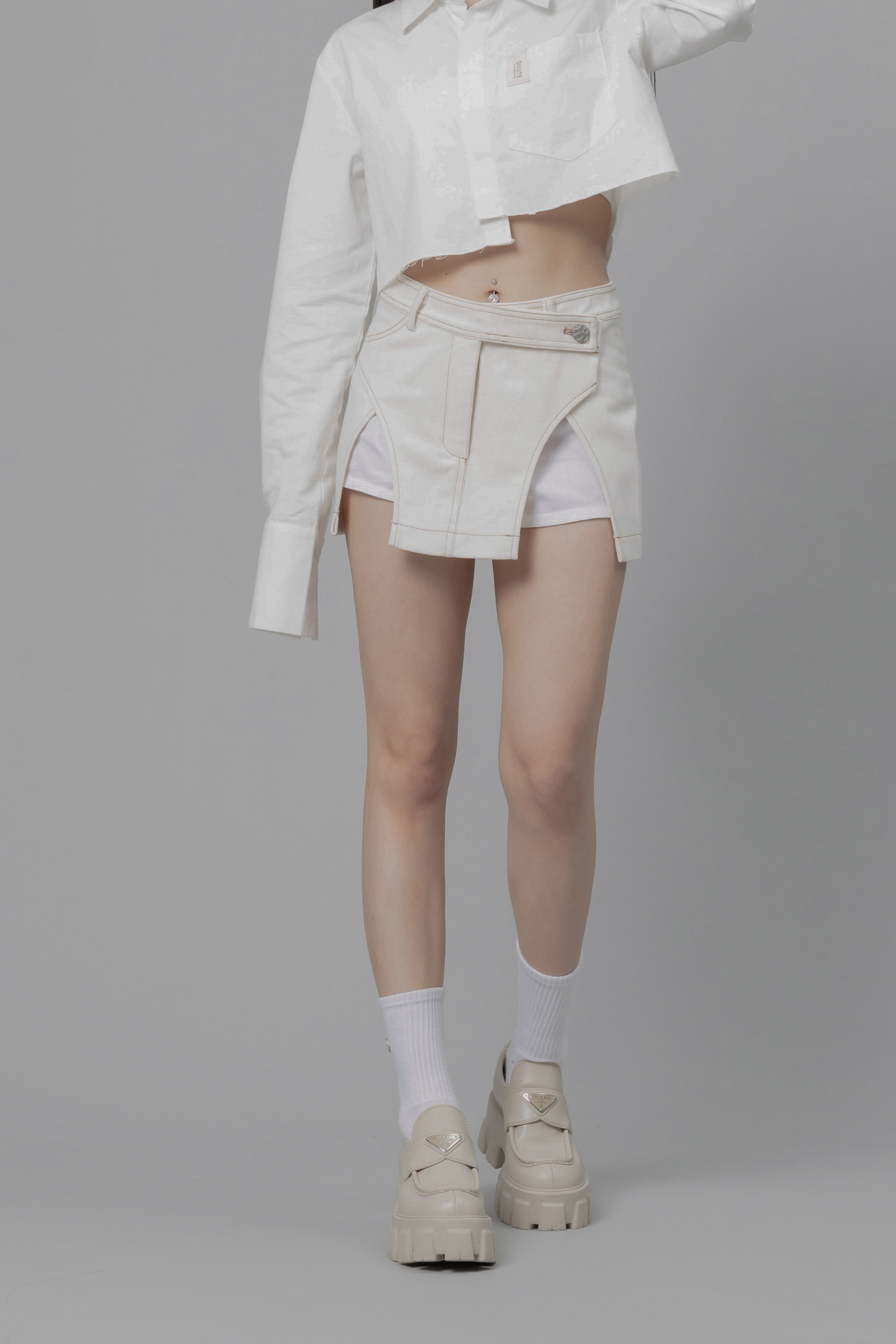 Aurora - 白色設計感拼接短裙