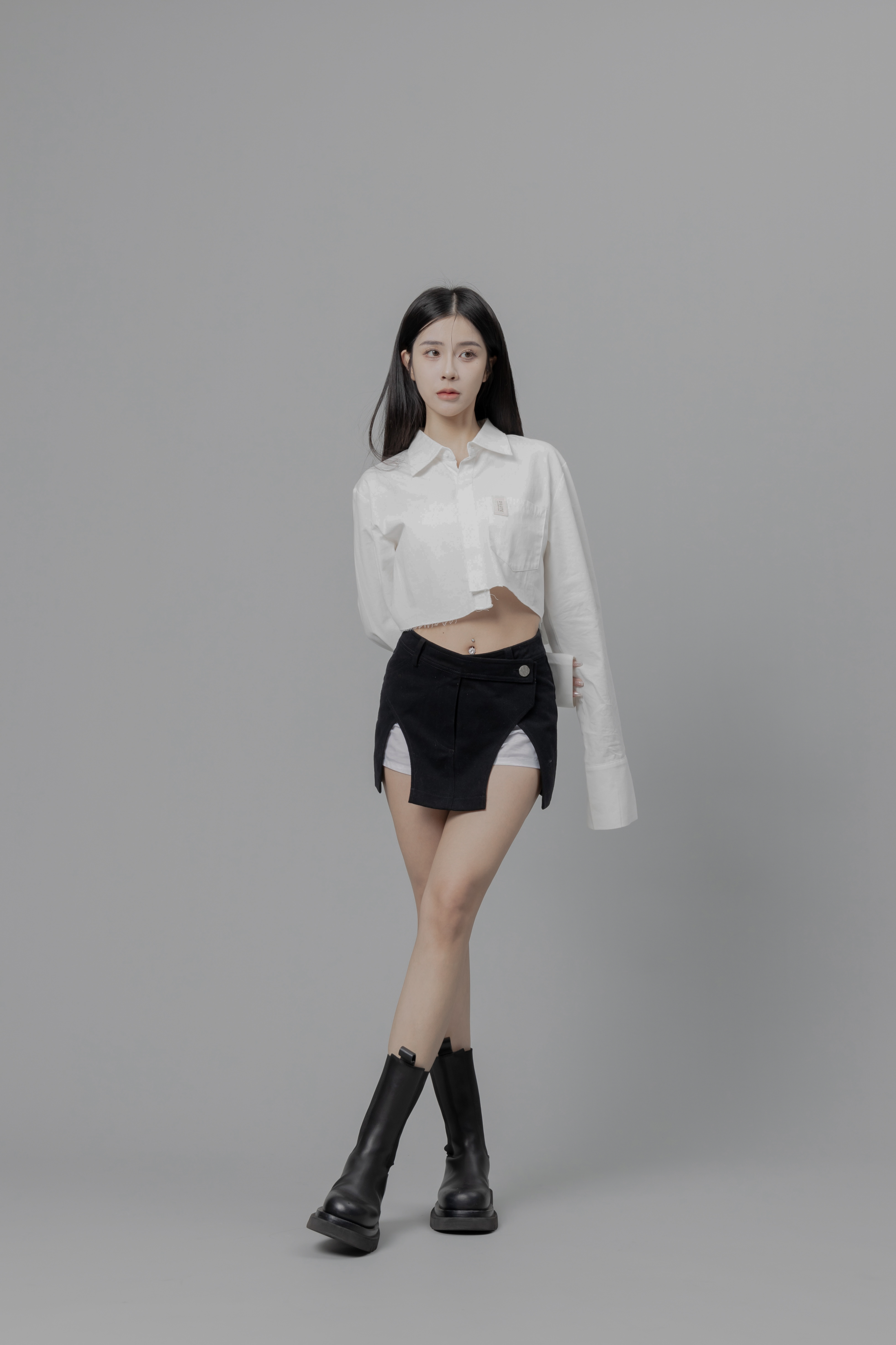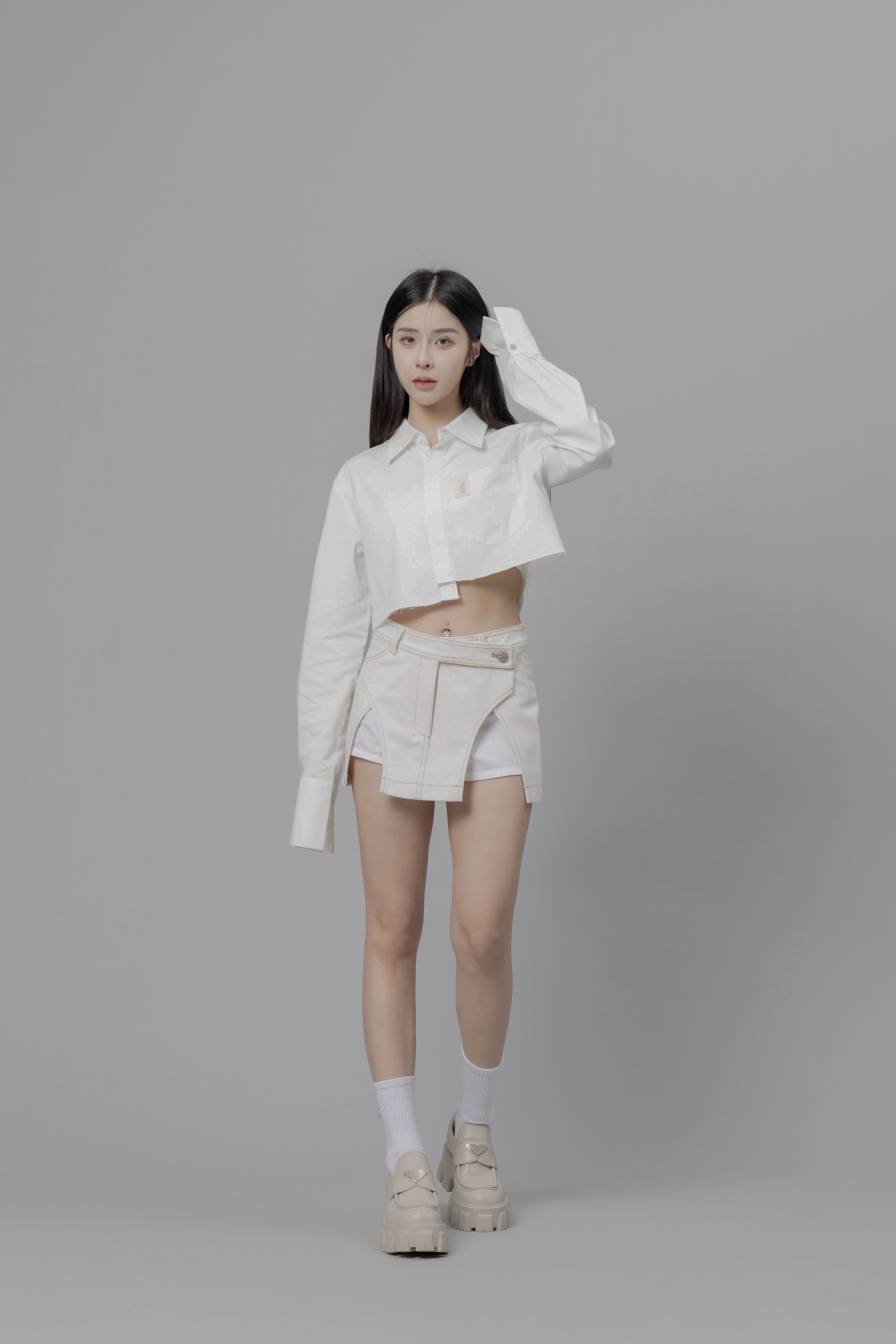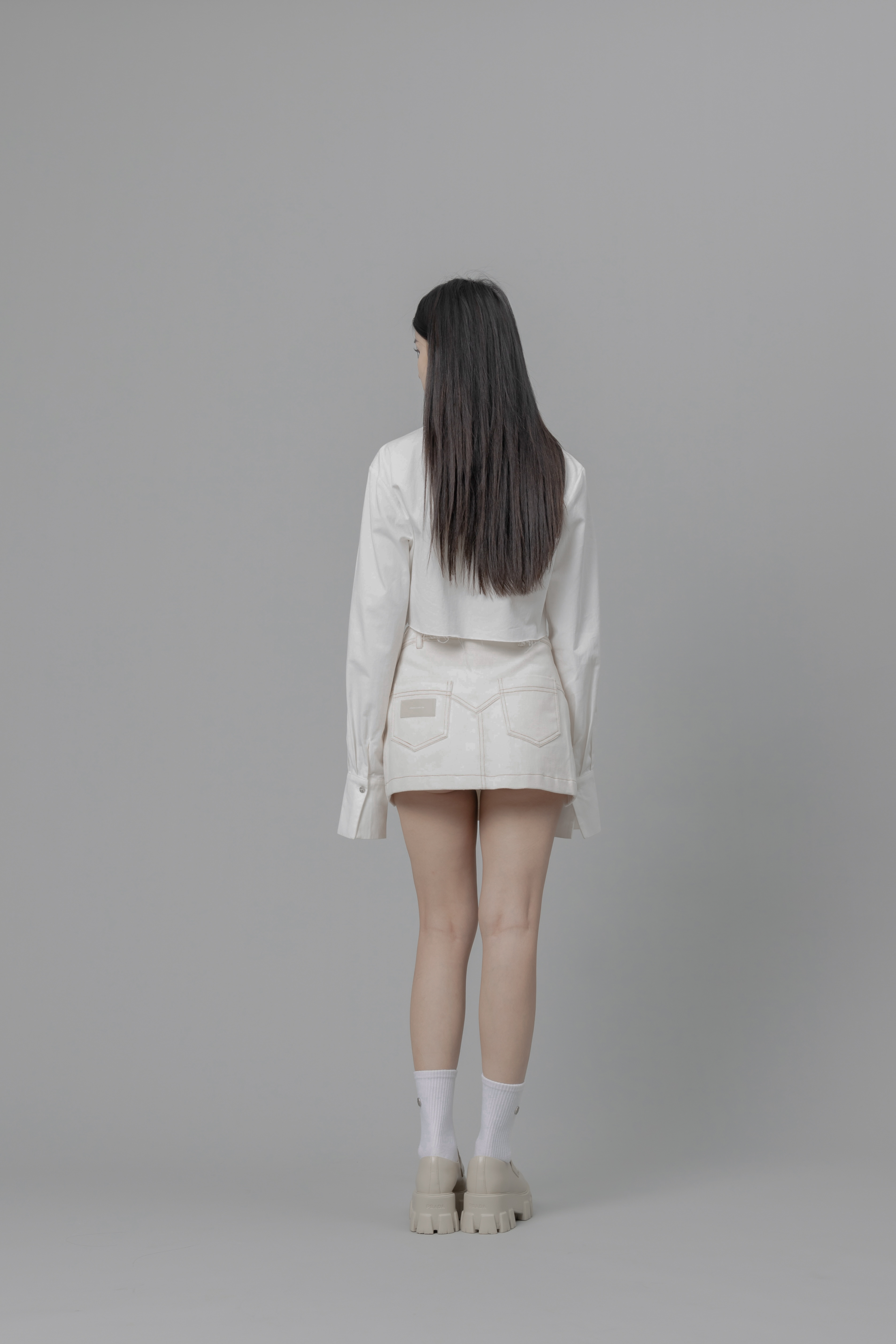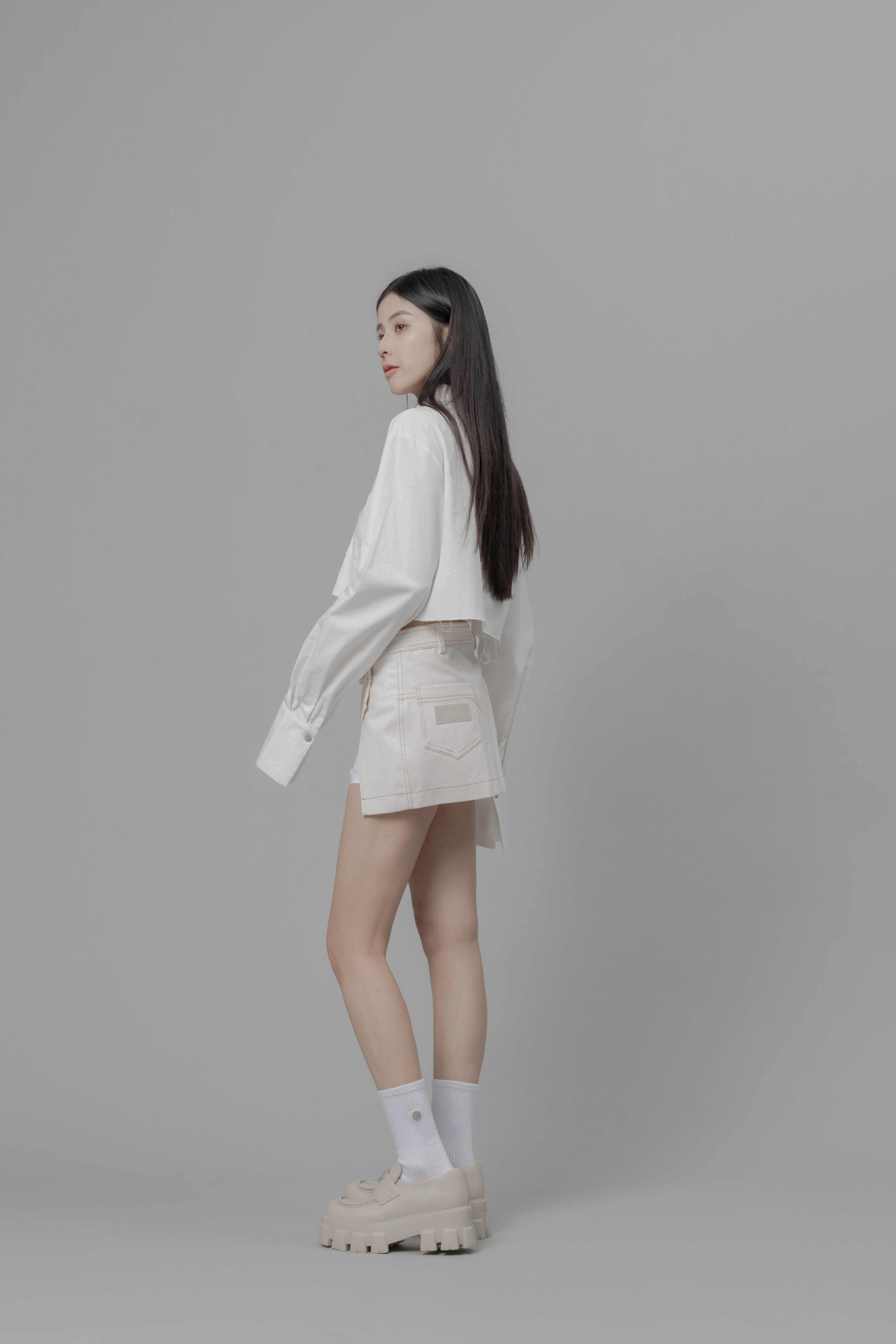 Aurora - 白色設計感拼接短裙