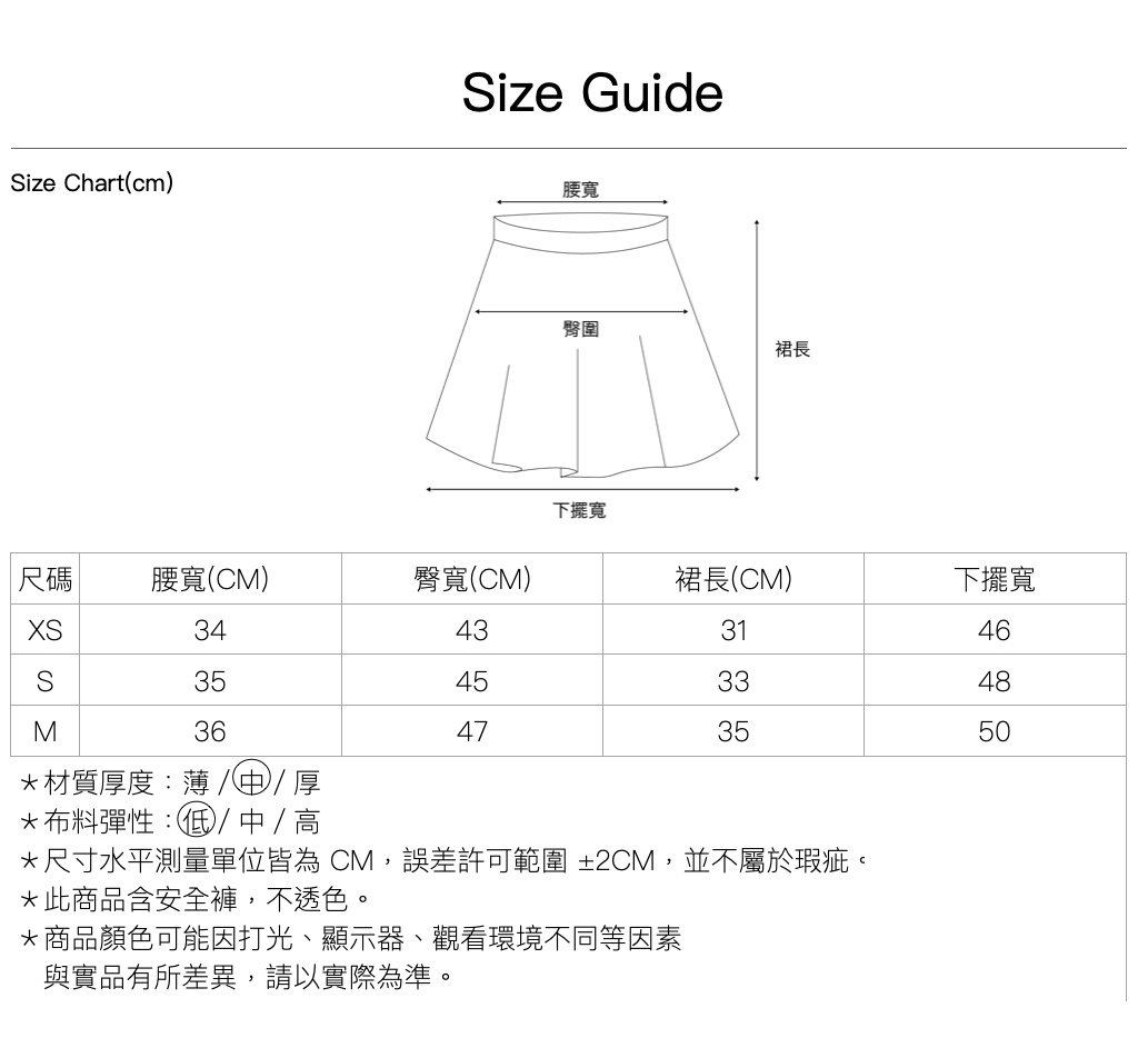 尺寸|XS \ S \ M