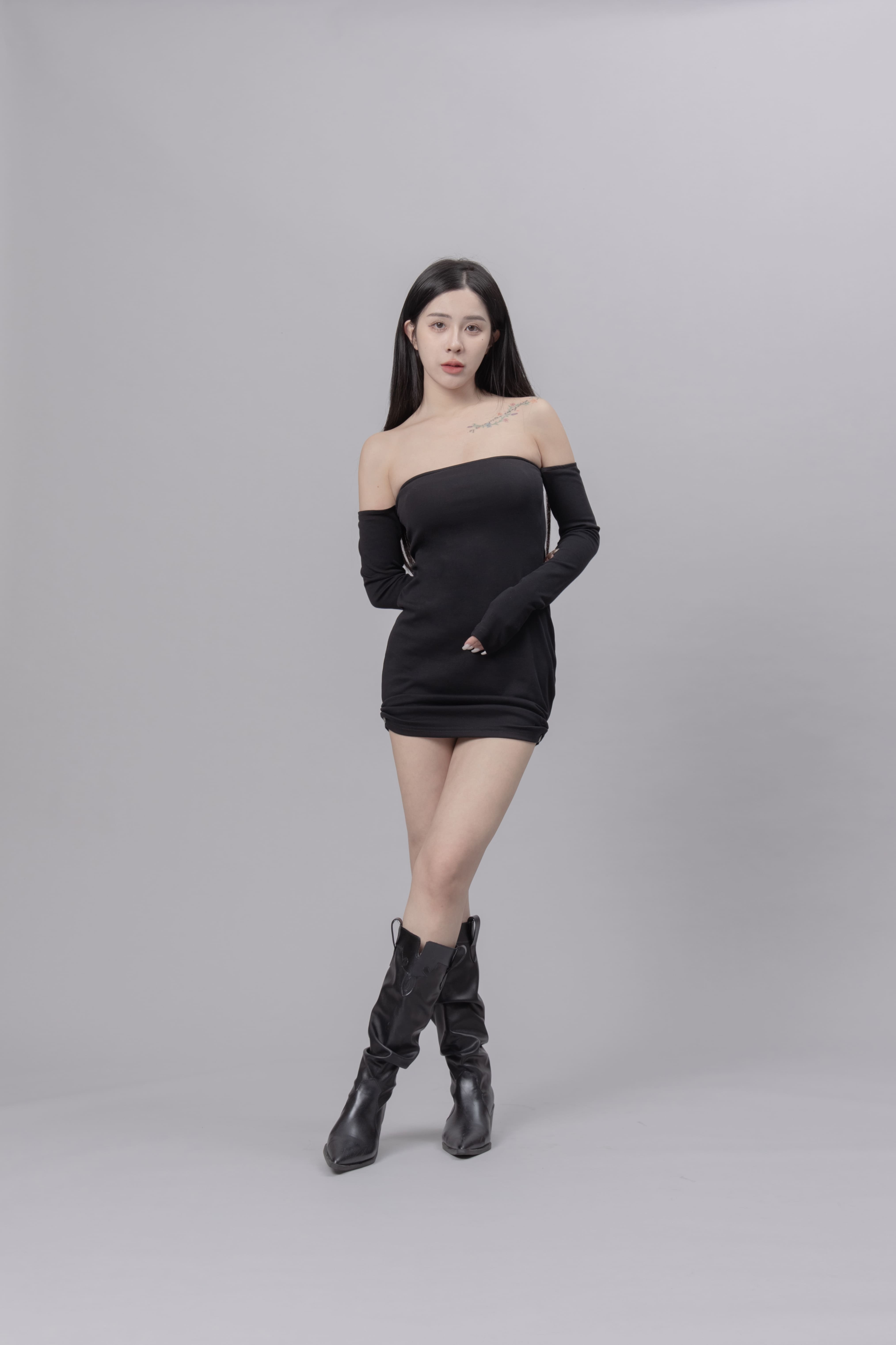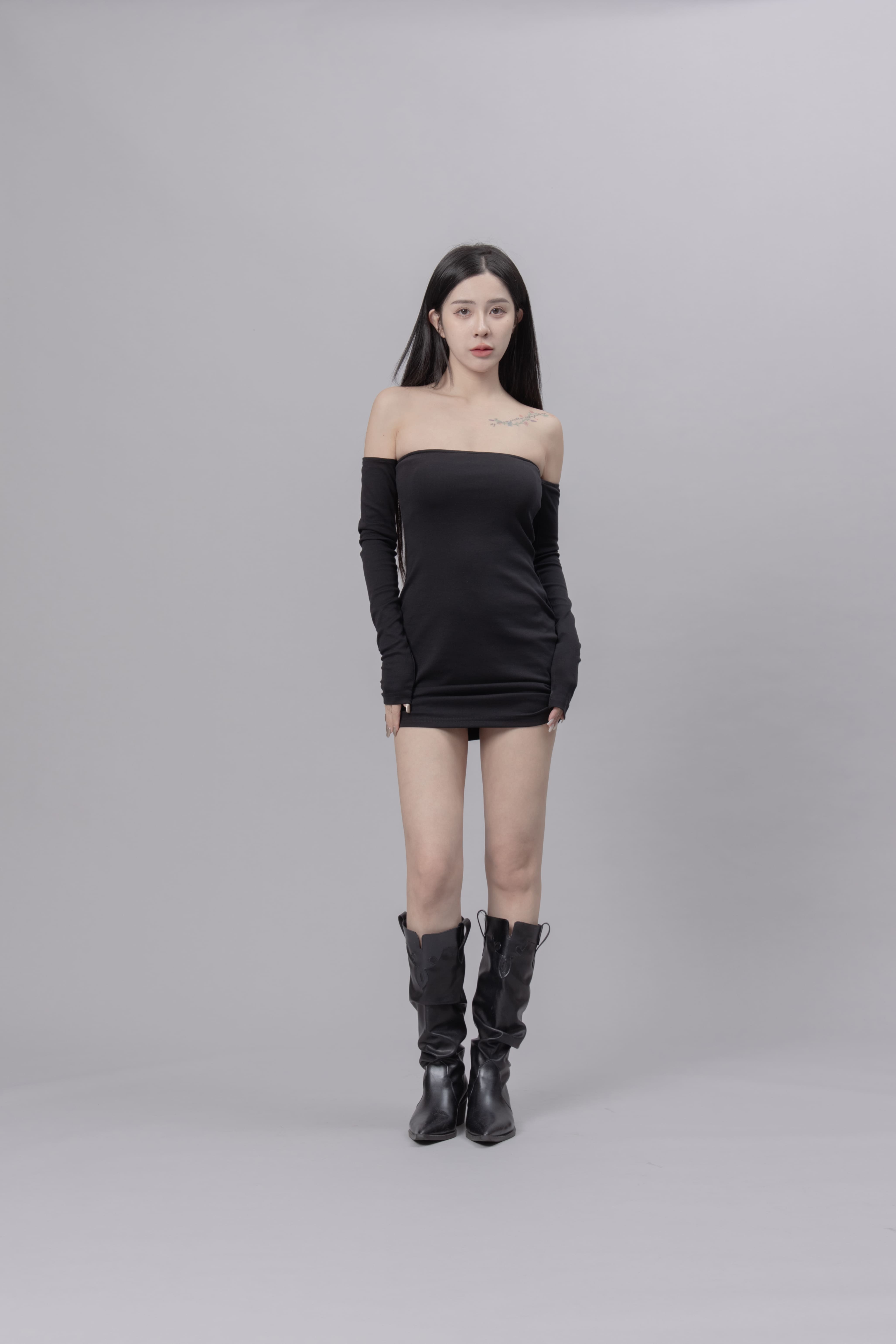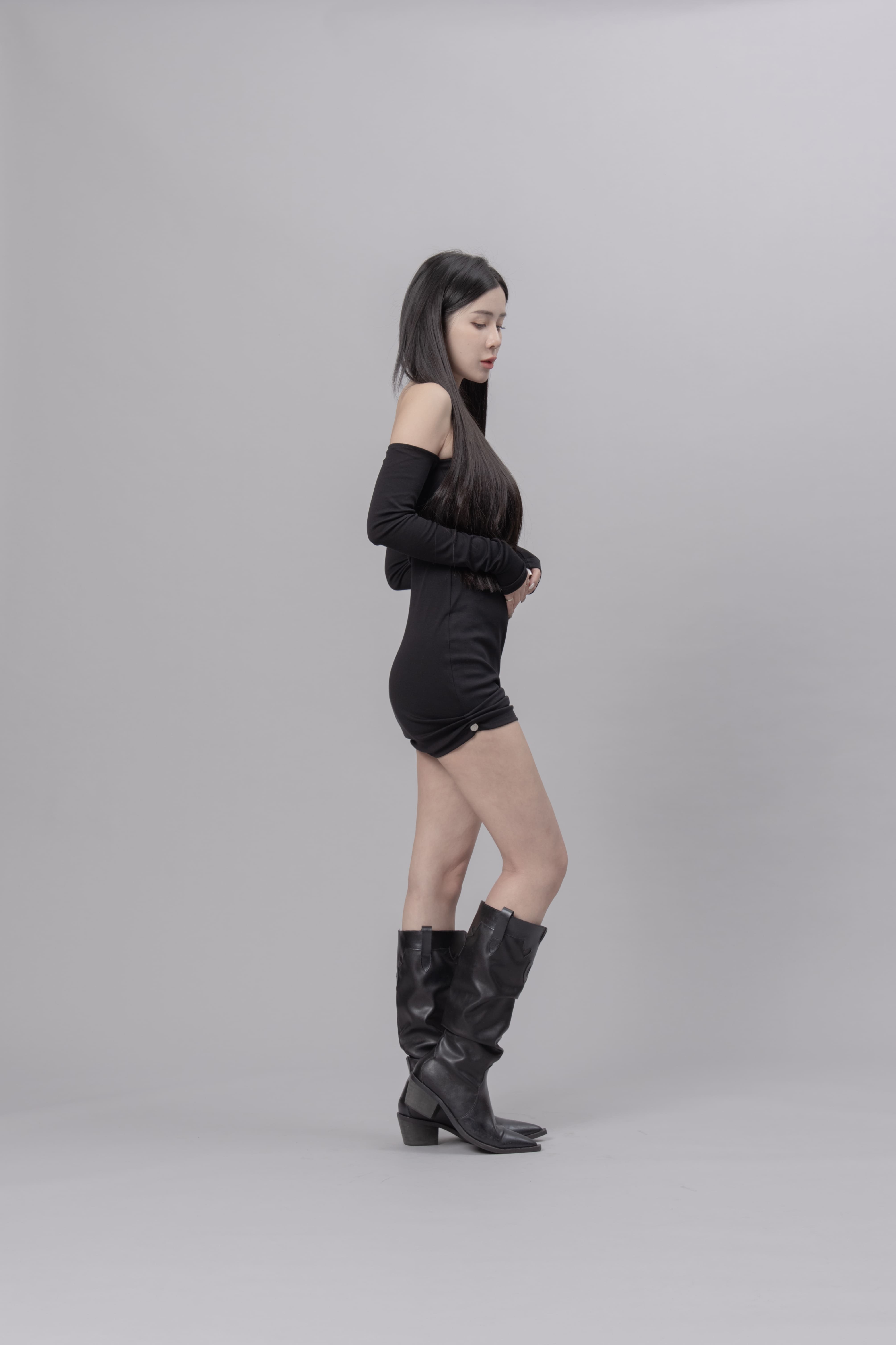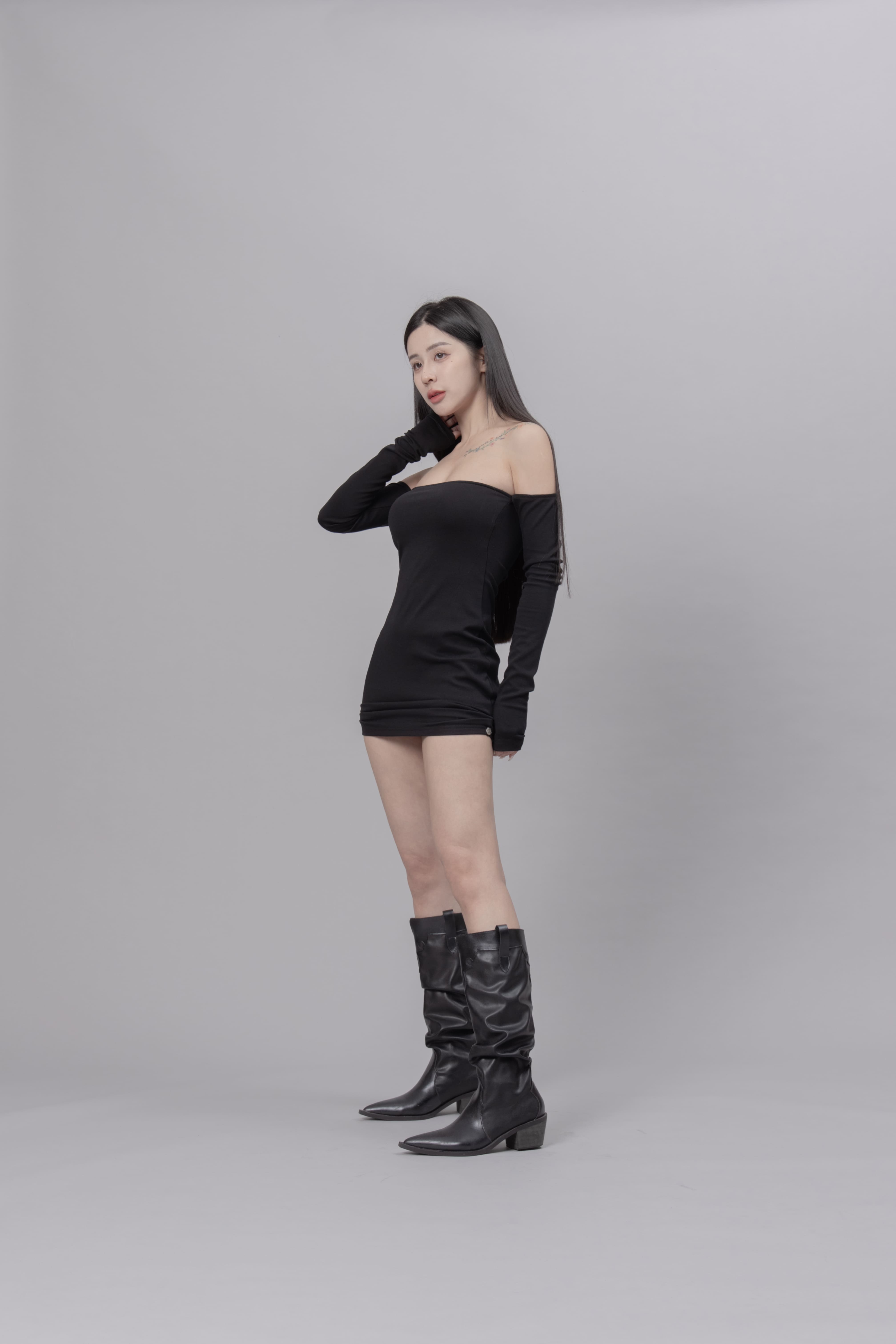 AW0622 - 黑色抓皺洋裝