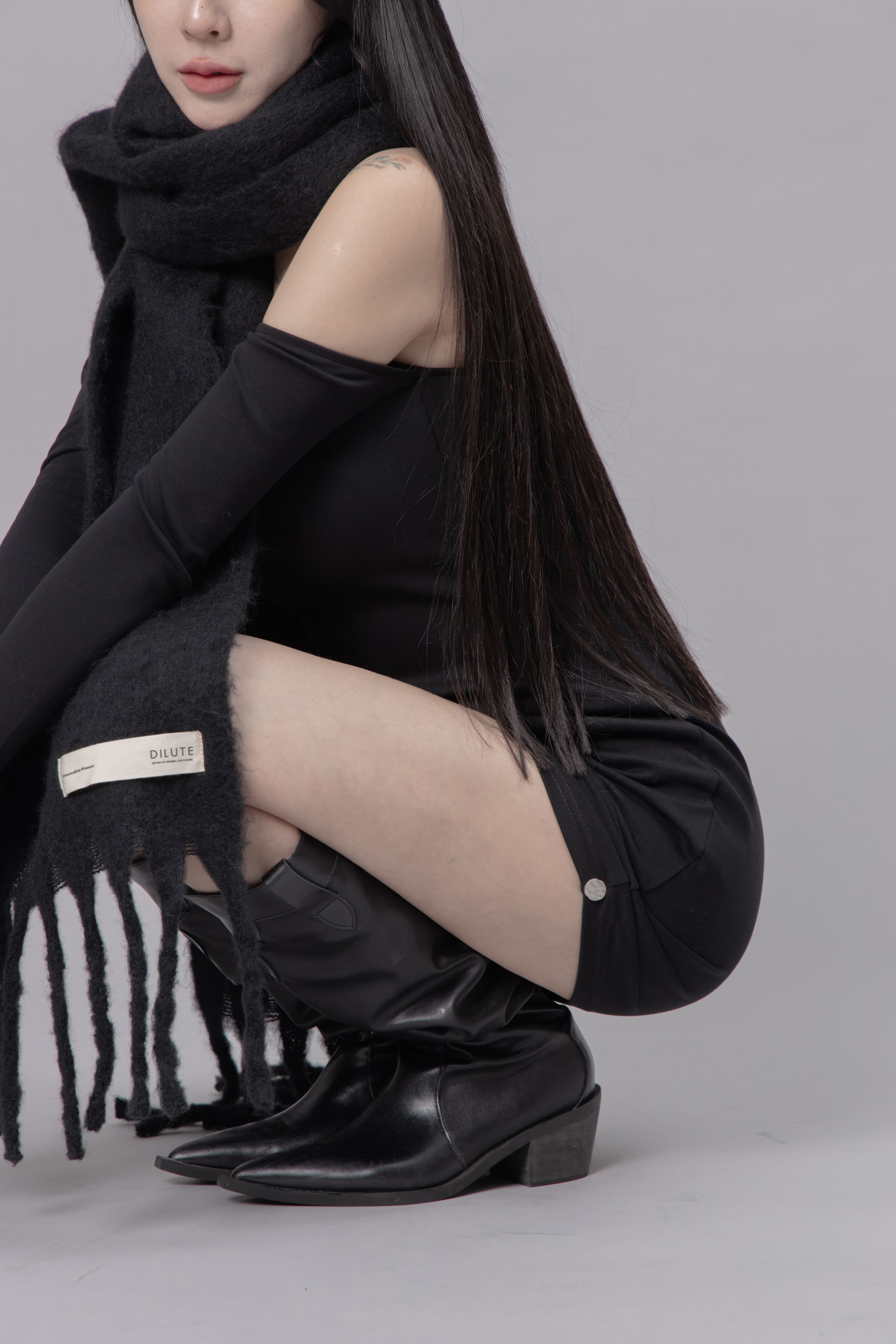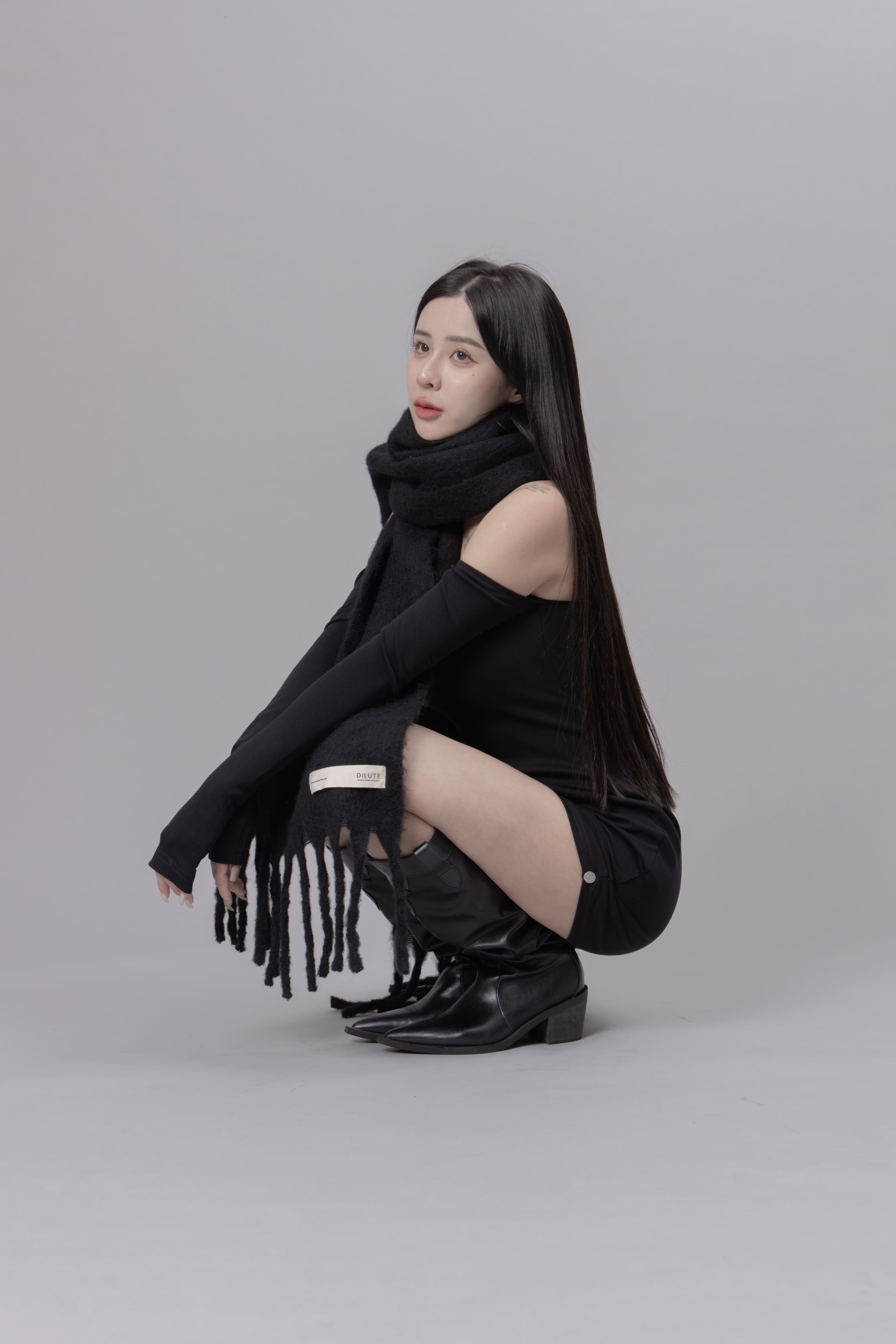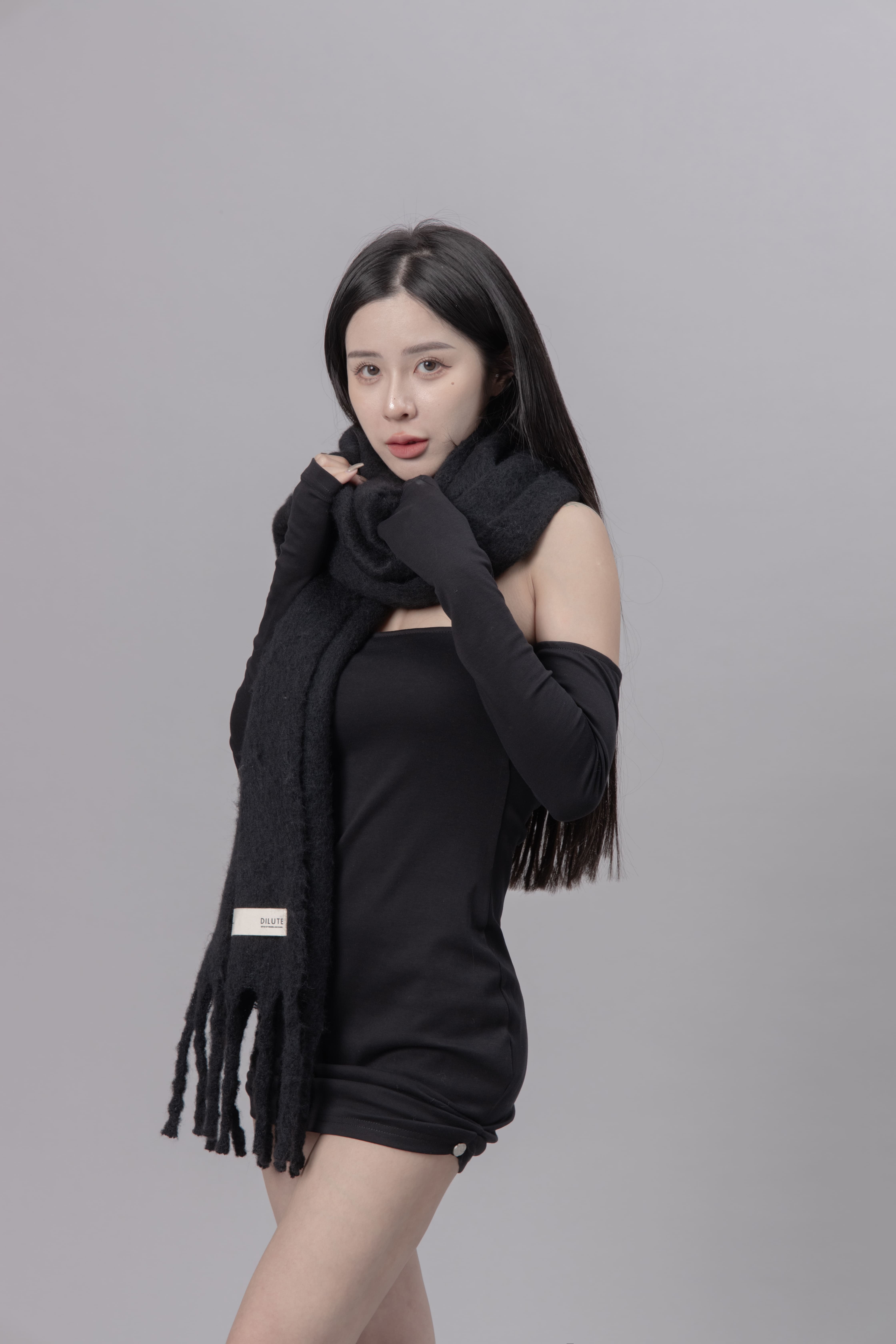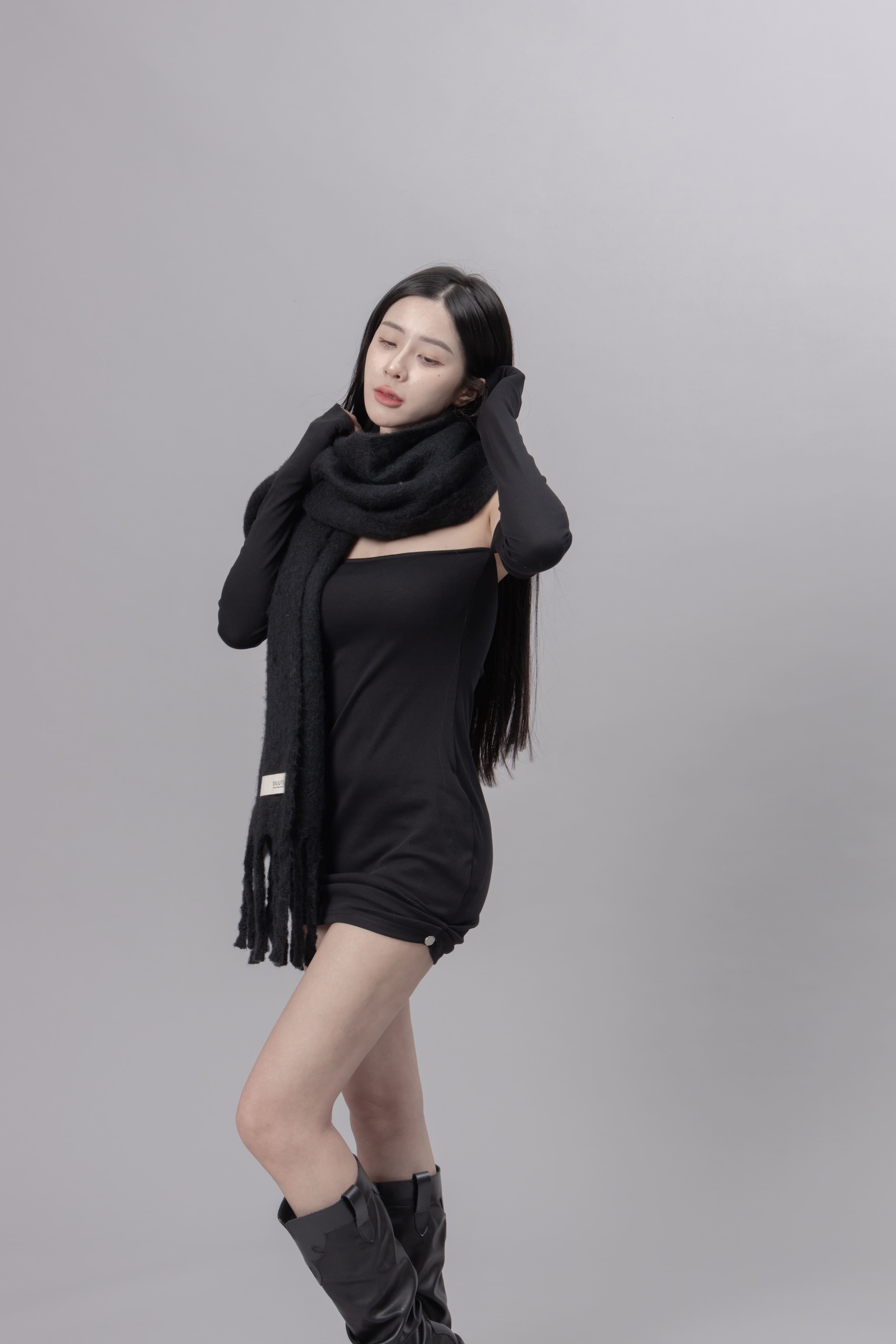 AW0622 - 黑色抓皺洋裝