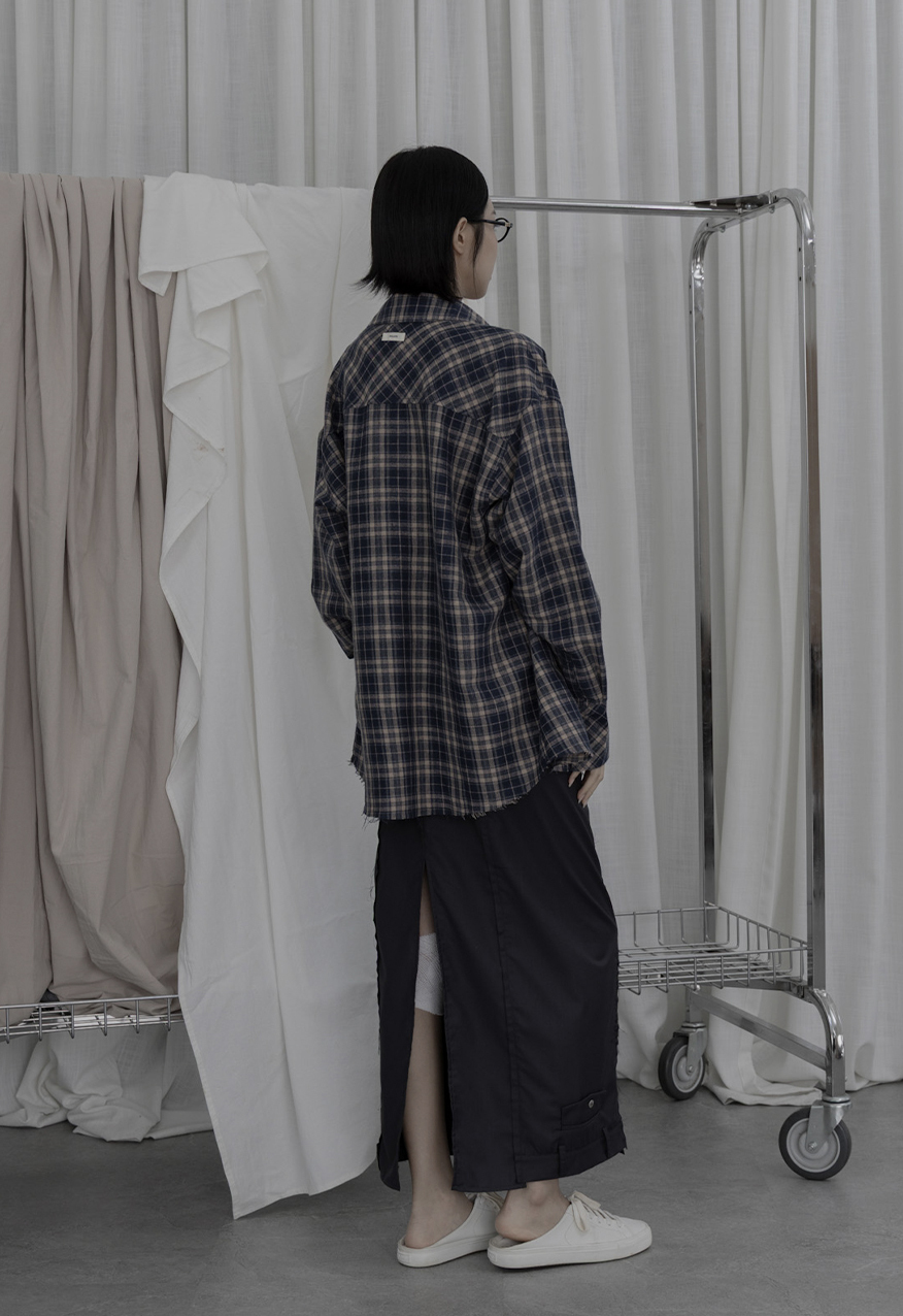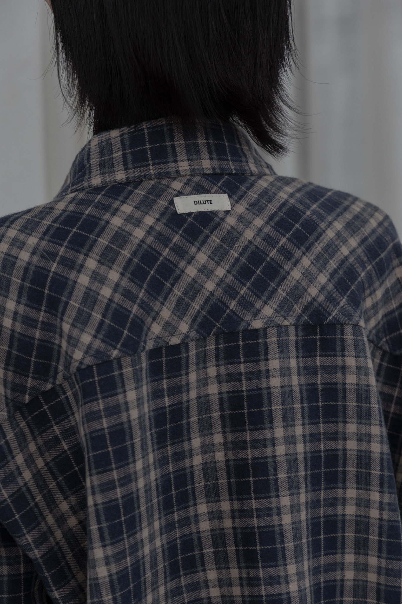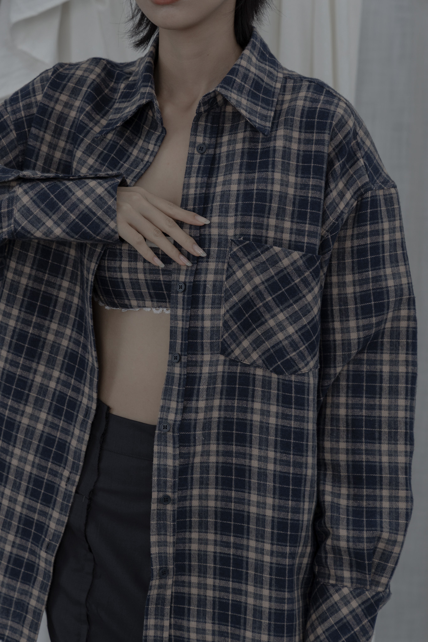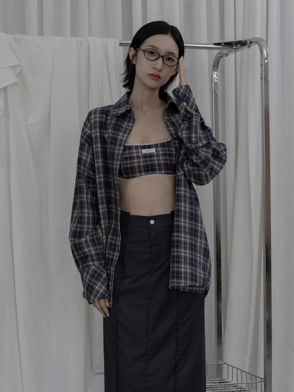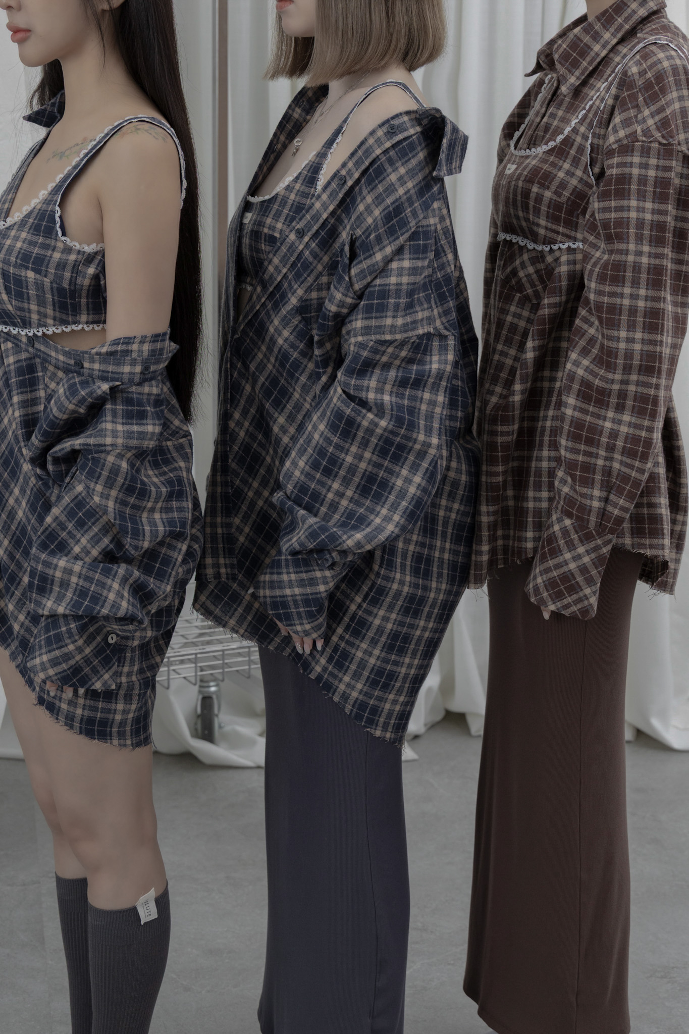 AW1038 - 做舊霧藍格紋襯衫套裝