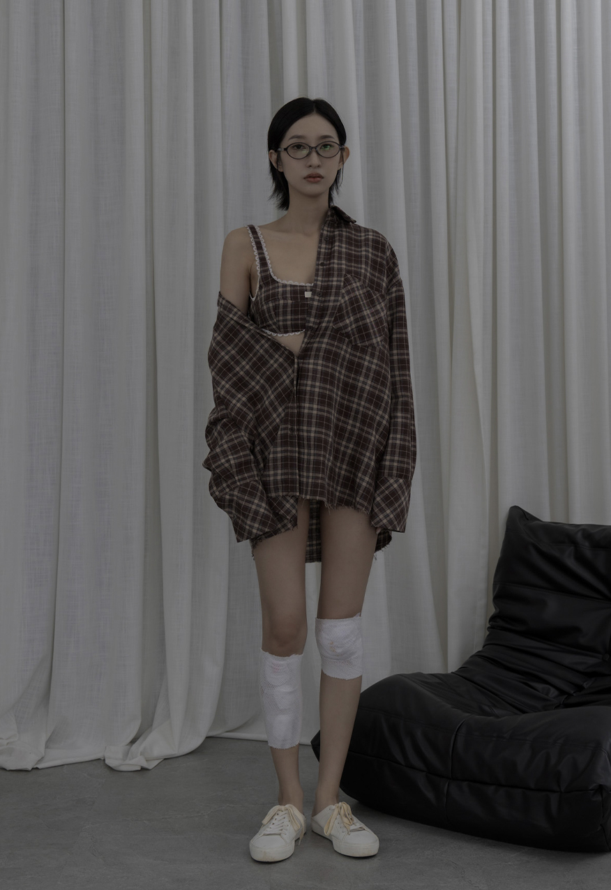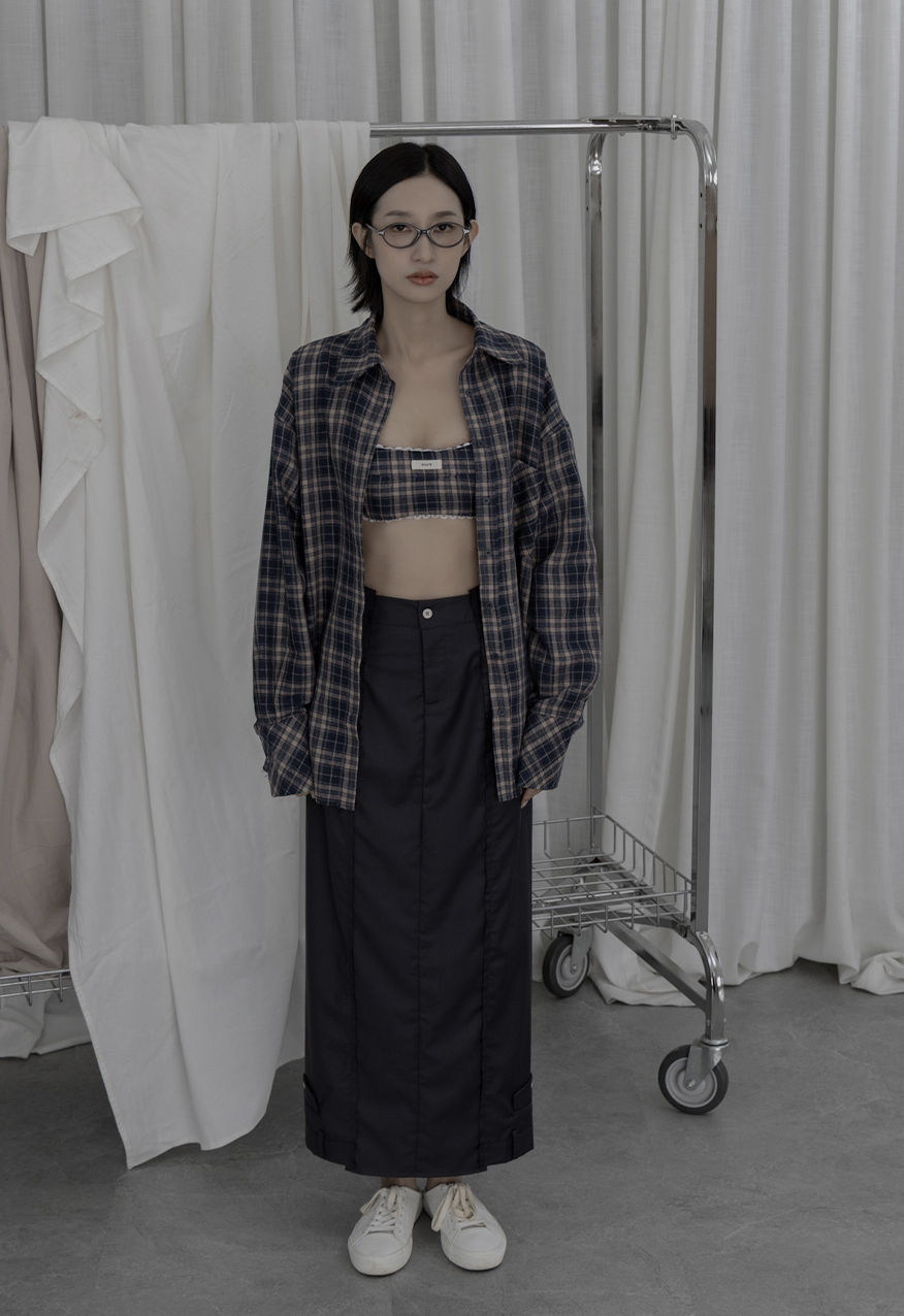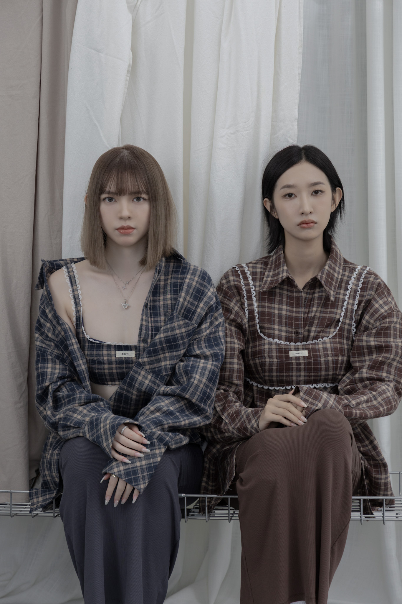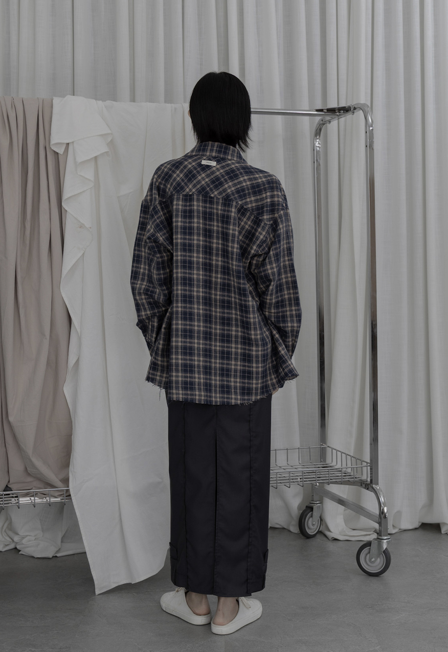 AW1038 - 做舊霧藍格紋襯衫套裝