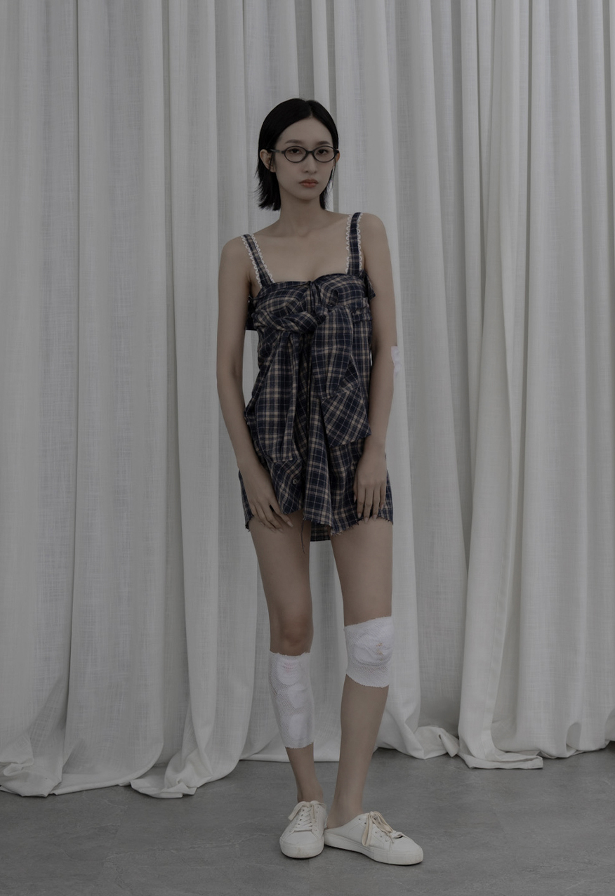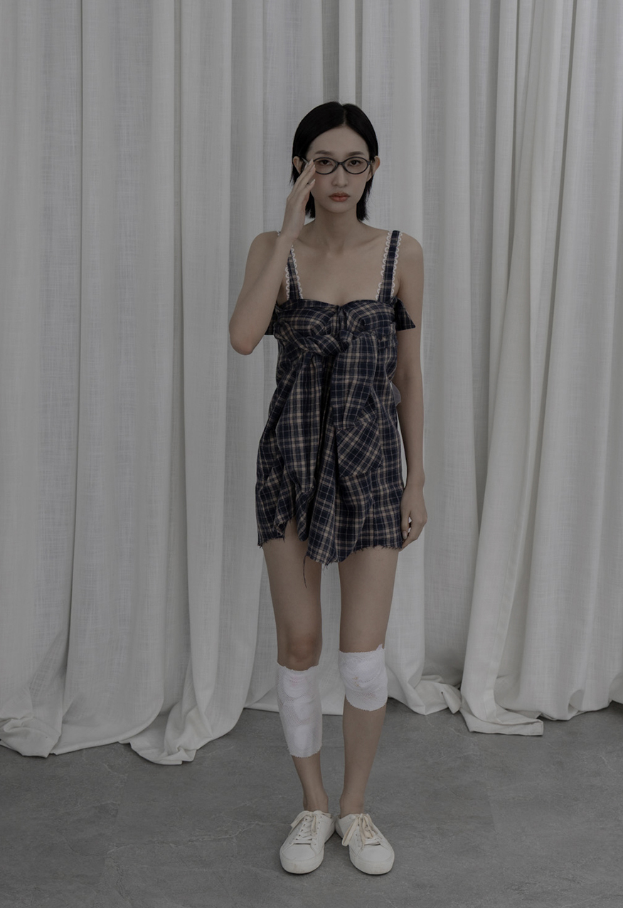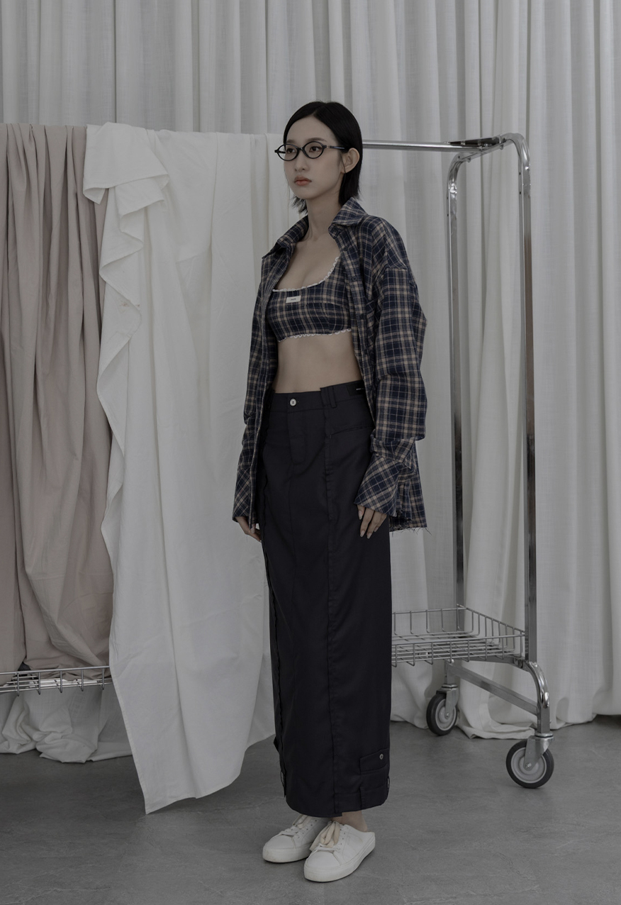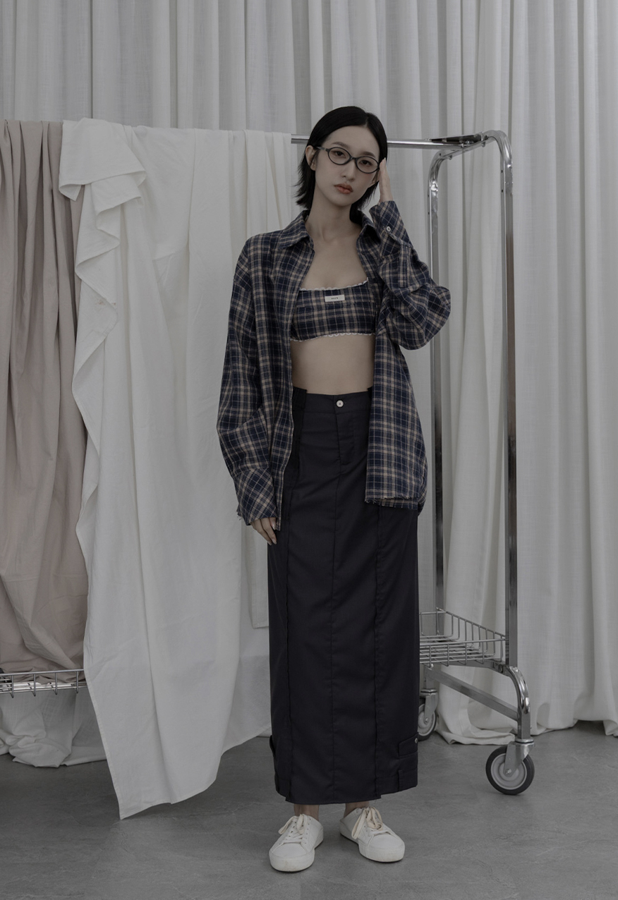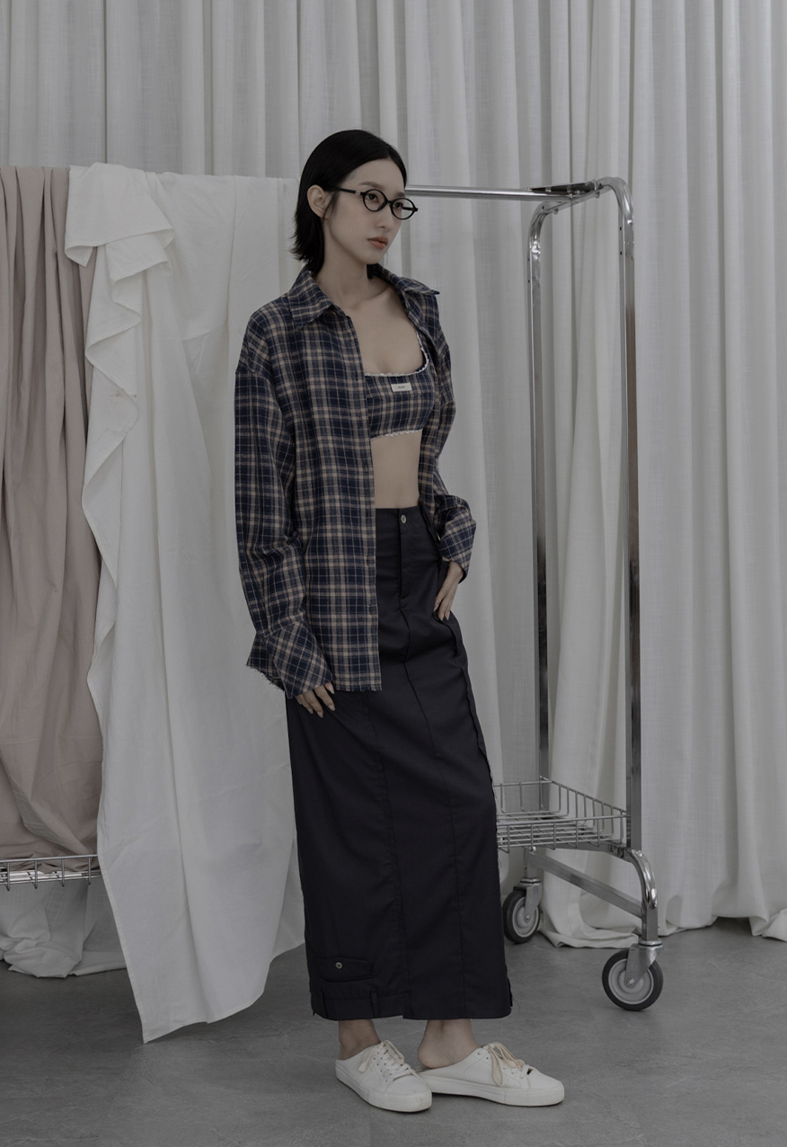 AW1038 - 做舊霧藍格紋襯衫套裝