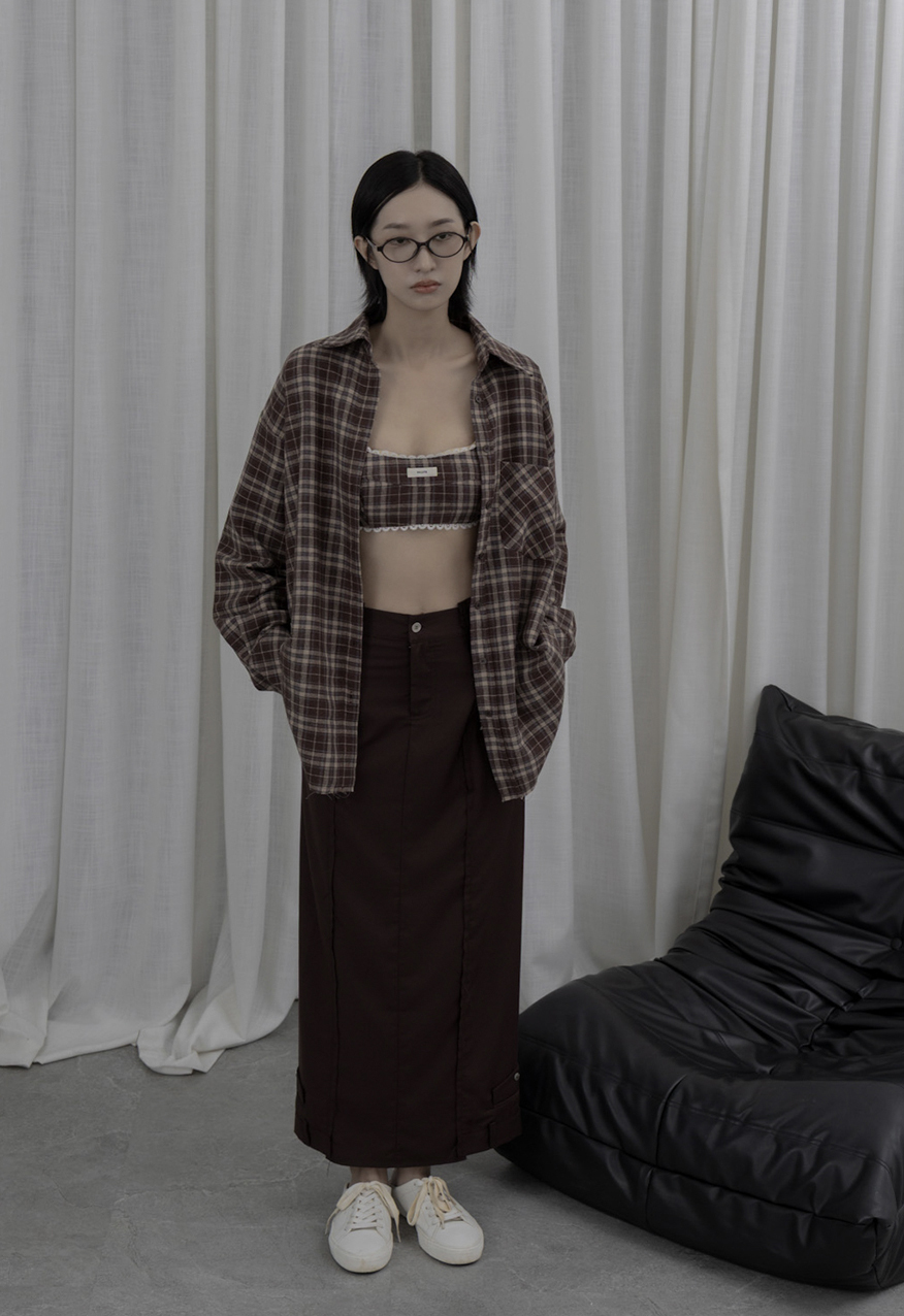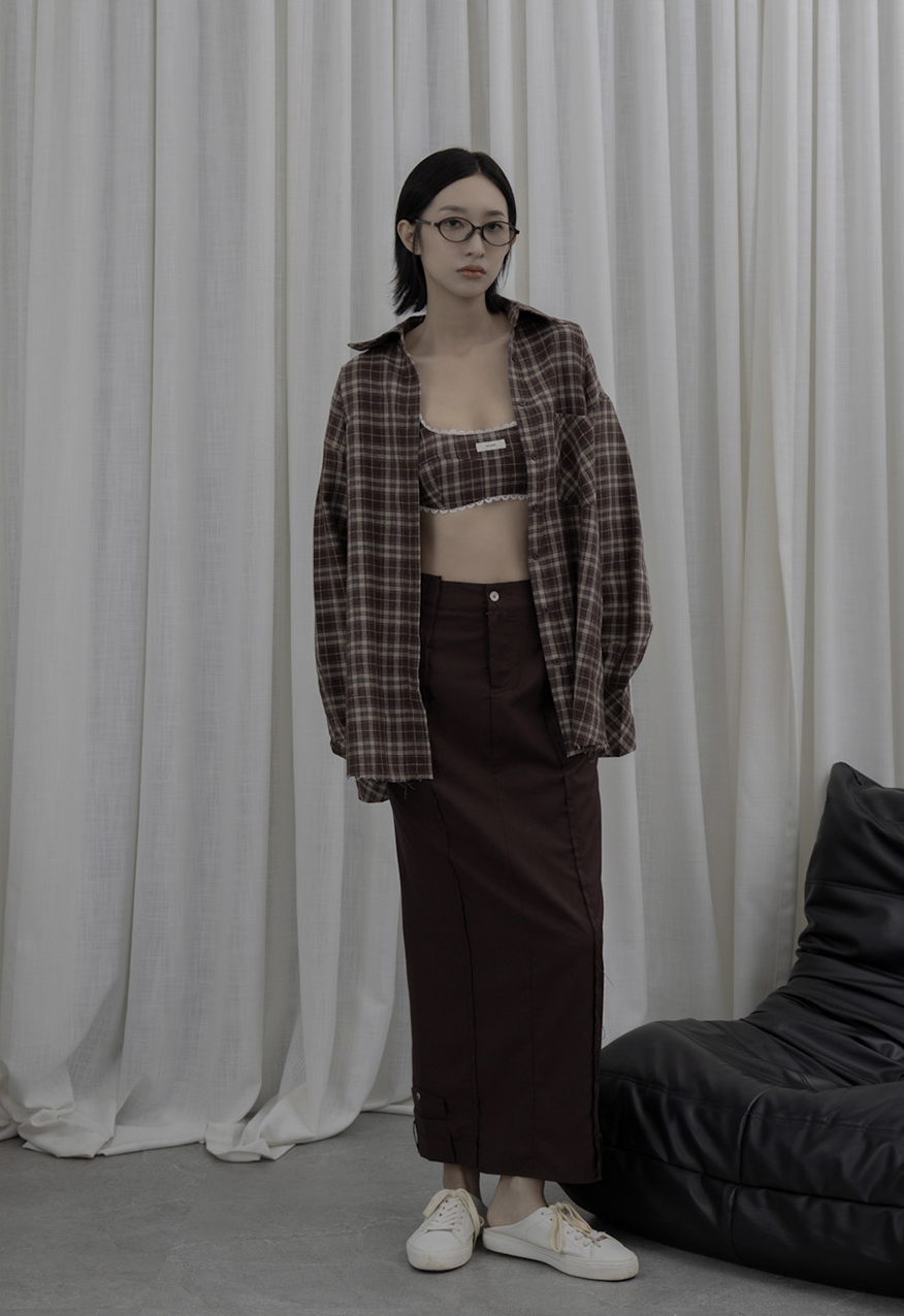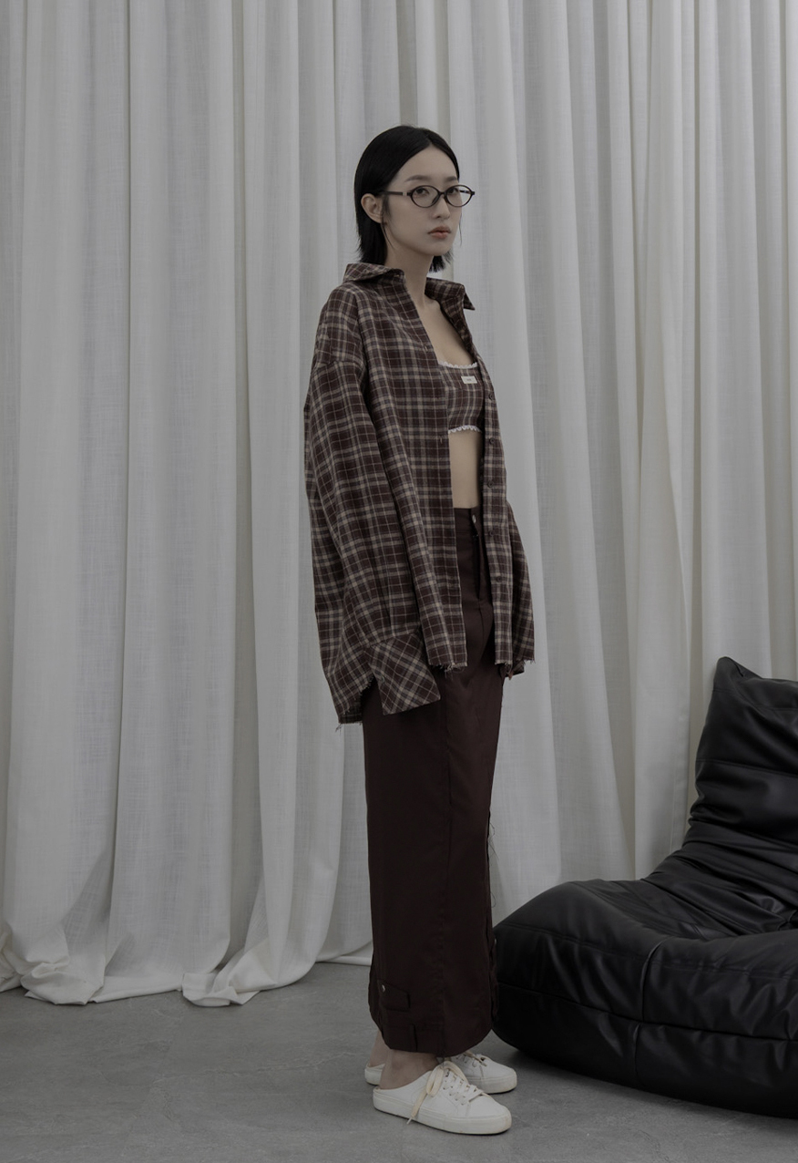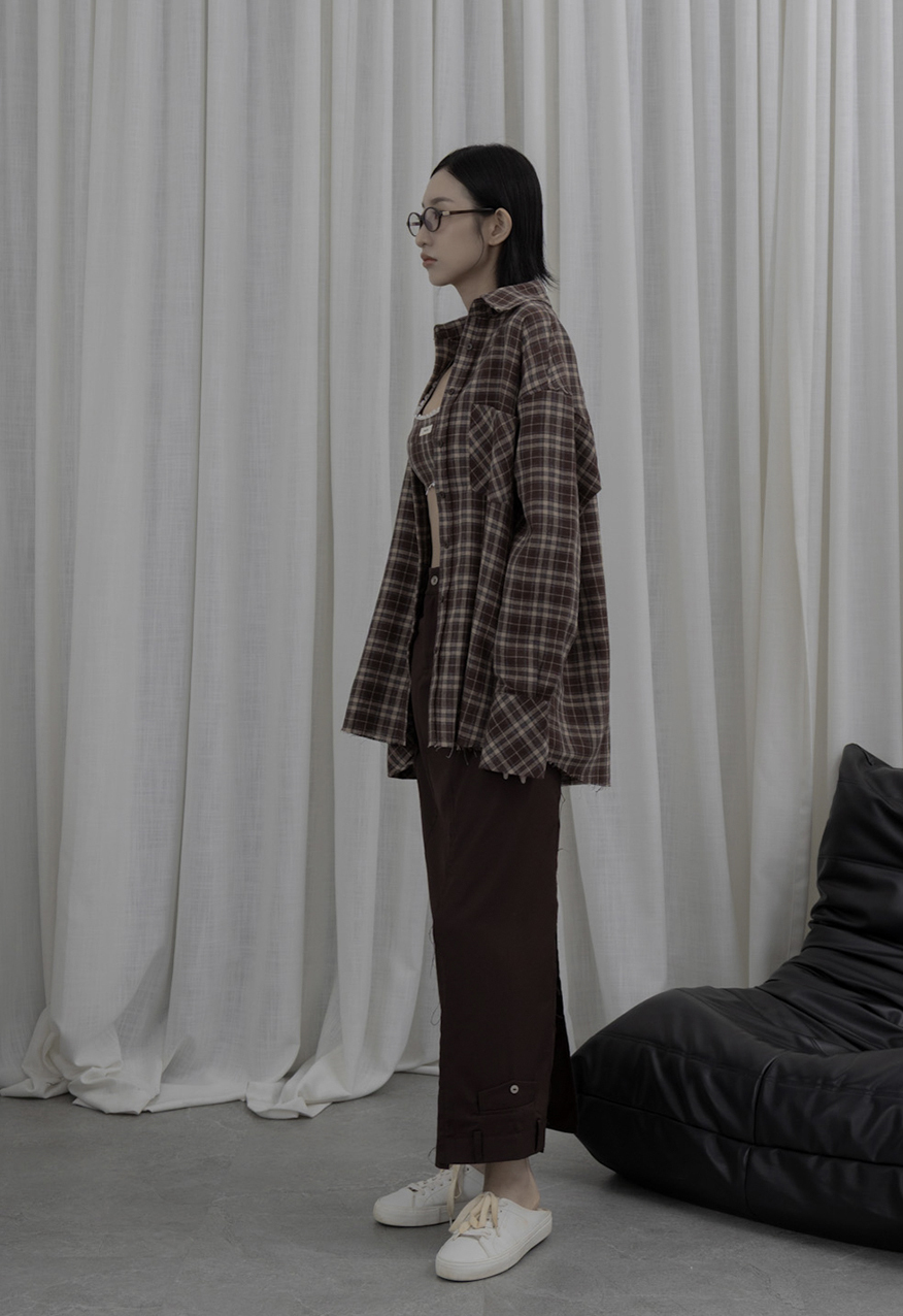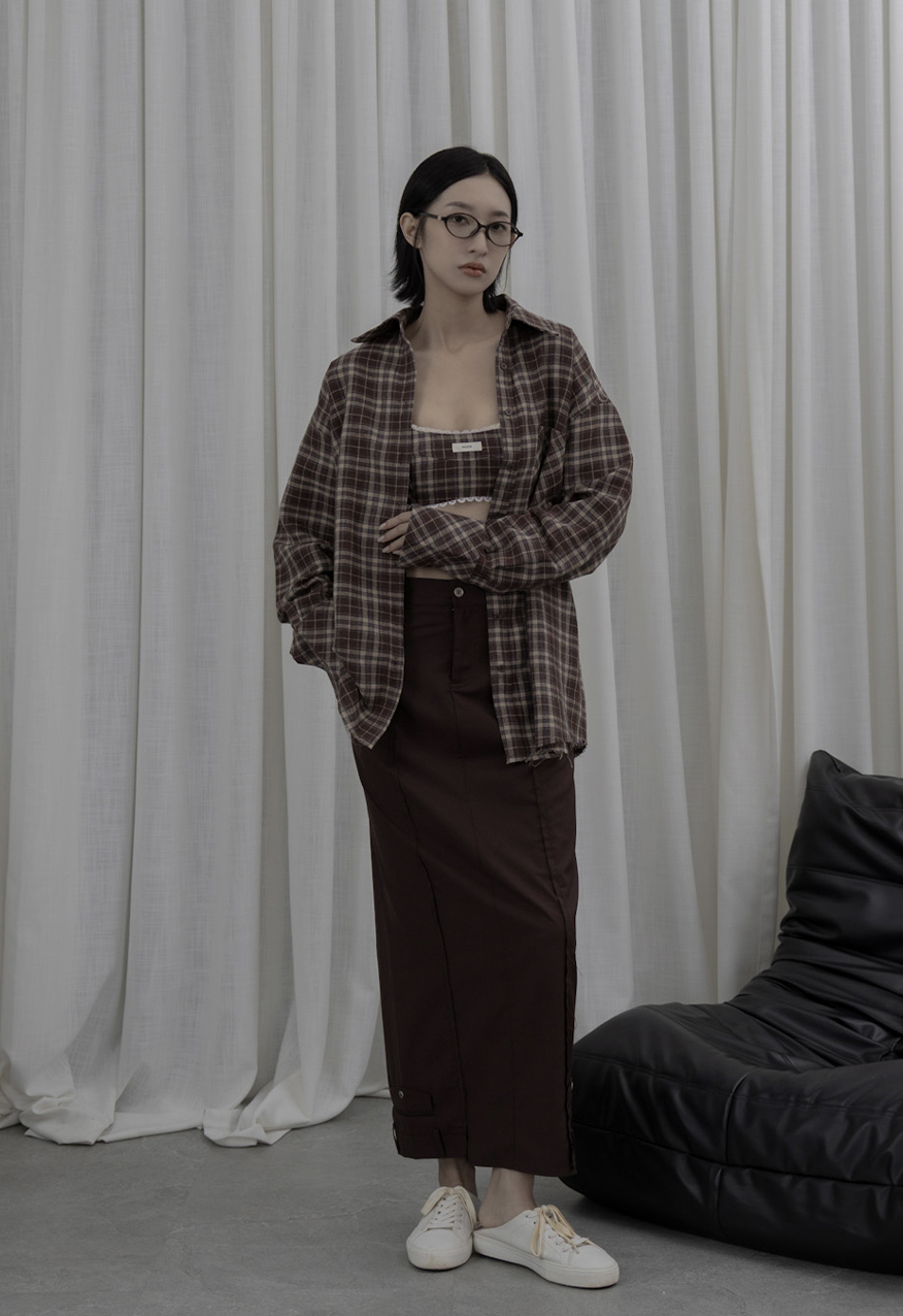 AW1039 - 做舊烤糖格紋襯衫套裝