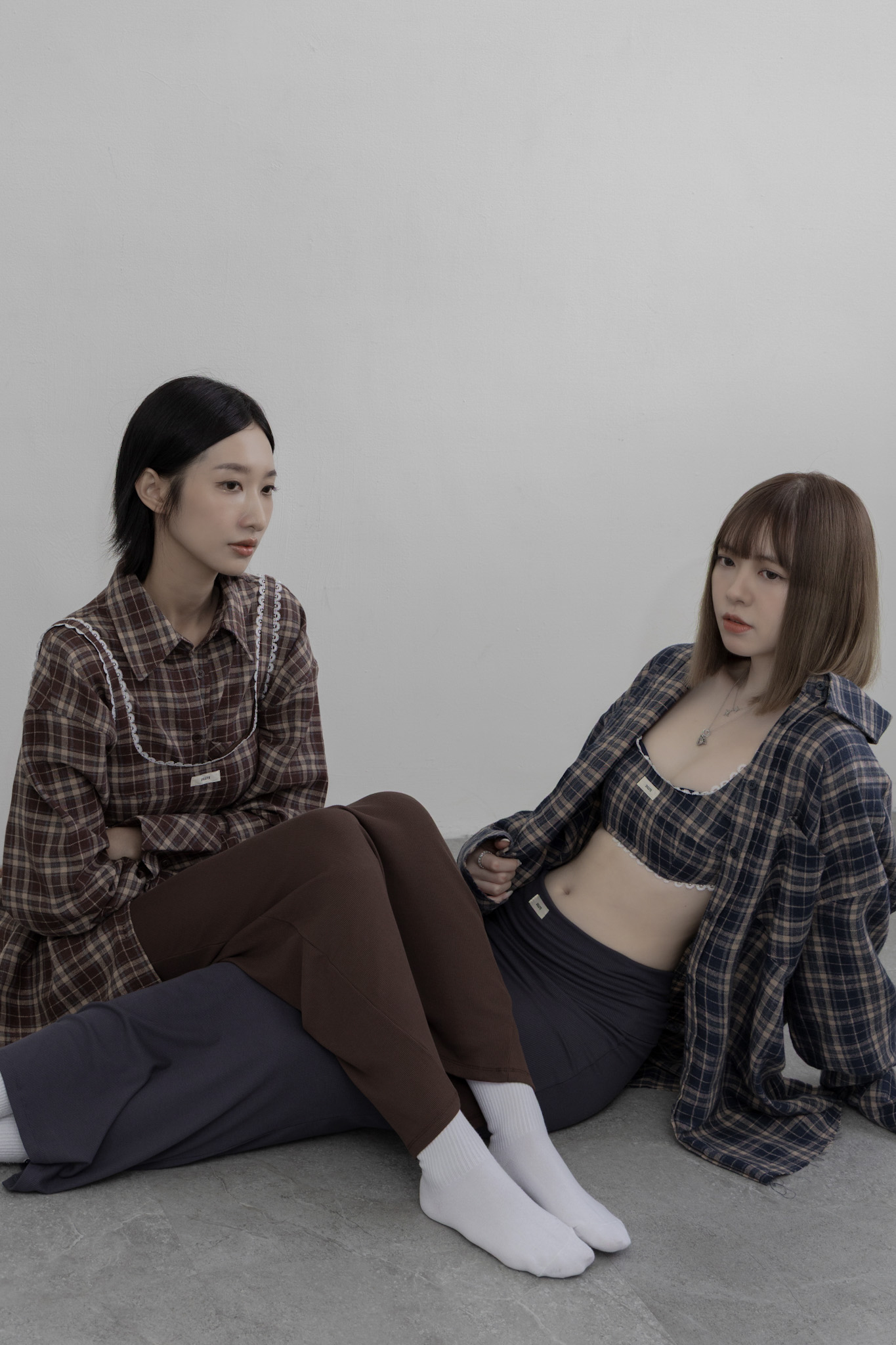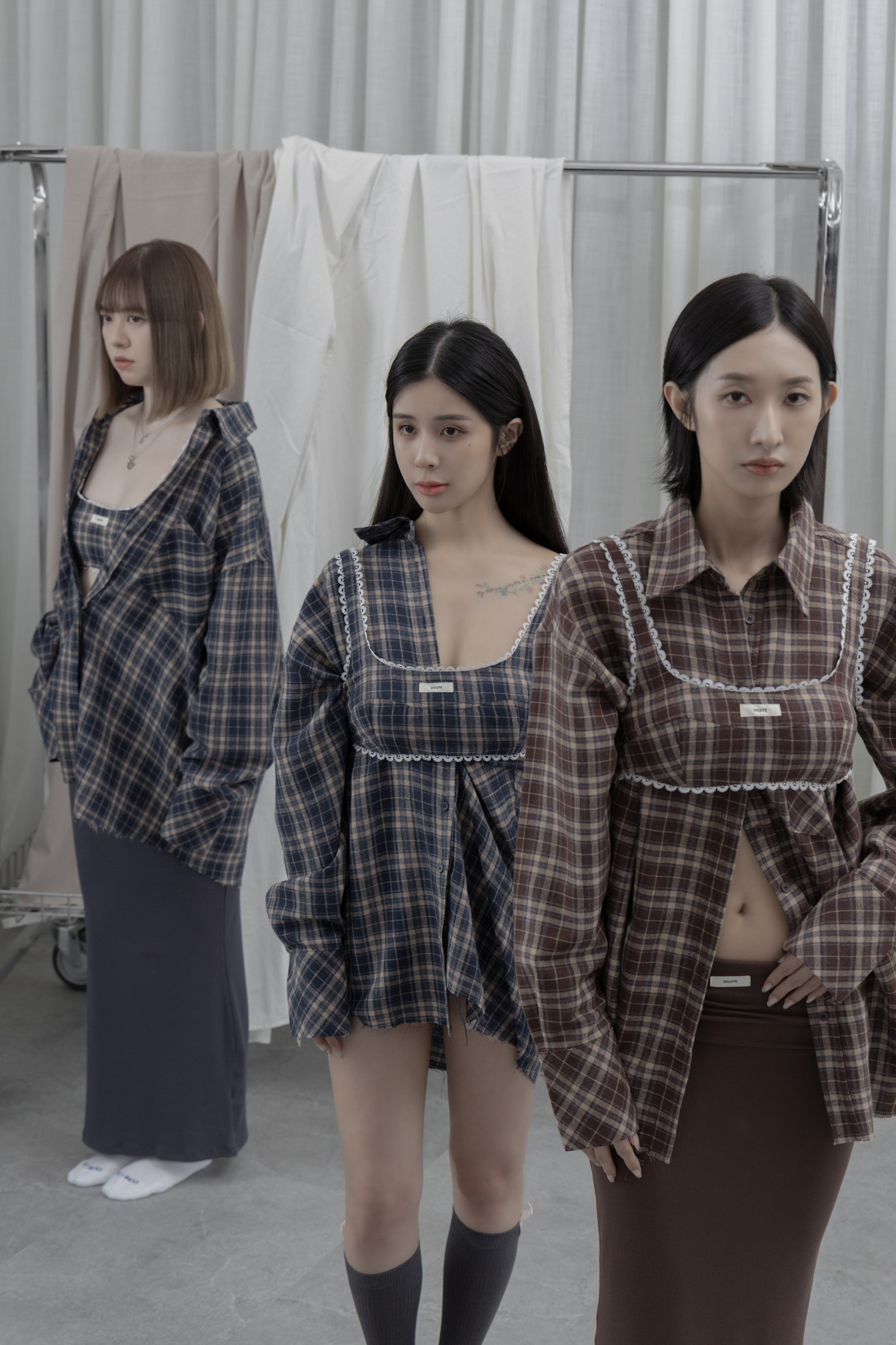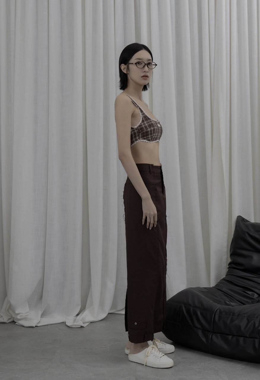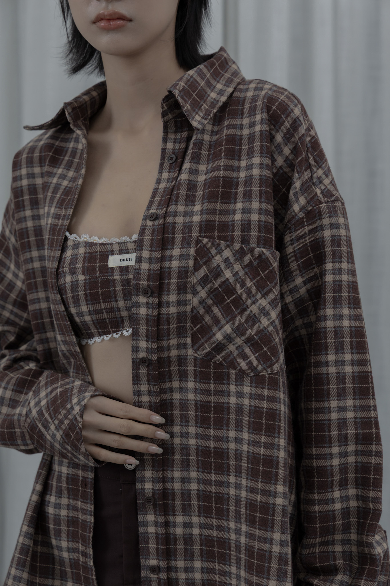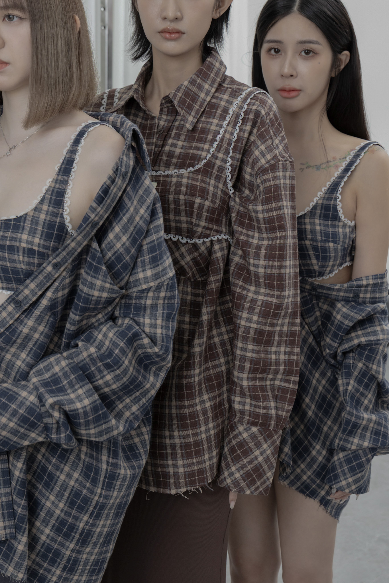 AW1039 - 做舊烤糖格紋襯衫套裝