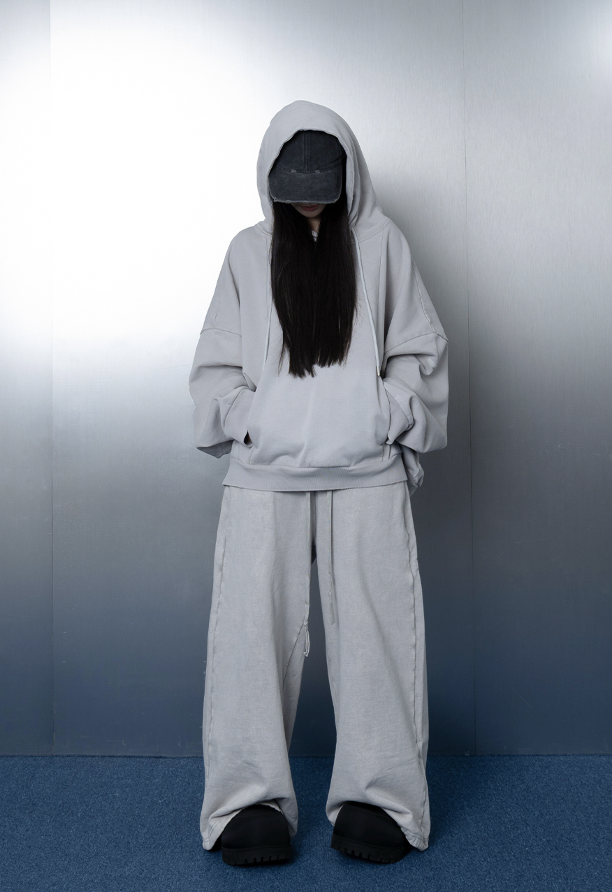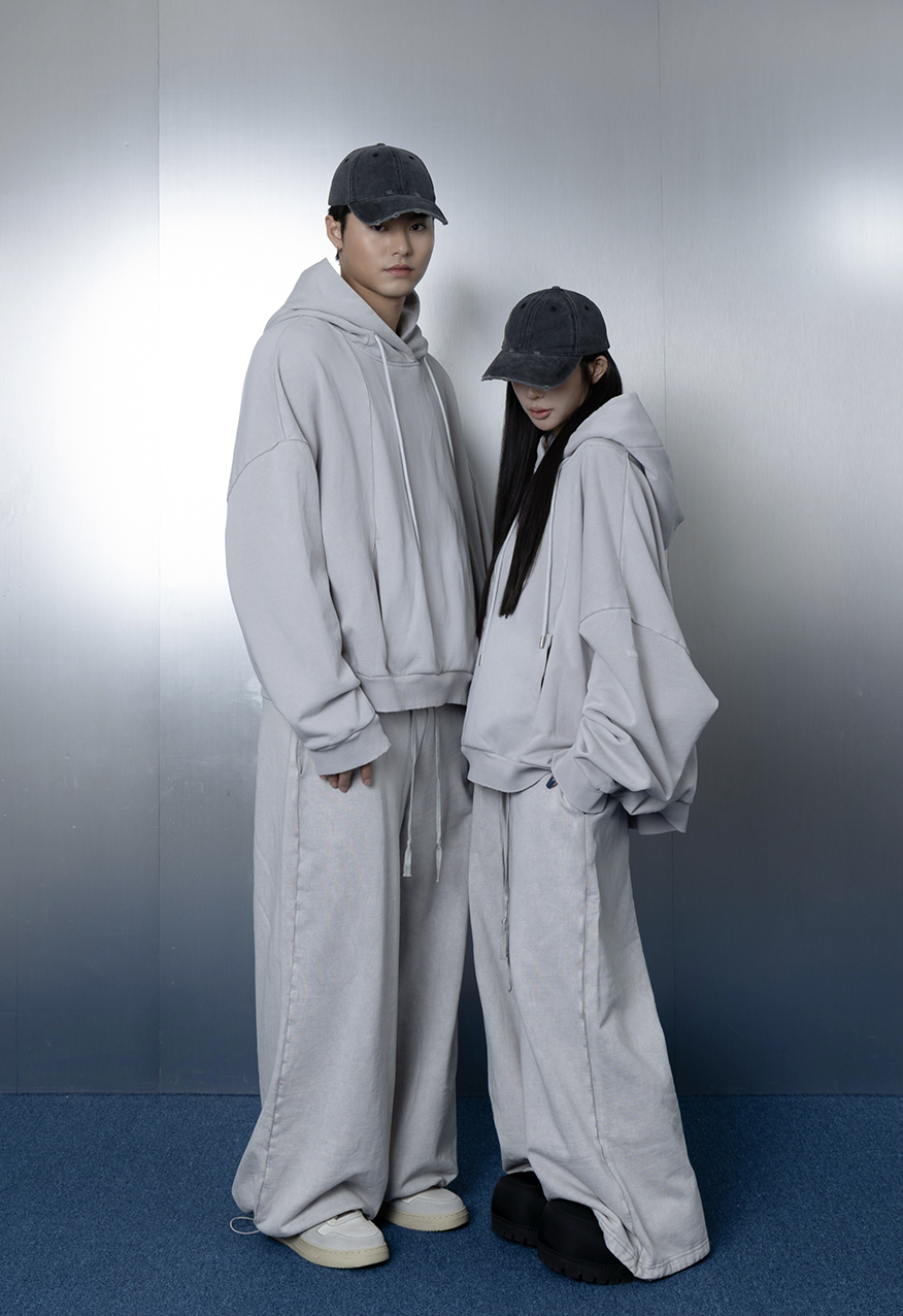 AW1175-厚磅水洗做舊灰中性寬鬆衛褲