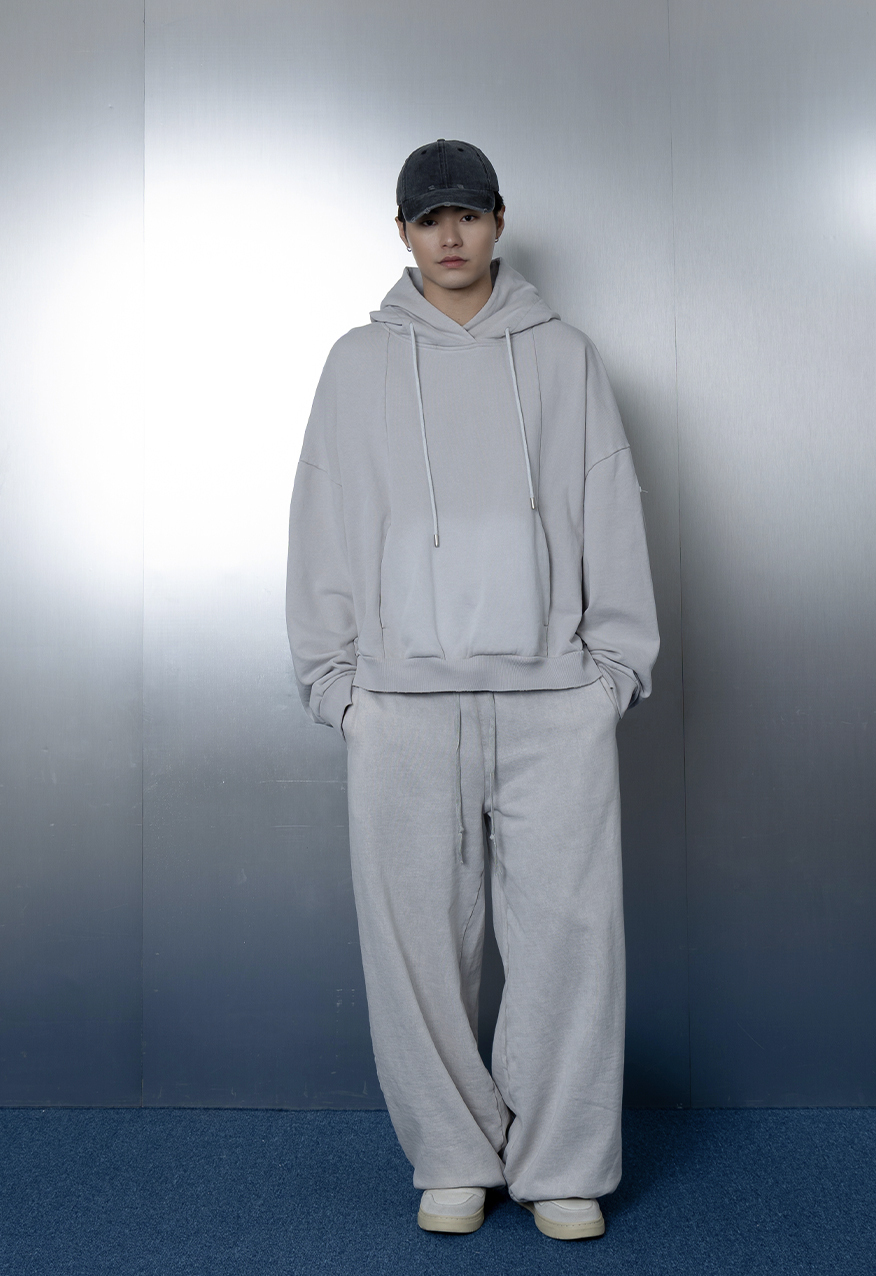 AW1110-厚磅水洗做舊灰中性連帽衛衣