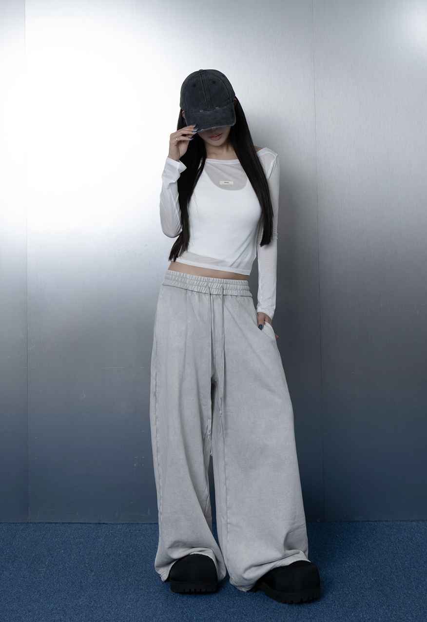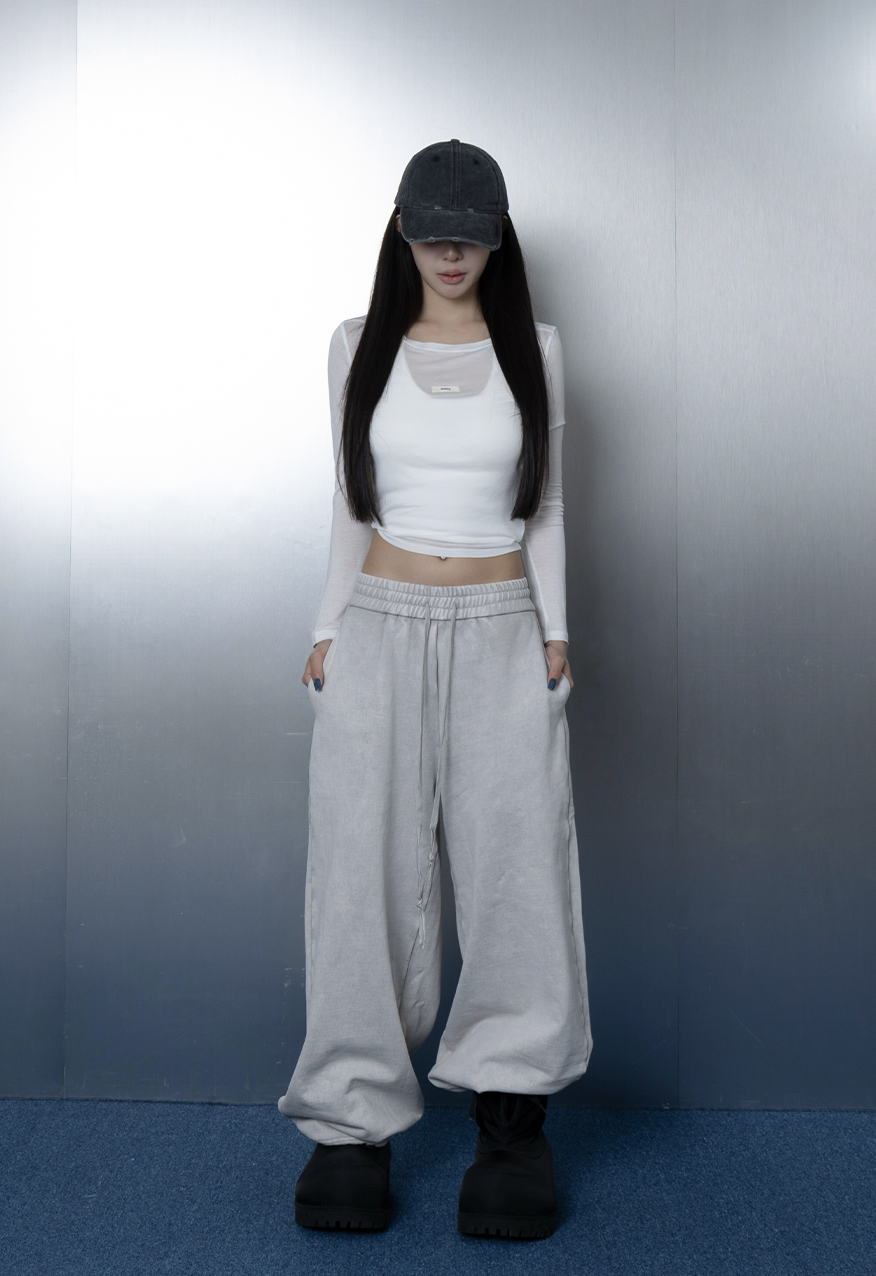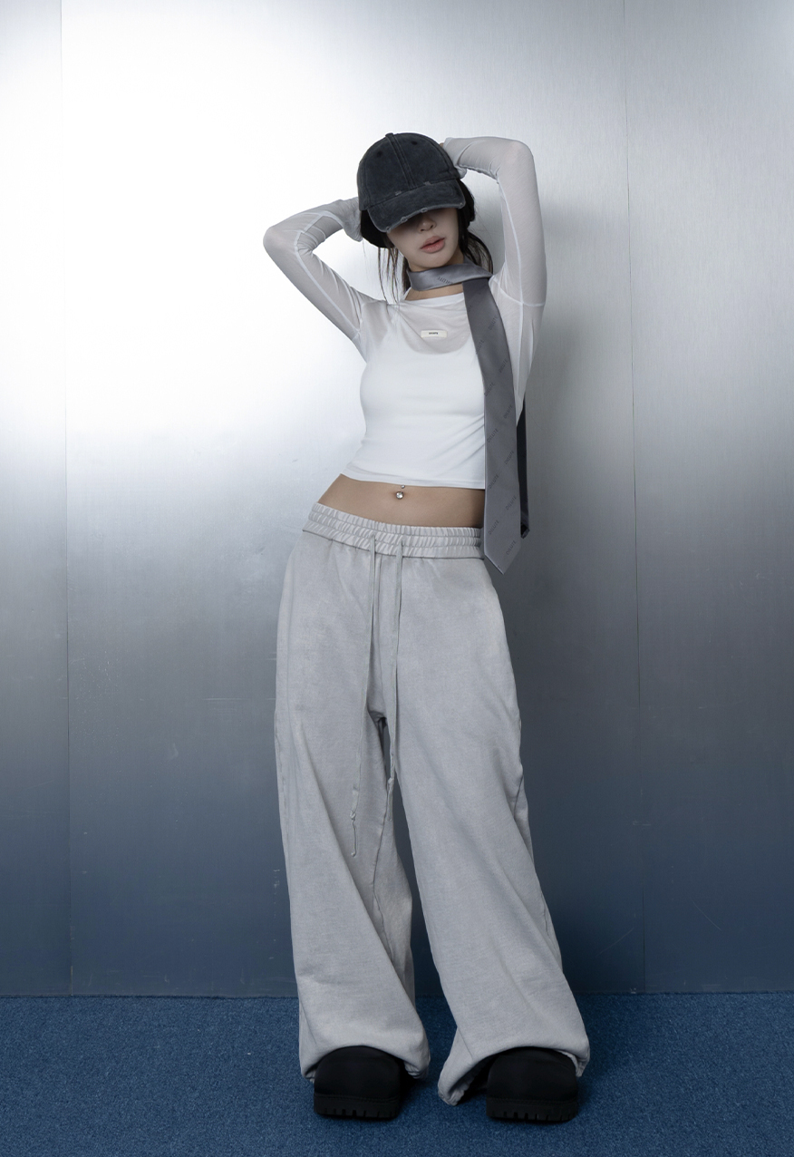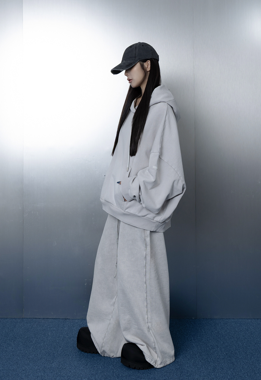 AW1175-厚磅水洗做舊灰中性寬鬆衛褲