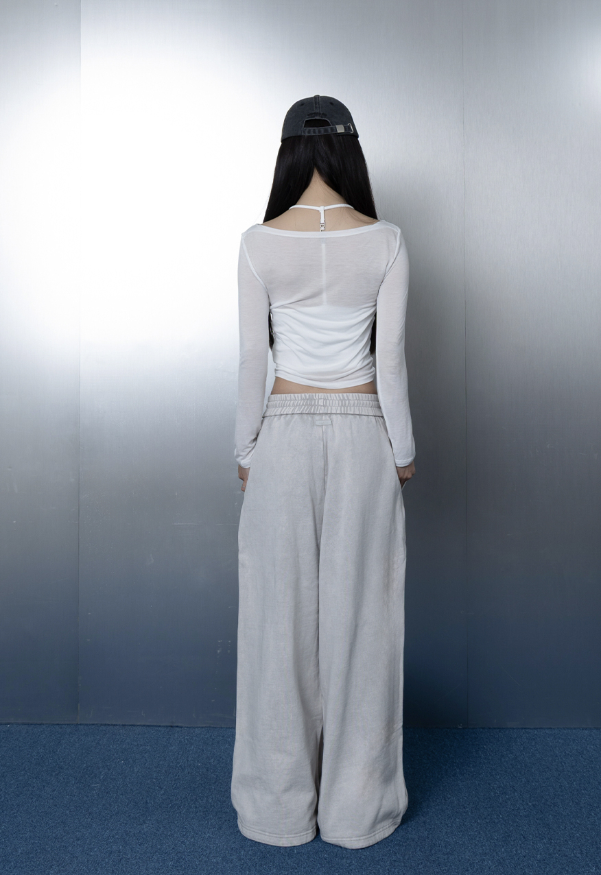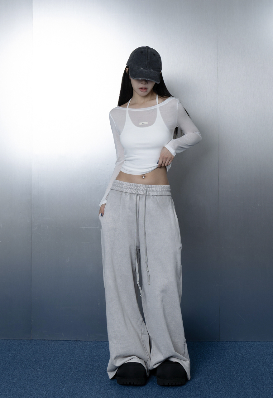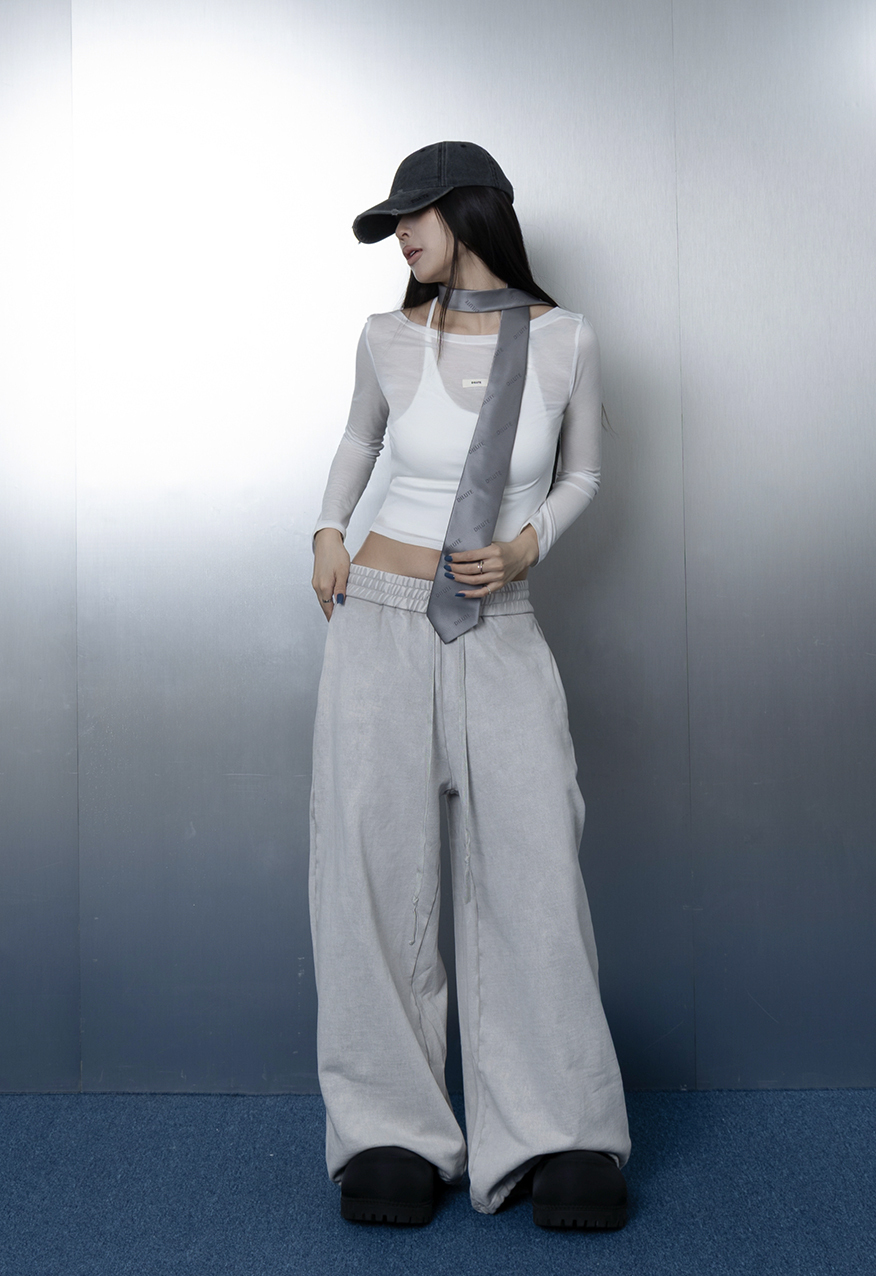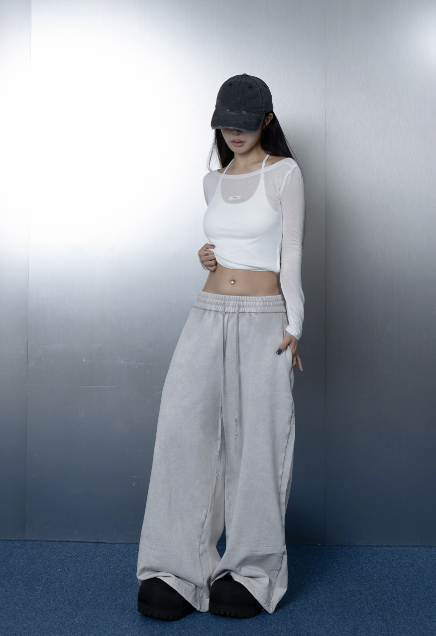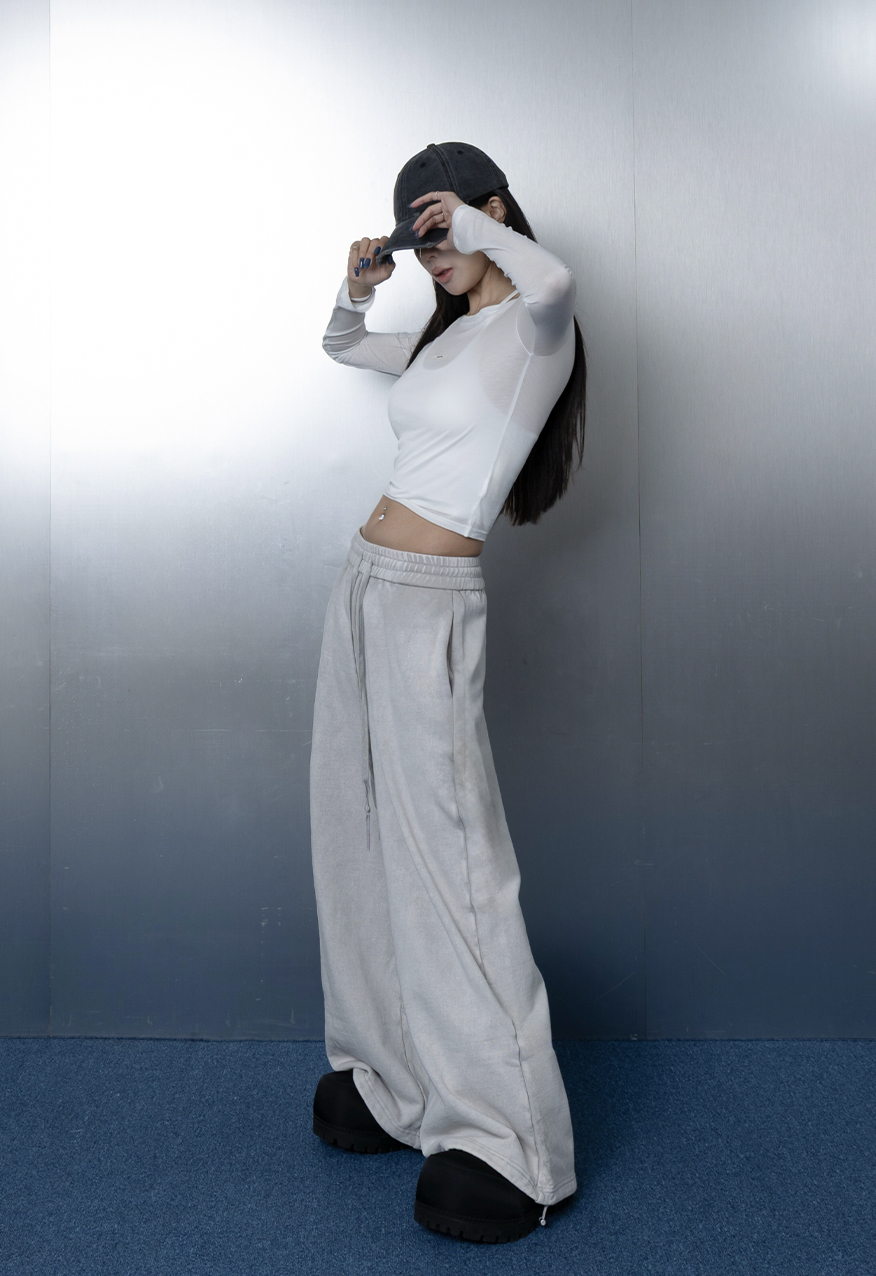 AW1175-厚磅水洗做舊灰中性寬鬆衛褲