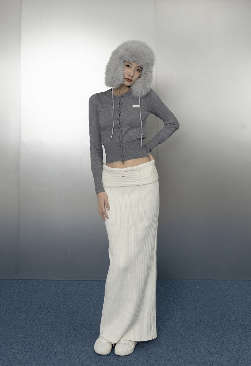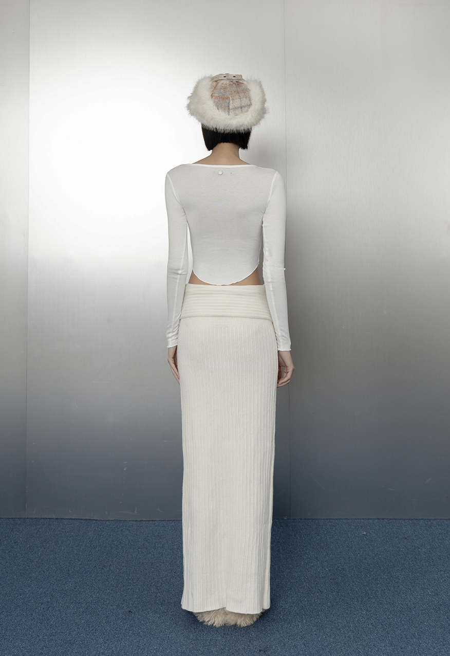 AW1206-Cloud White Soft Thick Knit Maxi Skirt