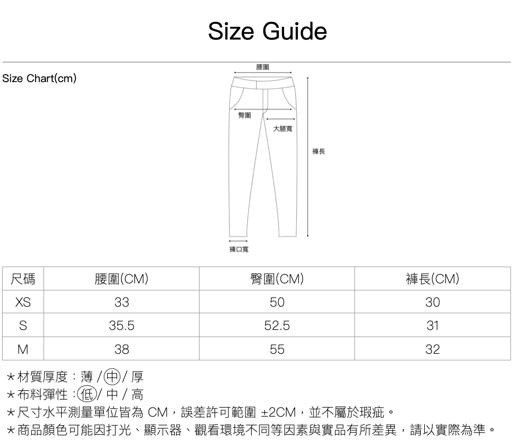 尺寸|XS \ S \ M