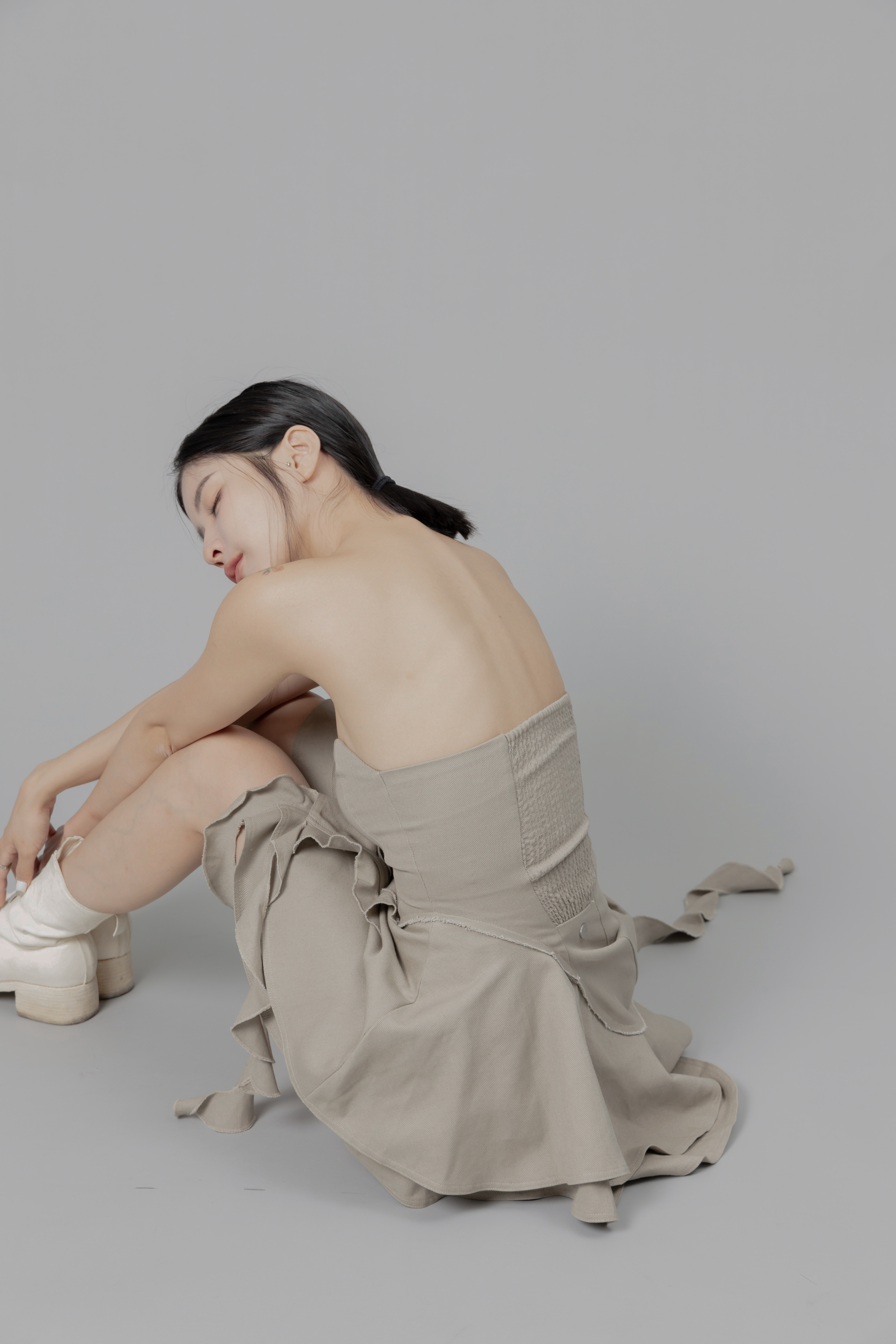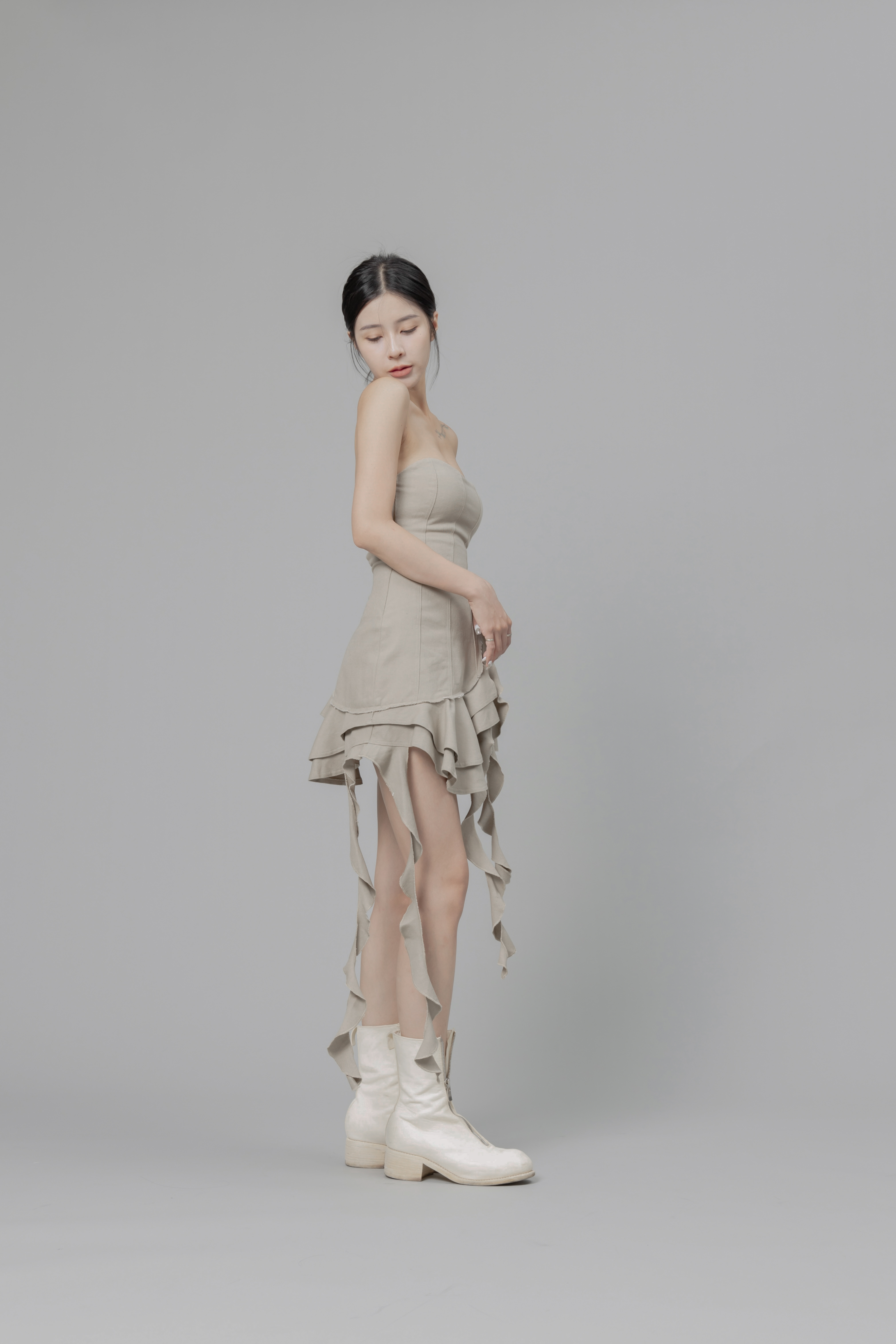 獨家設計師款、立體波浪裙擺裁片、手工滾邊、剪接線修飾身材