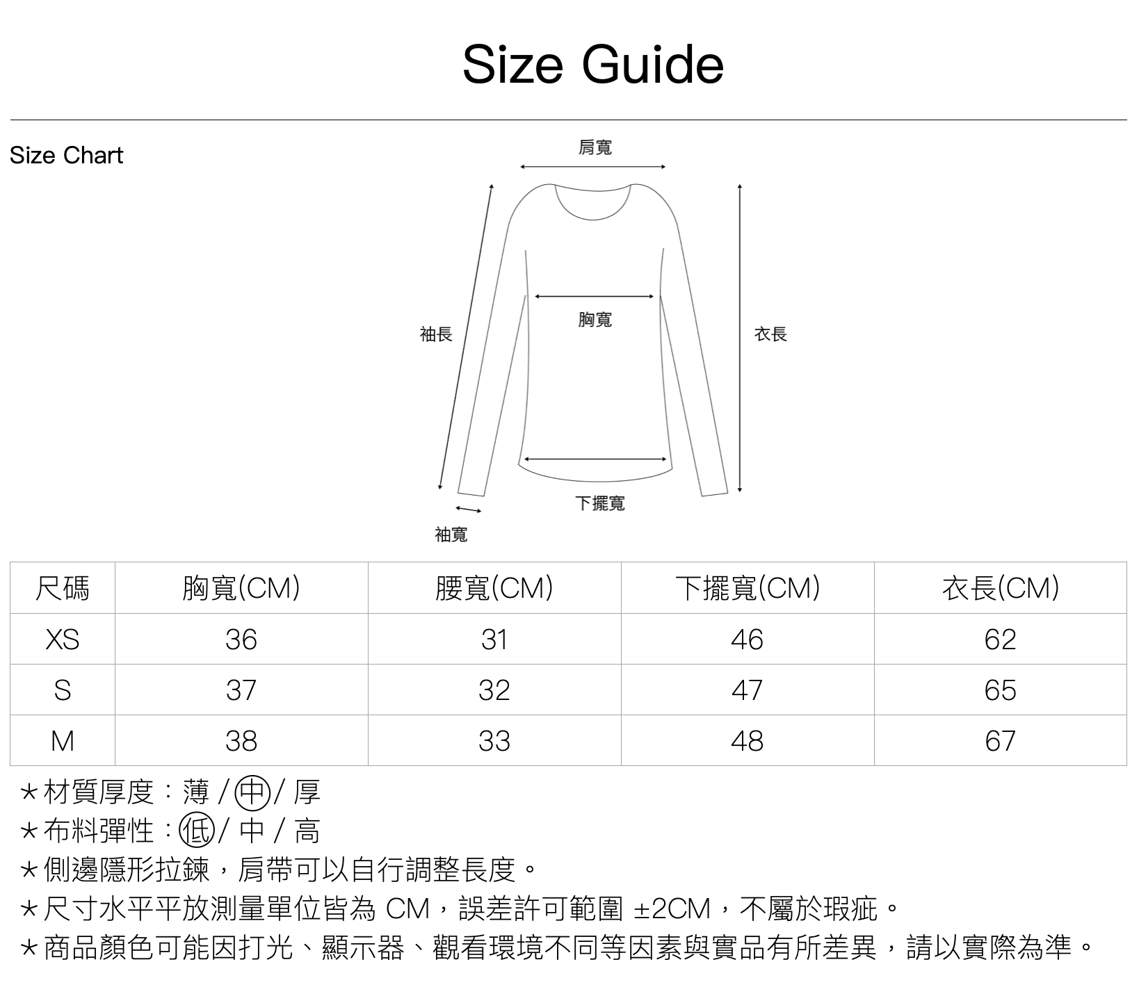 尺寸| XS \ S \ M