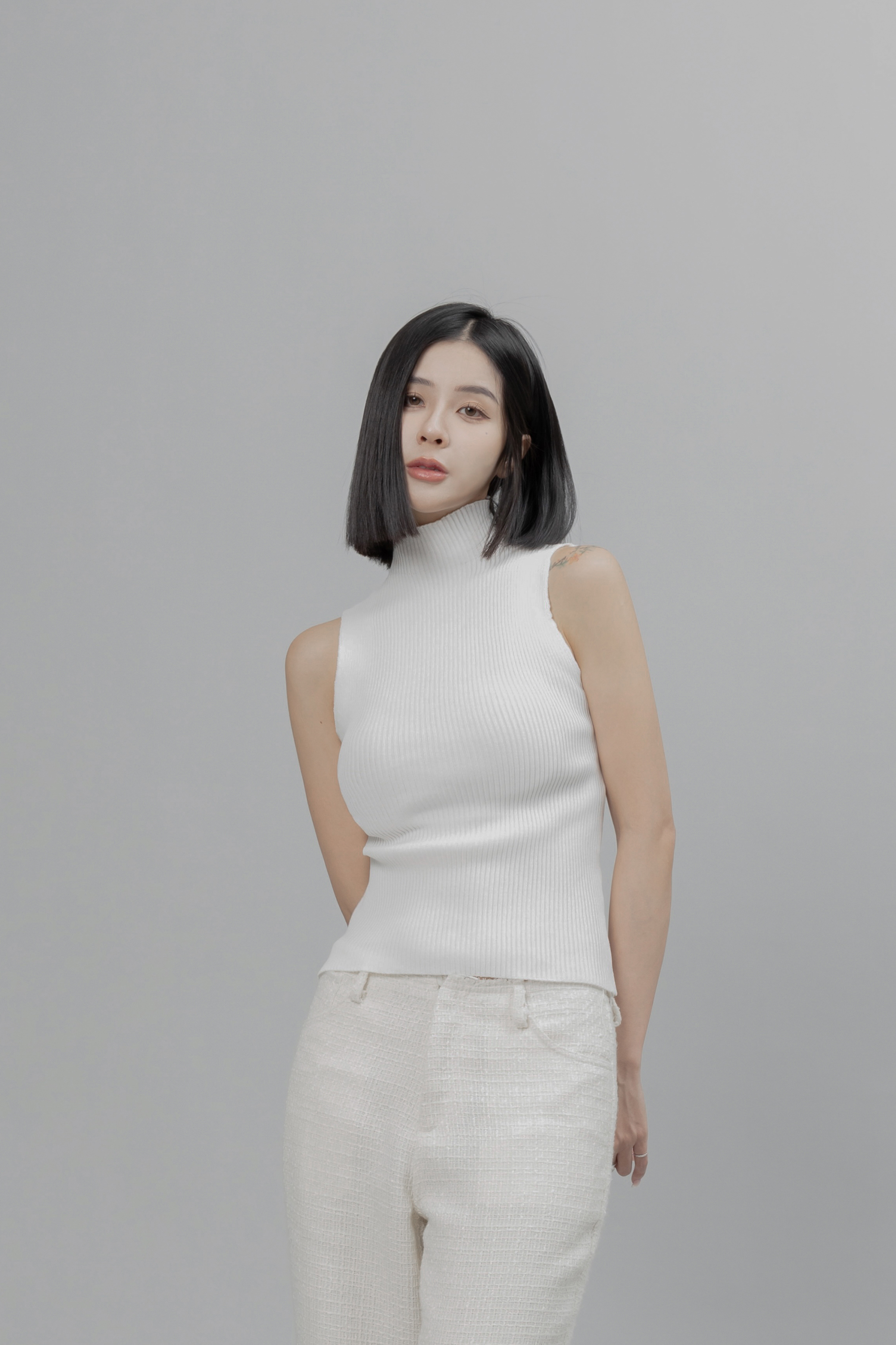 Engima - 白色高領削肩背心