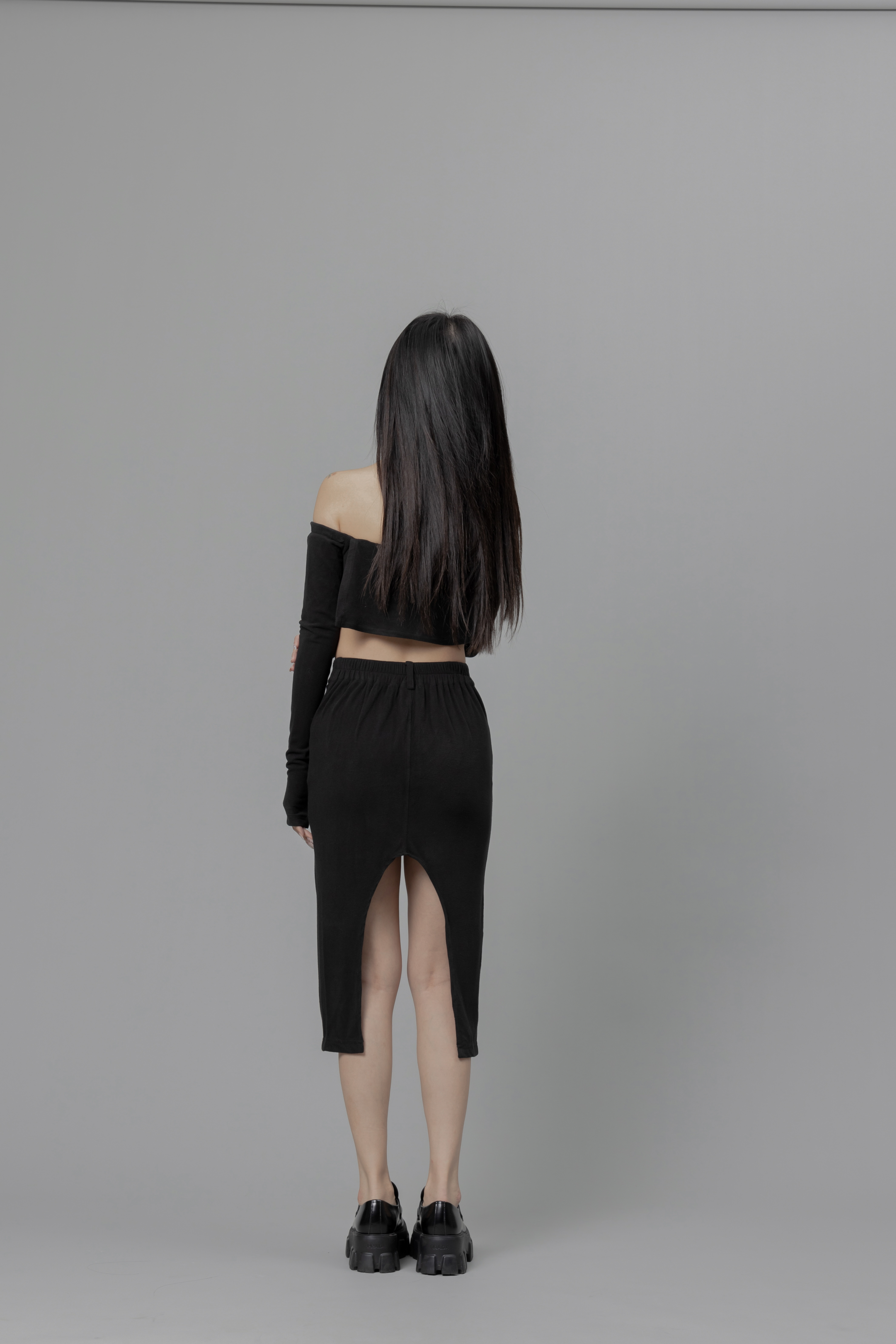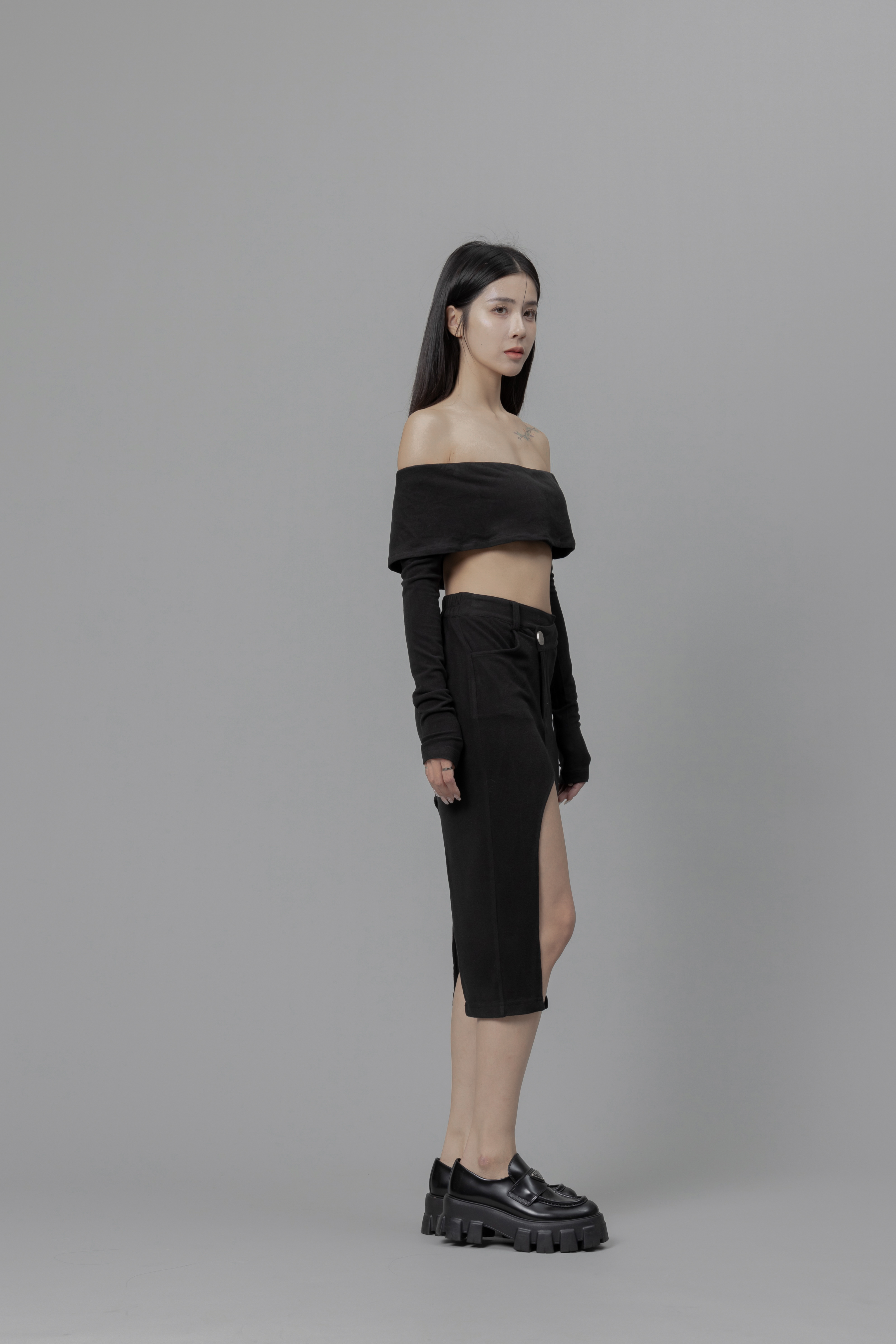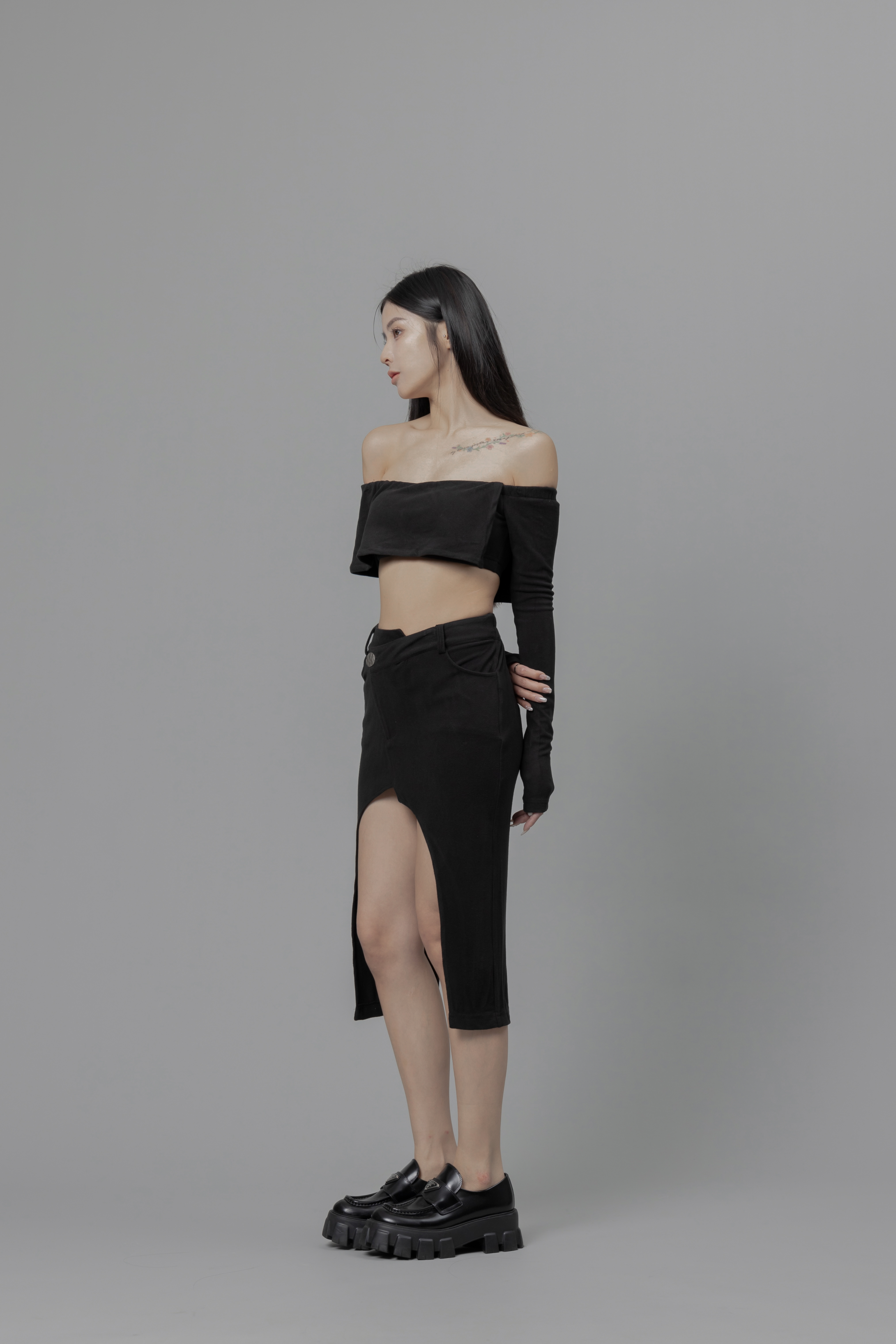 側邊線條感修飾、腰頭不規則造型、親膚舒適