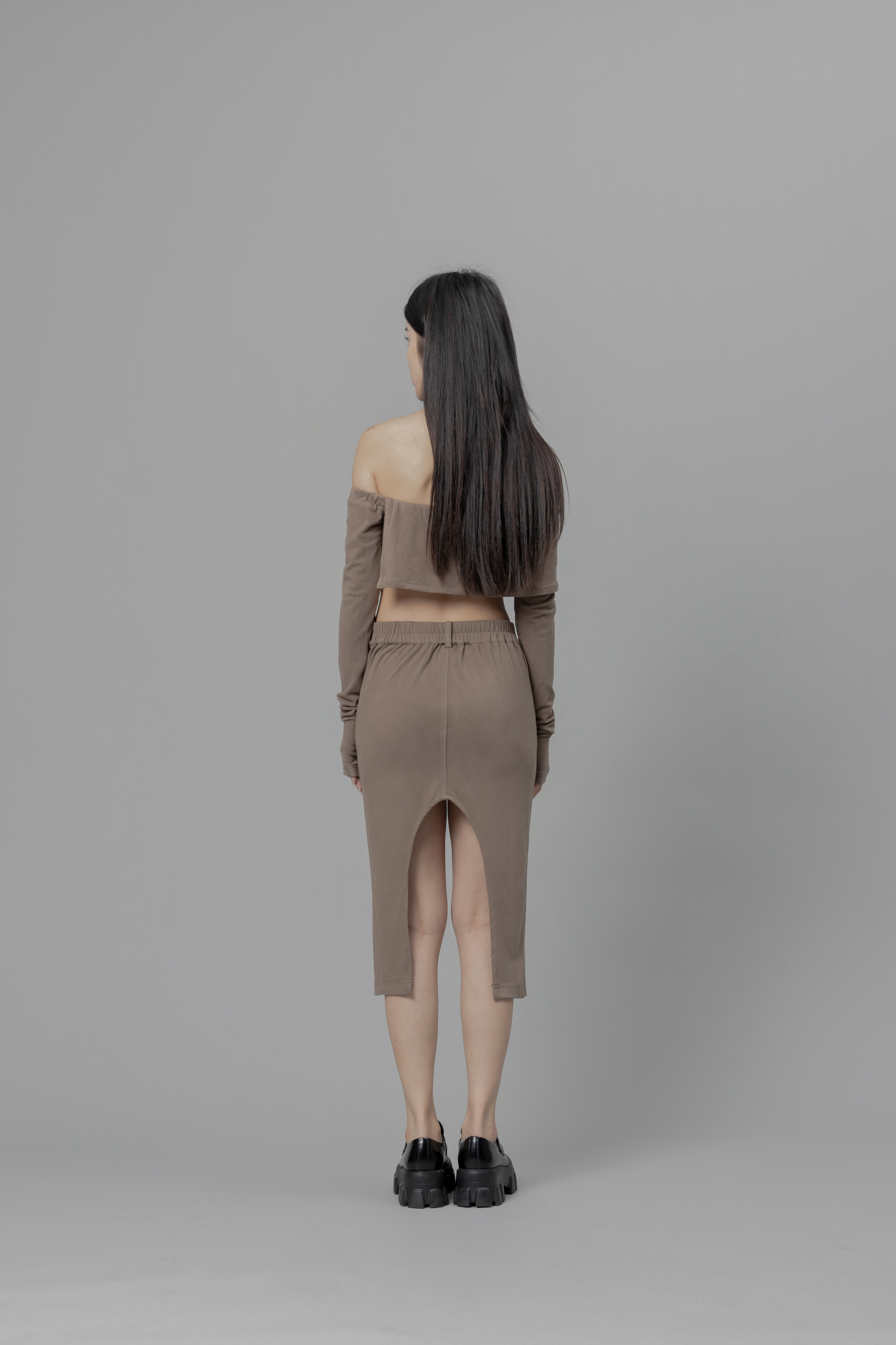 側邊線條感修飾、腰頭不規則造型、親膚舒適