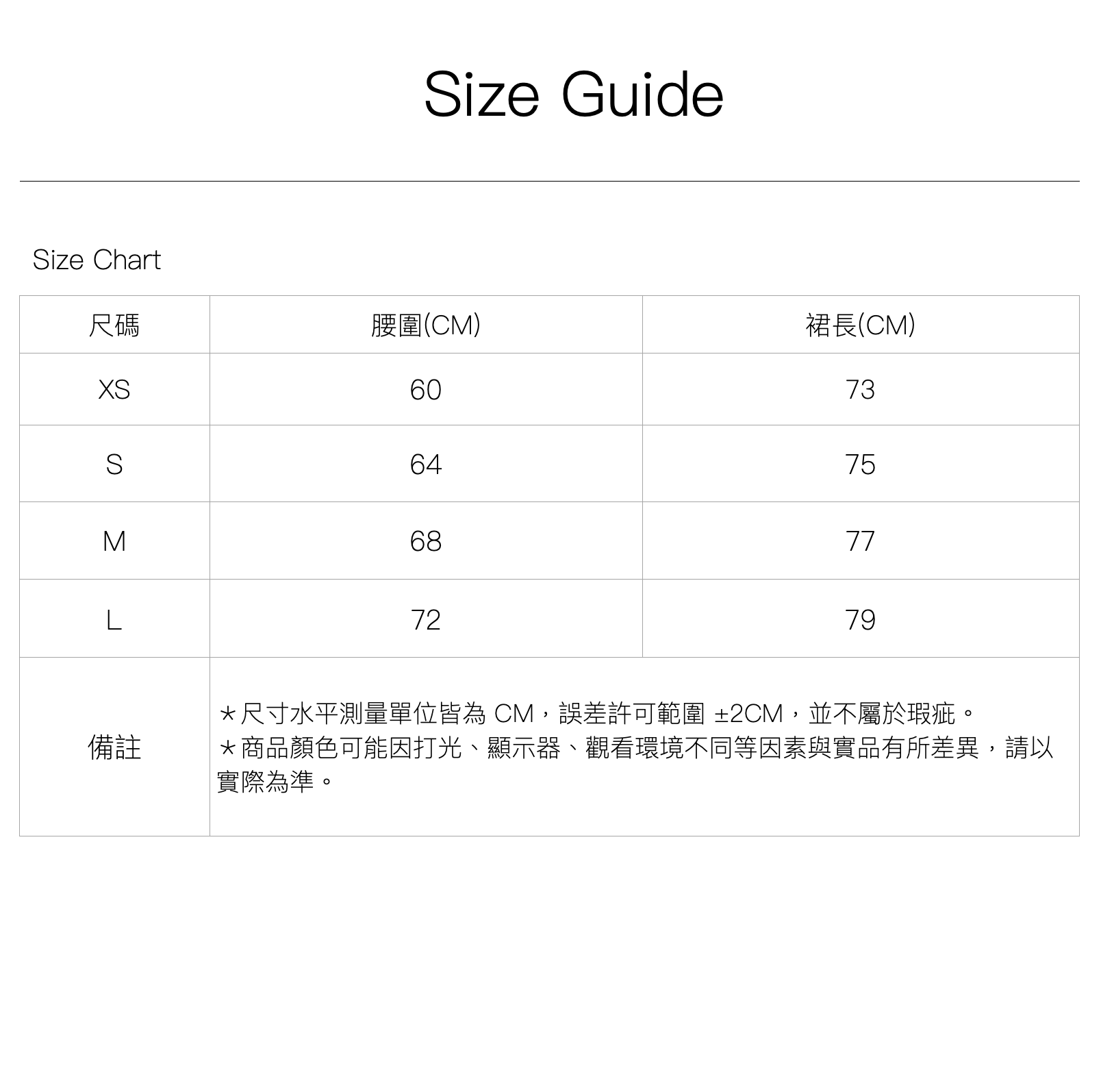 尺寸|XS \ S \ M \ L