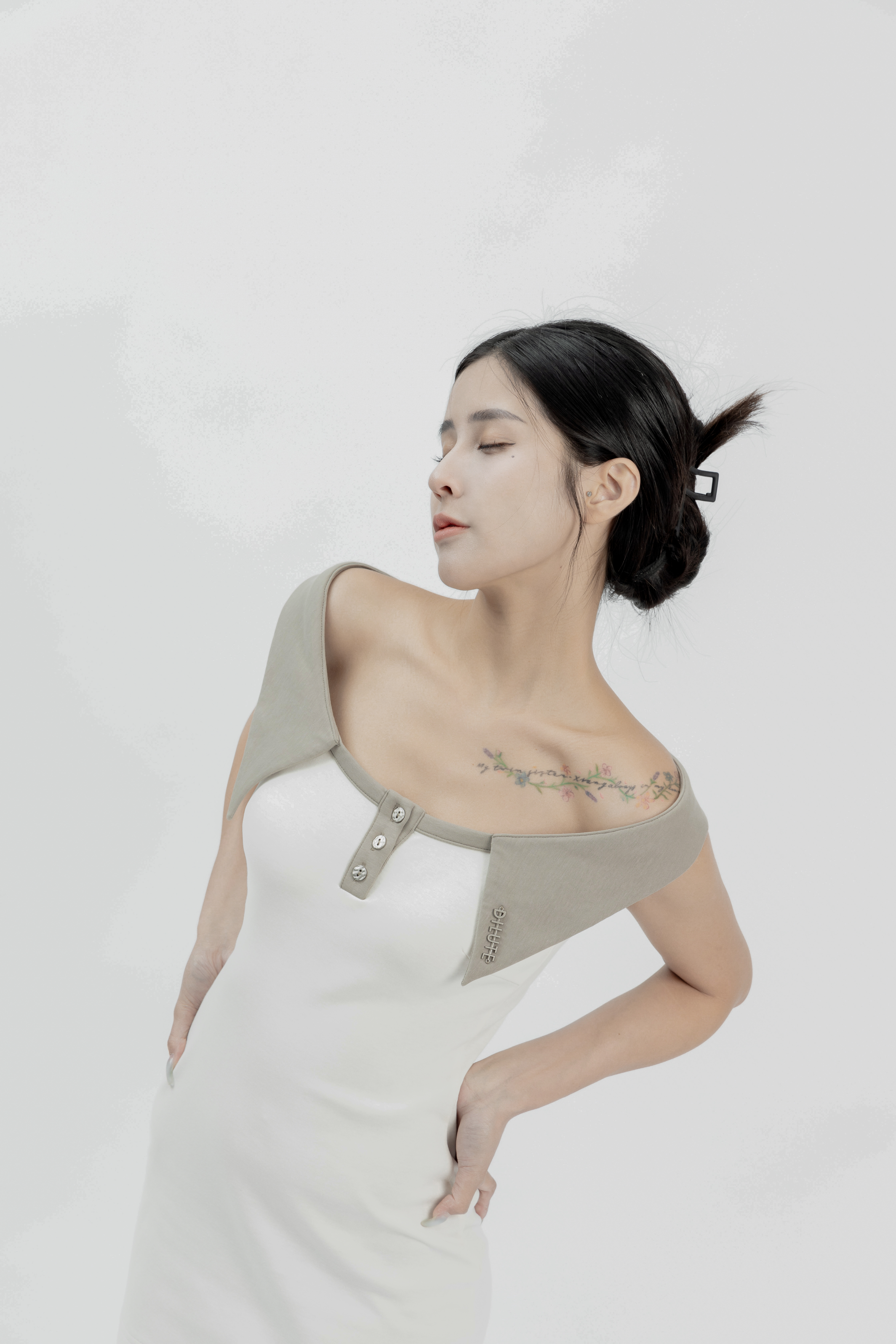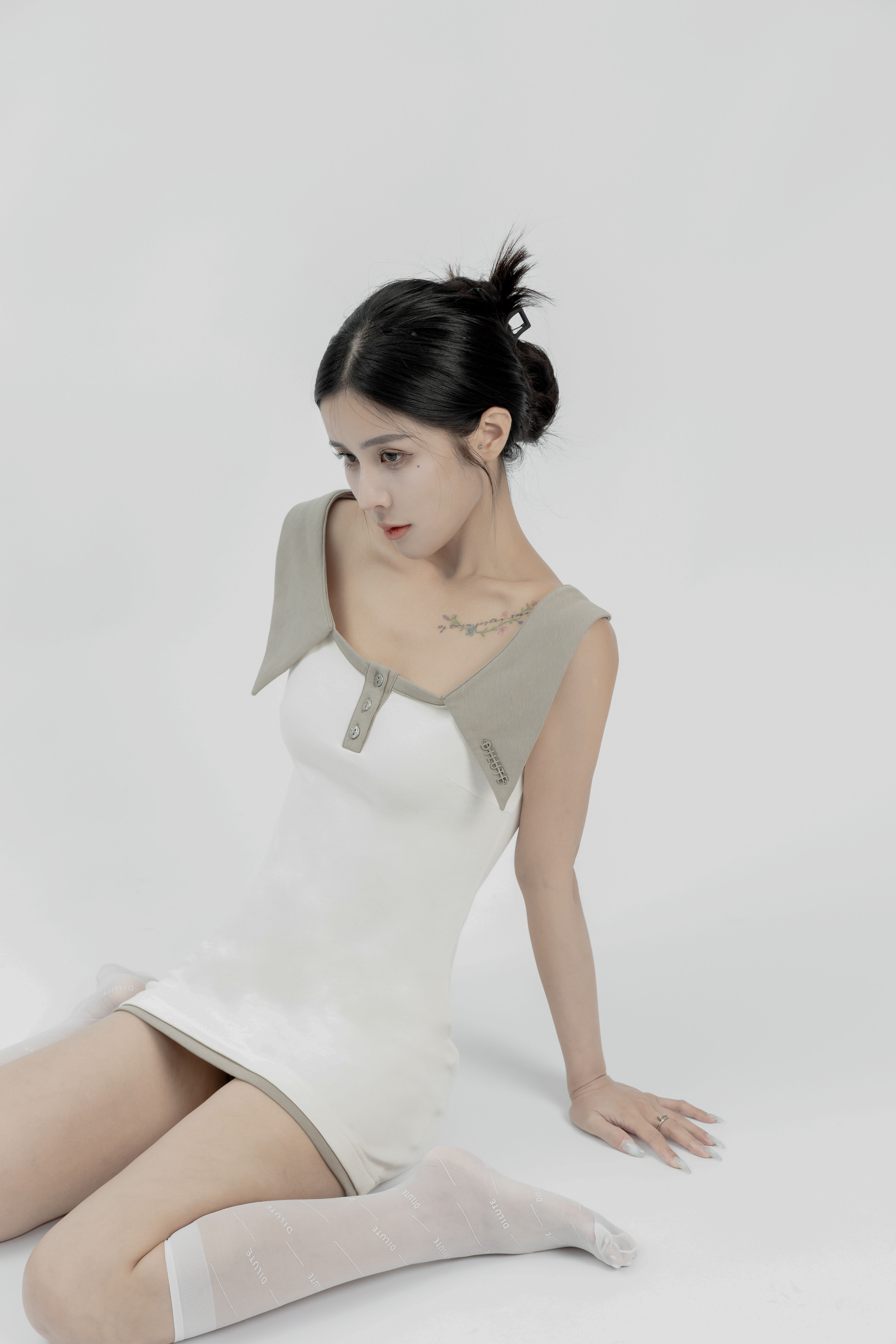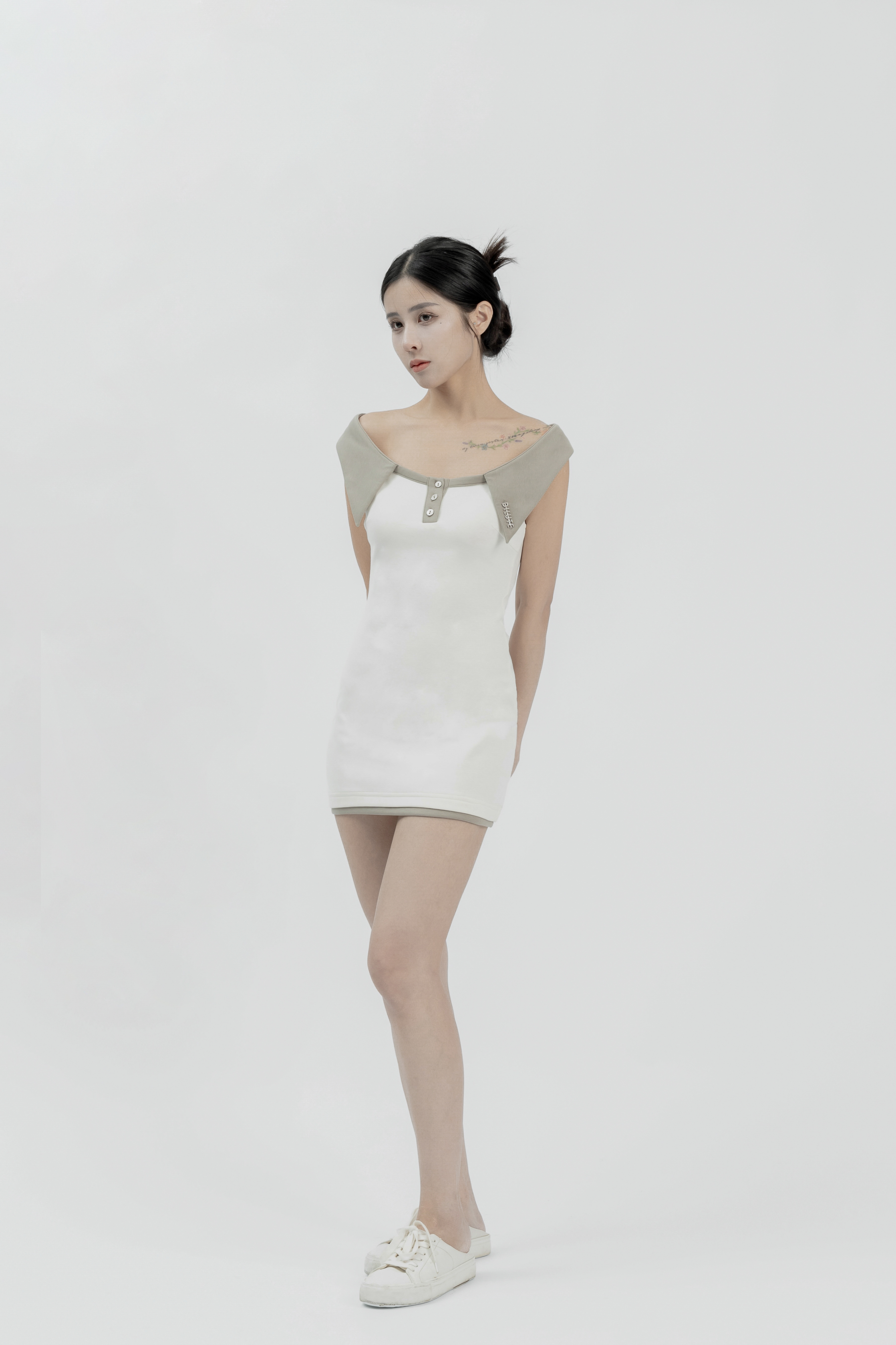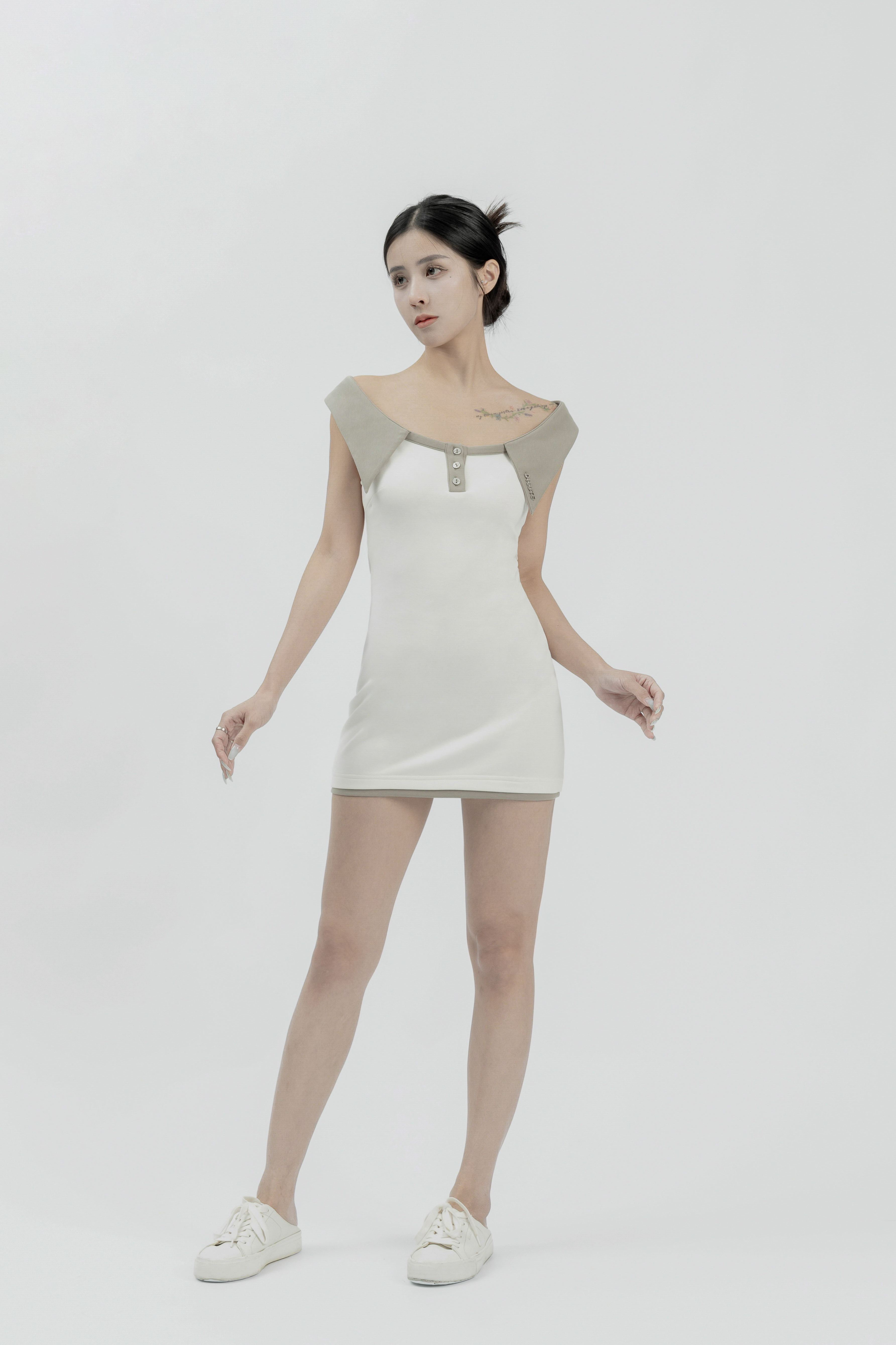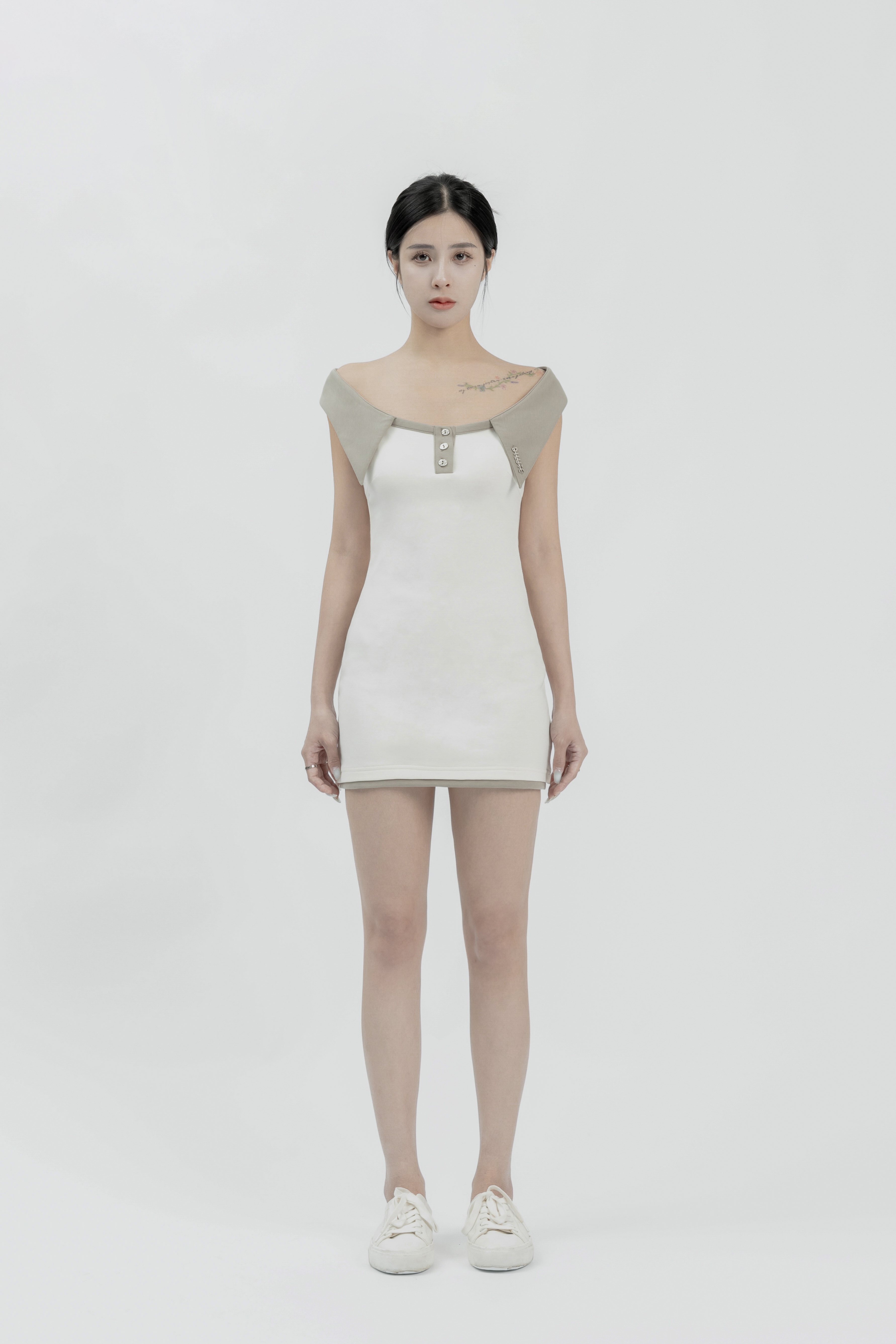 Lily - 白色Polo領短版洋裝
