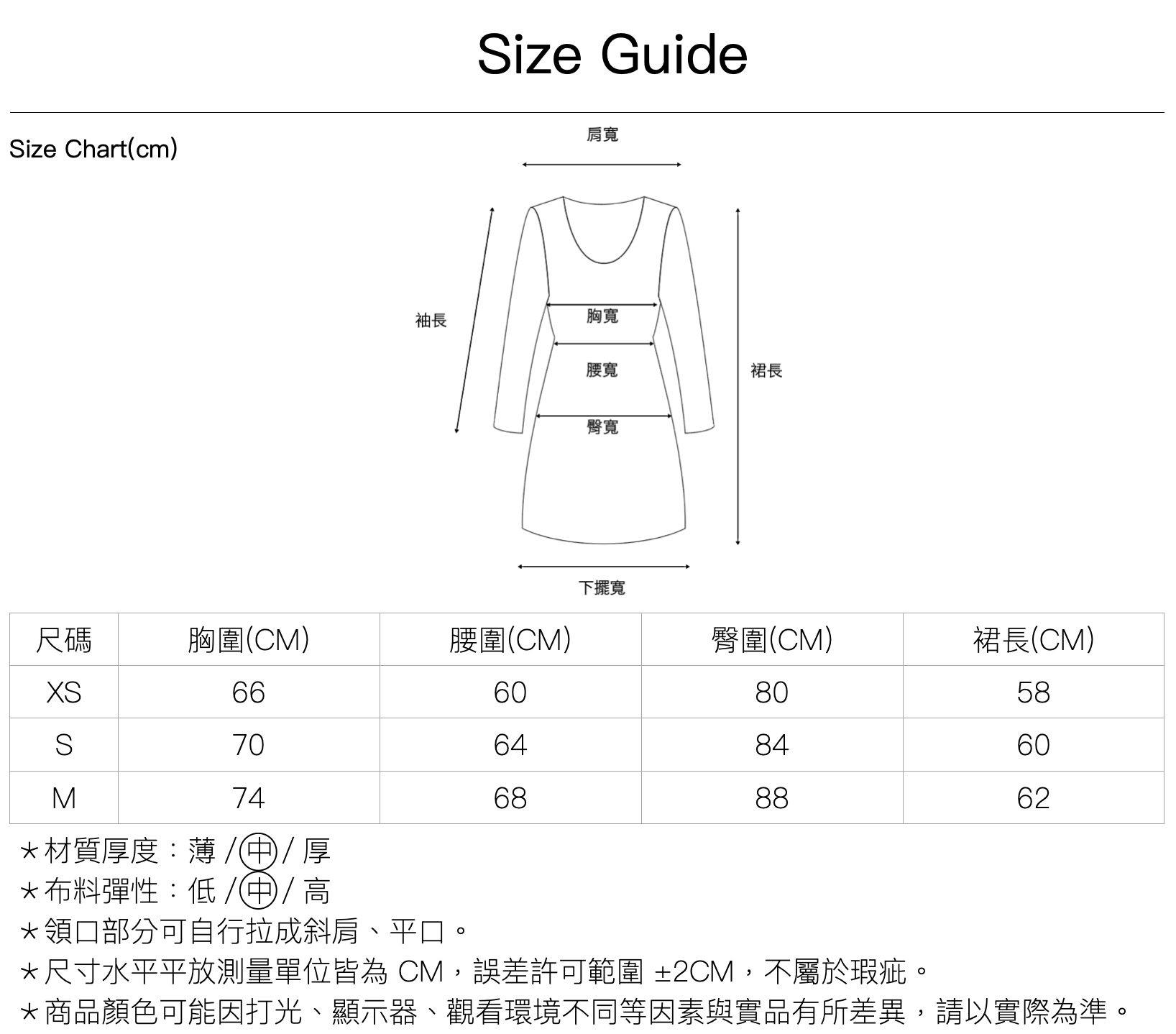 尺寸|XS \ S \ M