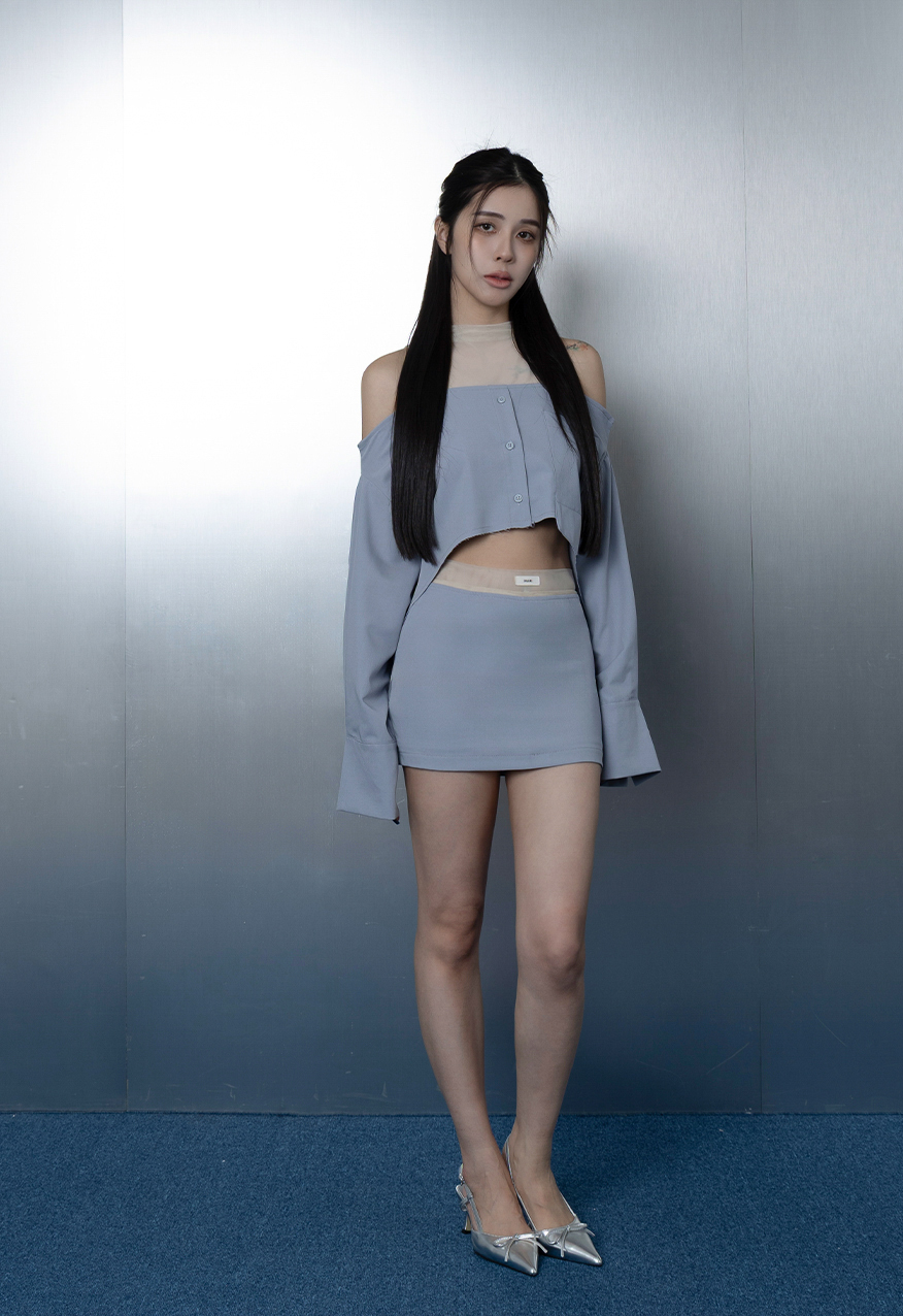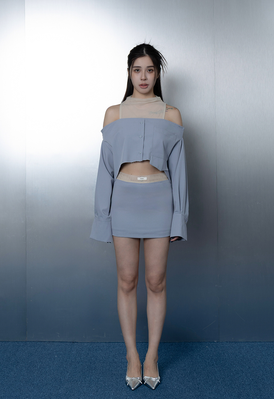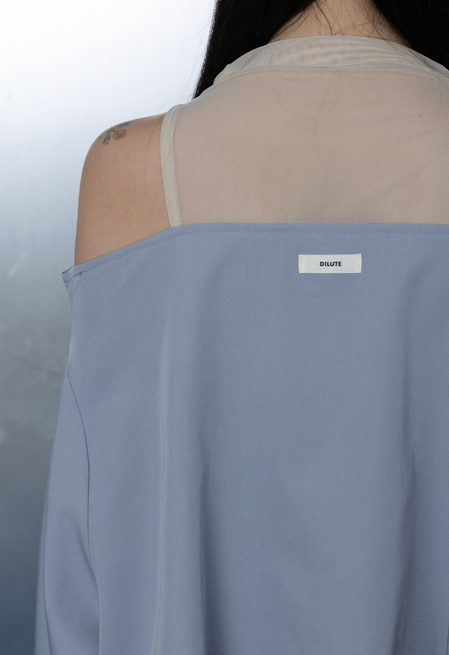 AW1104-天空藍網紗拼接襯衫