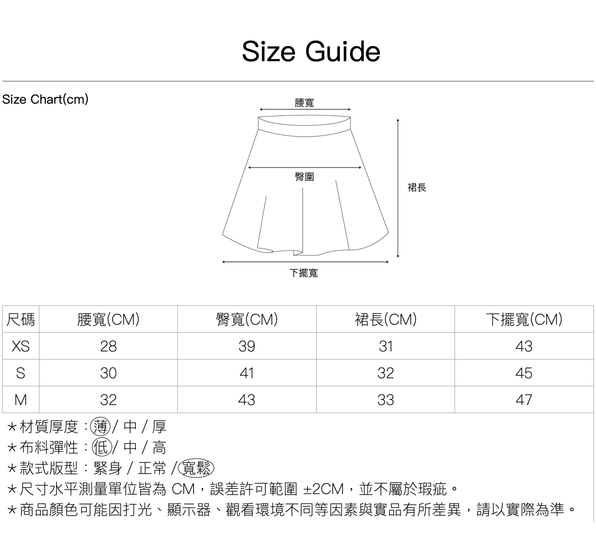 尺寸 | XS / S / M