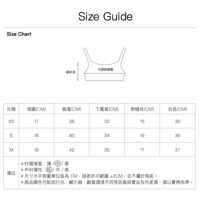 尺寸|XS \ S \ M