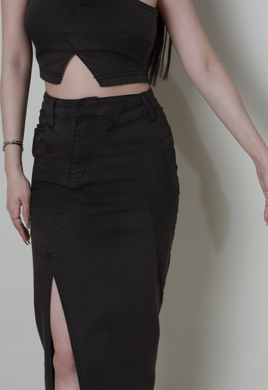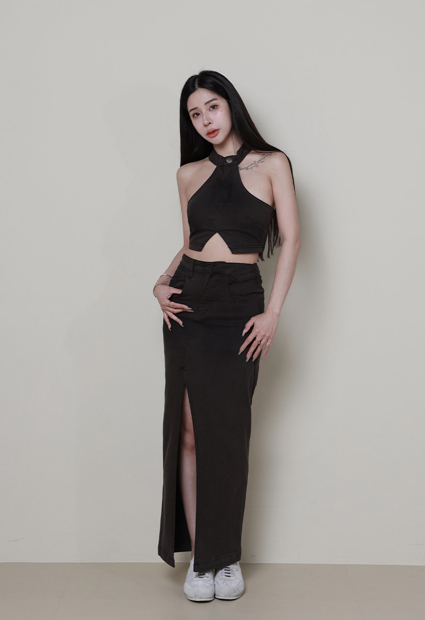 SS0989 - 維也納牛仔開衩長裙