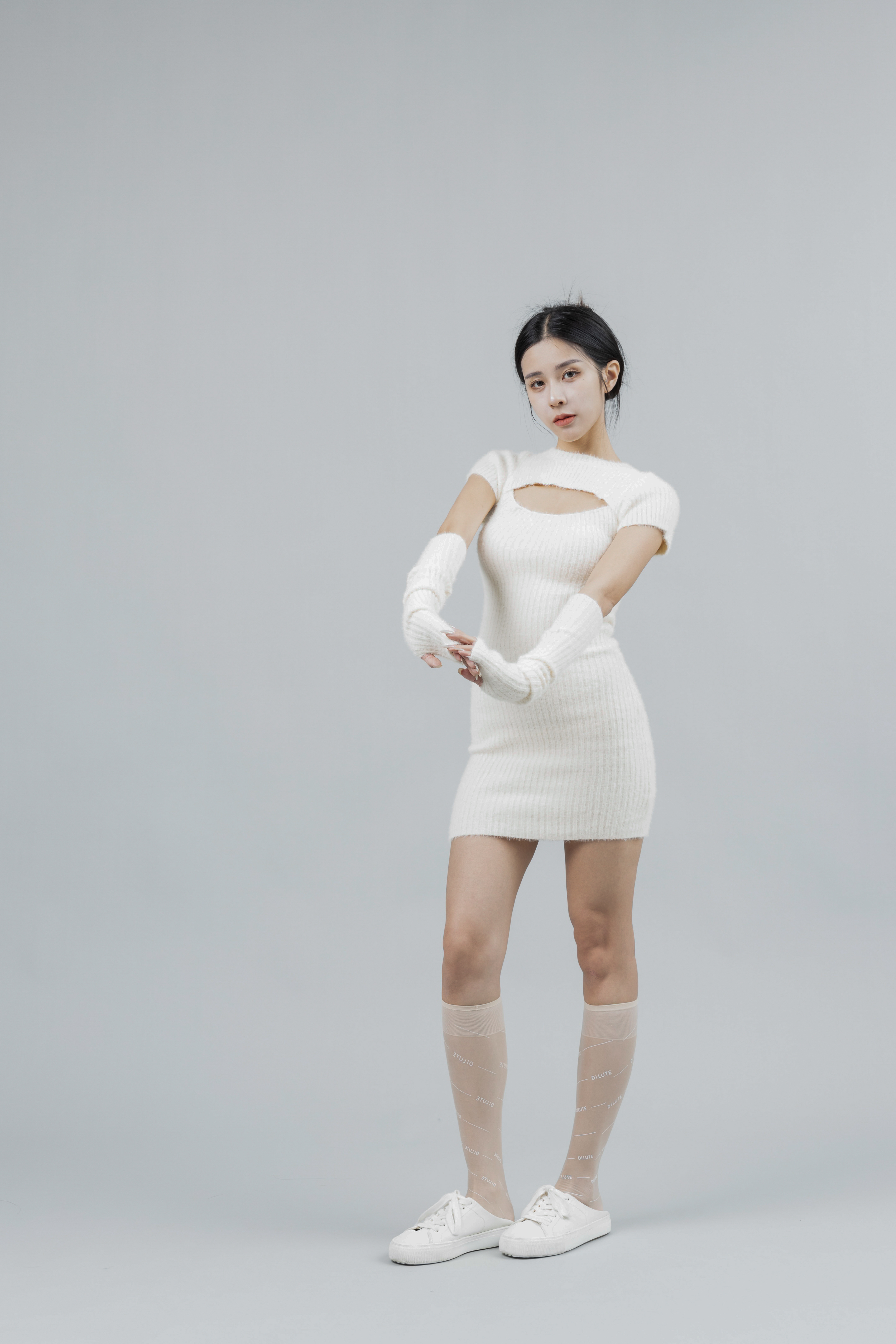 Lynnn - 奶油色毛織袖套短洋裝