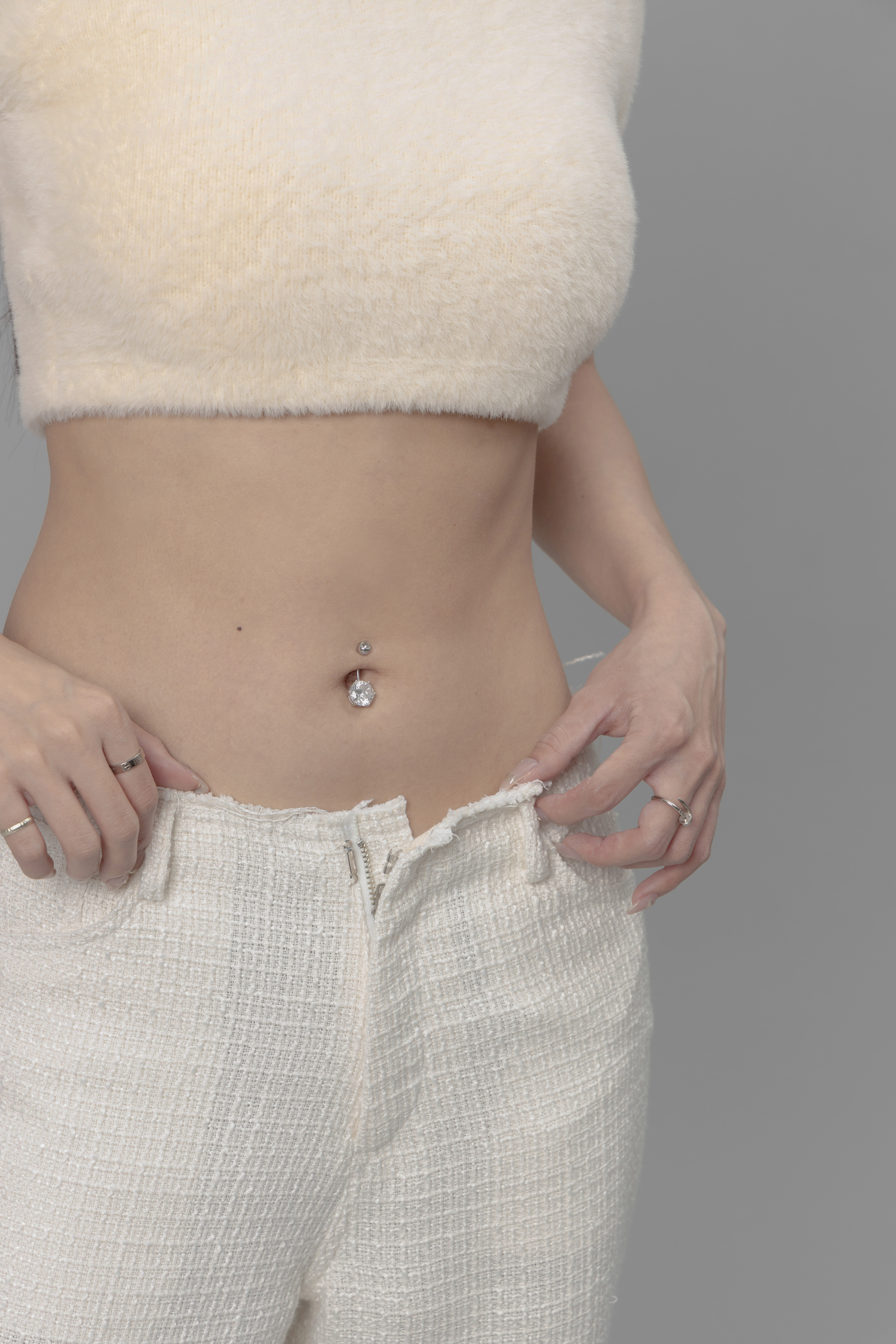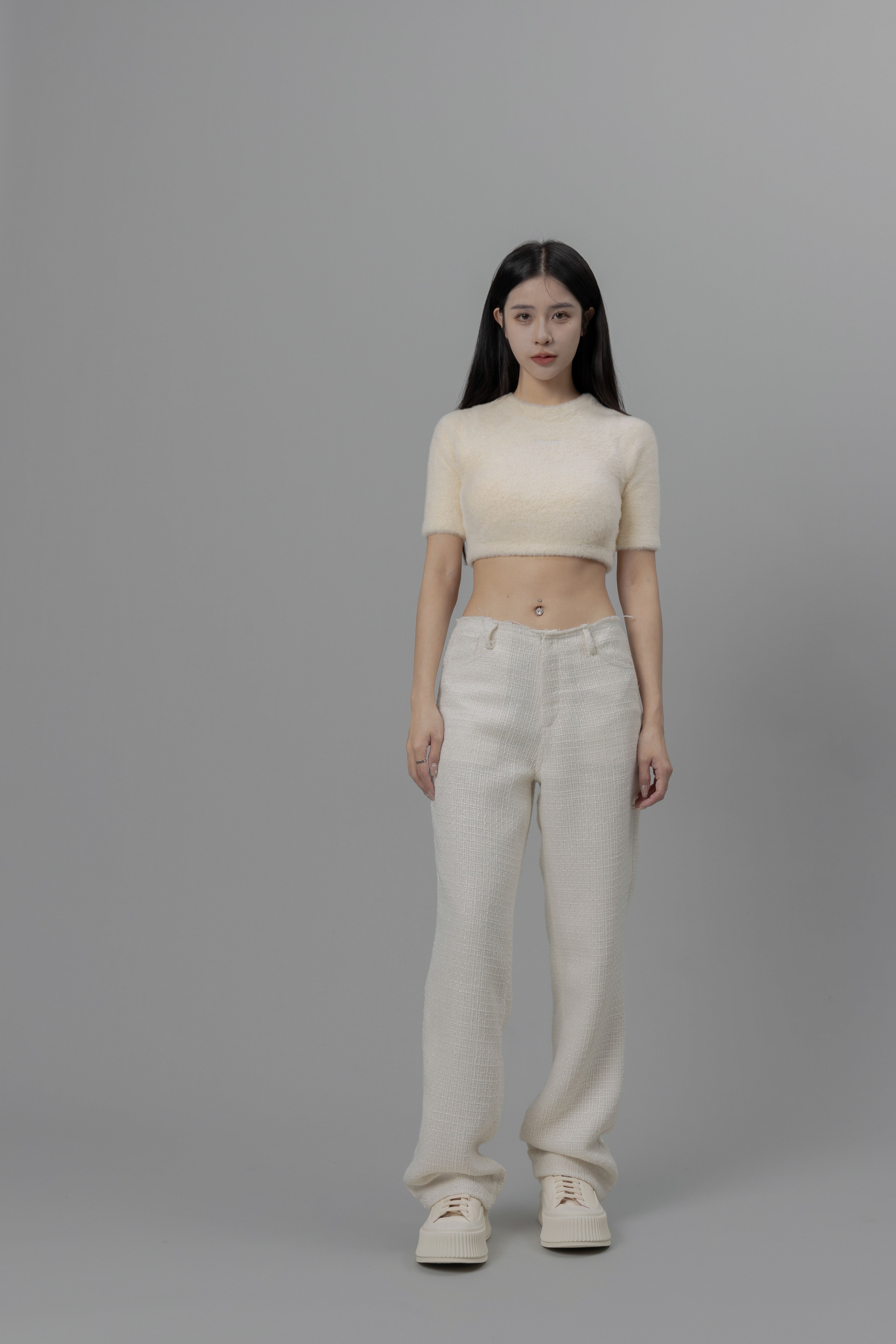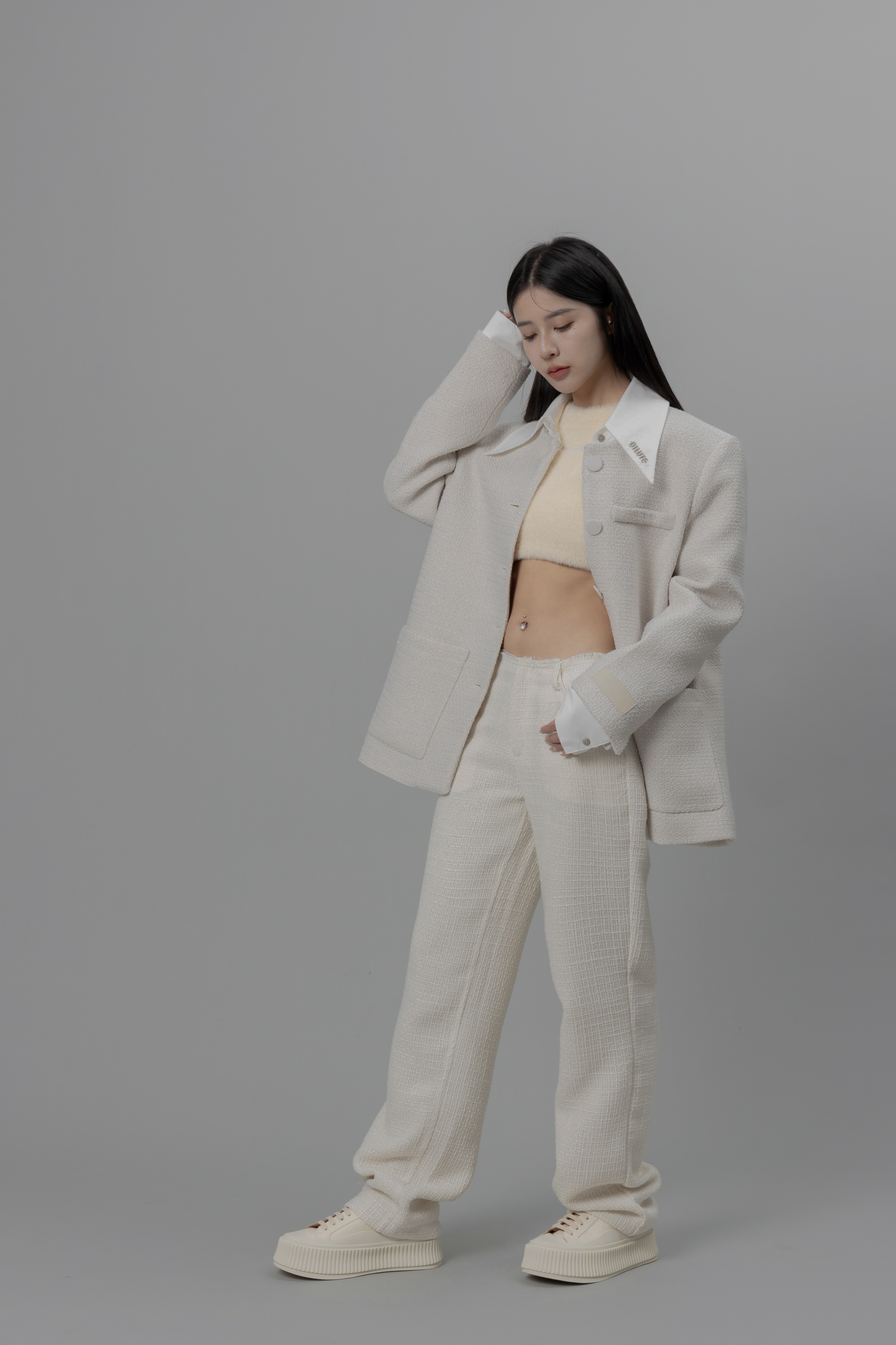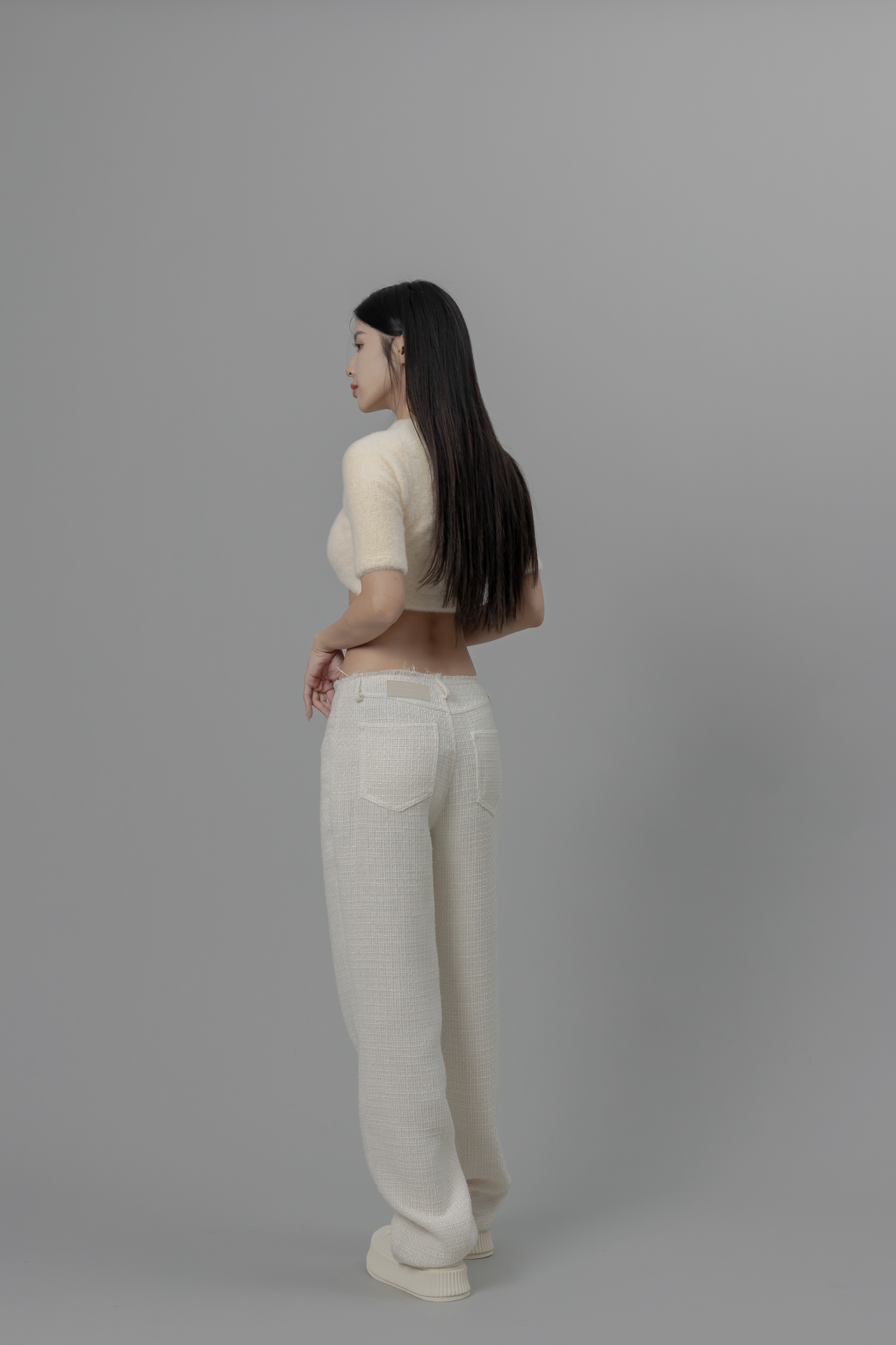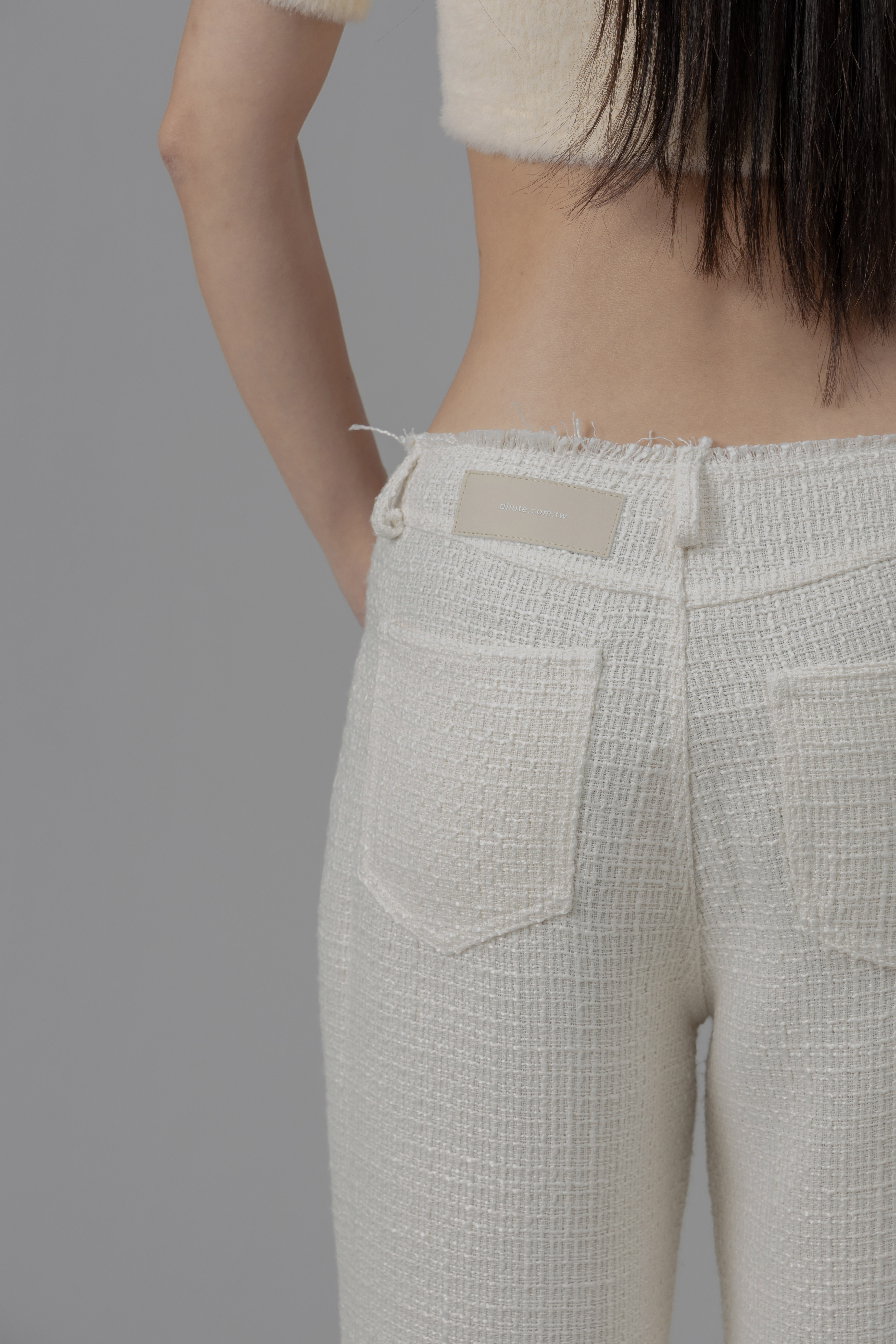 Monaco - 米白色修身小香風長褲