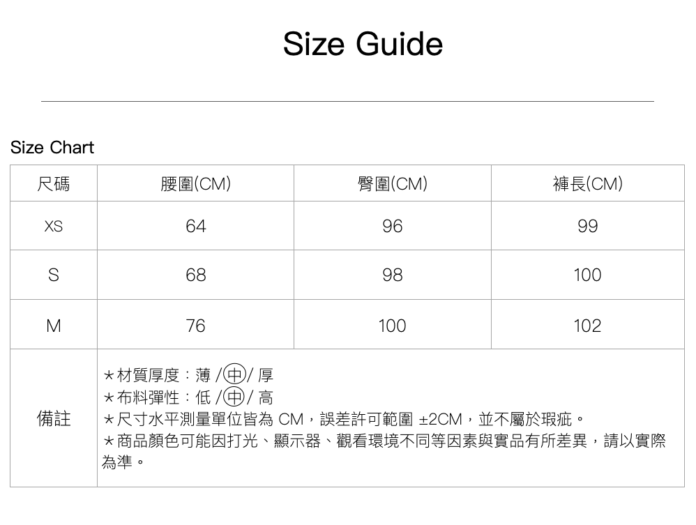 尺寸|XS \ S \ M
